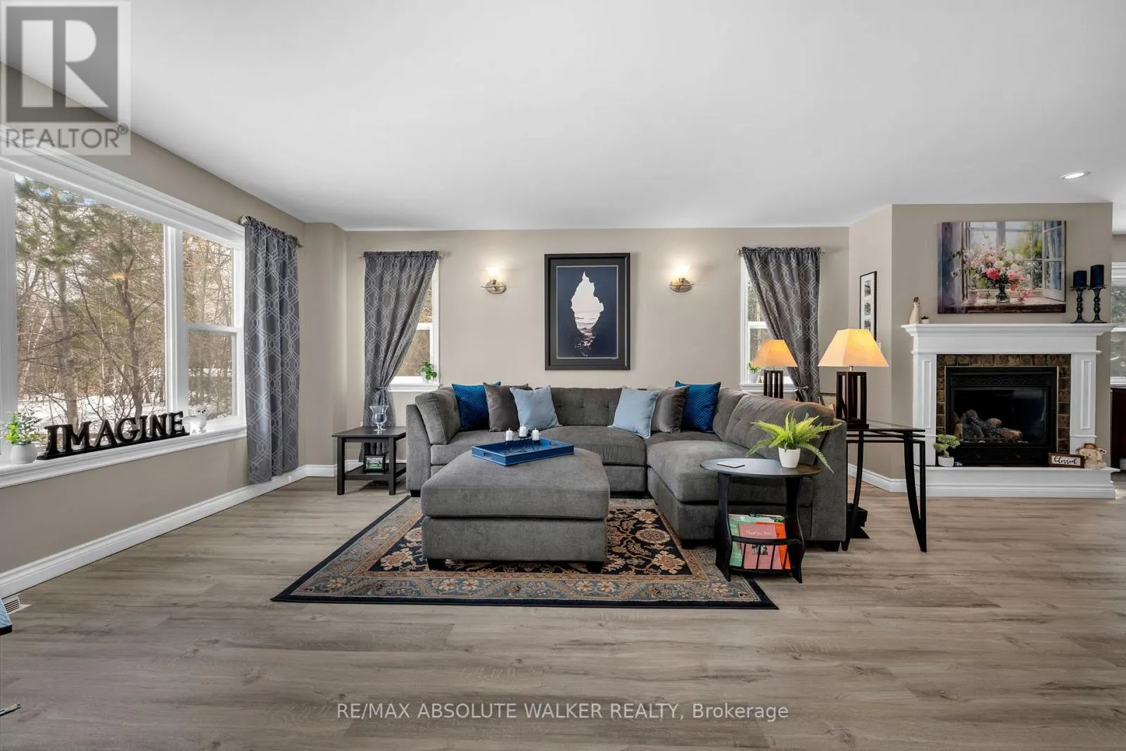 Cross Streets: Constance Bay Rd, Monty Dr. ** Directions: March Rd north. Turn right on Dunrobin Rd. Turn right onto Constance Bay Rd. Turn right onto Willand, Lane, Left on Norgreen to Charmont. Tucked away in a quiet custom home enclave, this beautifully maintained 3+1 bedroom residence sits on a private ~1 acre lot surrounded by mature pine trees, offering the perfect blend of comfort, functionality, and outdoor lifestyle. Built in 2007, the home features a bright and spacious layout with a stunning kitchen complete with quartz countertops, a peninsula breakfast bar, and seamless flow into the living and dining area with a natural gas fireplace. A screened 3-season porch, insulated with electric heat, extends your living space year-round and overlooks the peaceful, tree-lined yard. Upstairs, you'll find three well-sized bedrooms including a generous primary retreat with large closets and a private ensuite, along with the convenience of second-level laundry. The fully finished basement adds valuable living space with a rec room, additional bedroom, and a half bath, ideal for guests or a home office. The home is equipped with an exceptional water treatment system including an iron filter, reverse osmosis, UV, and a commercial-grade softener, along with high-speed internet and natural gas service. A new Honeywell whole-home generator provides added peace of mind, while a newer septic system (2019) offers long-term reliability. Car enthusiasts and hobbyists will appreciate the insulated and heated 3-car garage with oversized 1.5 car doors, along with a fully paved driveway. Recent 2026 updates include new carpet on the upper level, updated bathroom finishes, sealed and painted garage floors, and more. Located just minutes from Constance Bay amenities, local shops, and schools with bus access, and steps to Torbolton Forest trails for hiking, cross-country skiing, and snowmobiling, this property offers an exceptional lifestyle in a serene natural setting. (id:27476)