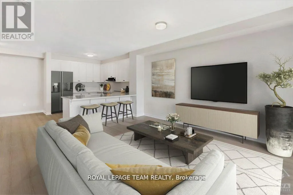 Cross Streets: Demulcent Lane and Elixir Place. ** Directions: From Leone Farrell St. turn onto Tincture Place then turn right onto Elixir Place the take your first left then turn right onto Demulcent Lane. END UNIT! Be the first to live in Mattamy's Bloom model, a beautifully designed 4-bedroom, 3.5-bathroom freehold townhome offering modern living and unbeatable convenience in the Northwoods community of Kanata. This 3-storey home features a welcoming foyer with closet space, direct garage access, a guest suite with a full bathroom, and luxury vinyl plank (LVP) flooring on the ground floor. The second floor boasts an open-concept great room, a stylish kitchen with quartz countertops, ceramic backsplash, and stainless steel appliances, a dining area, and a private balcony for outdoor enjoyment. This level also includes LVP flooring throughout and a powder room for added convenience. On the third floor, the primary bedroom features a luxurious 3-piece ensuite, while the second and third bedrooms offer ample space with access to the full main bath. A dedicated laundry area completes the upper level. Located in the vibrant Northwoods community, this home is just minutes from shopping, restaurants, and schools. Images are to showcase builder finishes only. (id:27476)