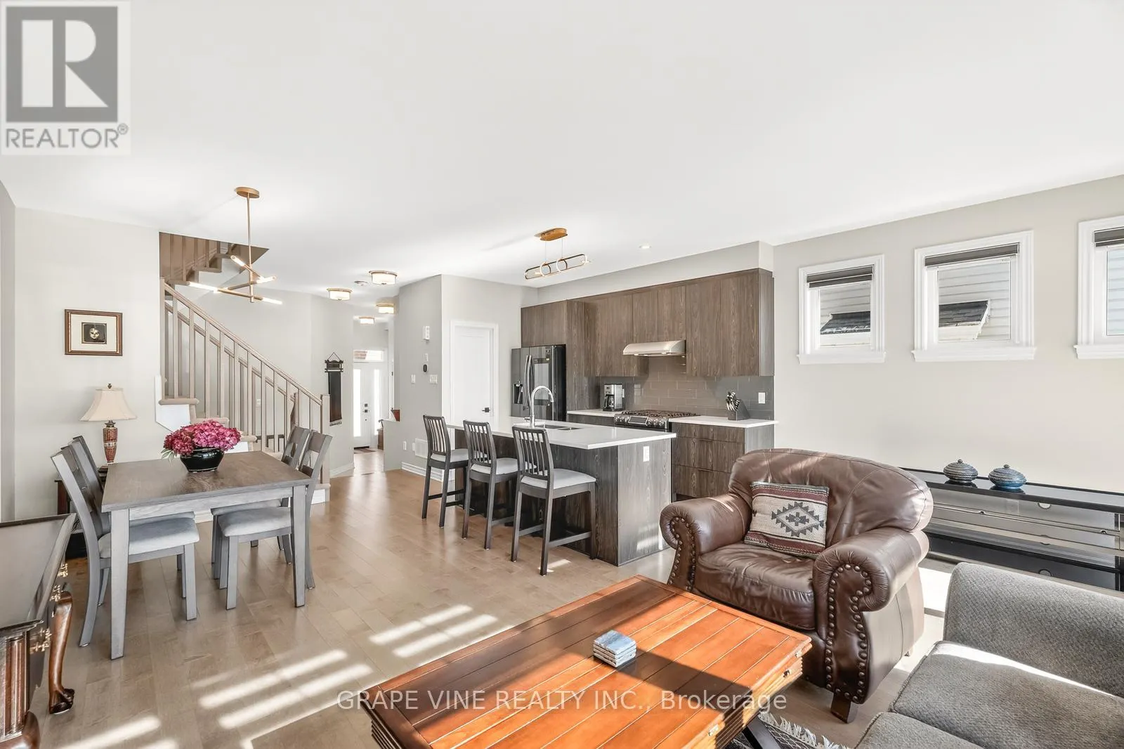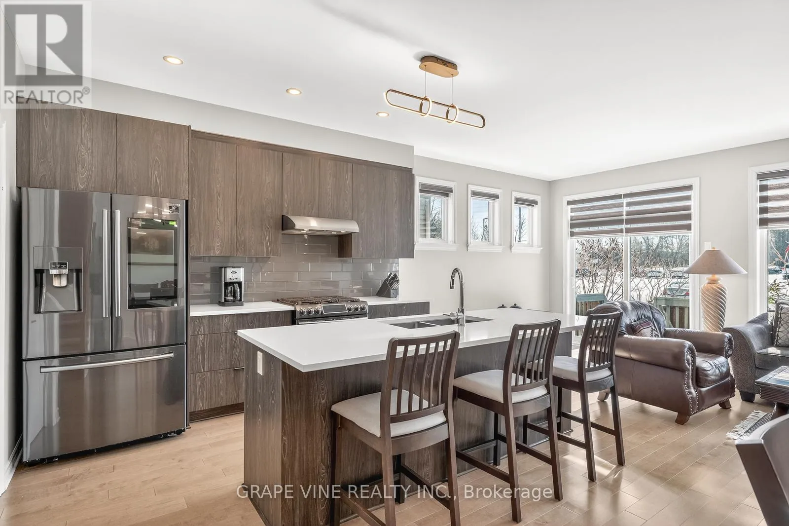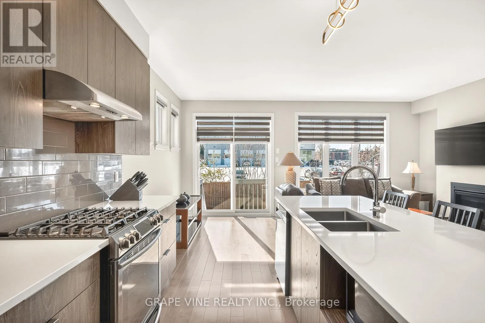 Cross Streets: Maple Grove / Hazeldean Road. ** Directions: Maple Grove to Rosehill to Mazon to Vivera Place. Welcome to 644 Vivera Place, a beautifully maintained Tamarack end-unit townhome offering over 2,100 sqft. of finished living space. Gently lived in and meticulously cared for, this home presents a fresh, near-new feel from top to bottom.Tucked away at the end of a quiet crescent, the setting is a standout; featuring a private lane, no rear neighbours, and an extended, fully fenced backyard with a patio, creating a comfortable and private outdoor retreat. Inside, the main floor offers a bright, open-concept layout enhanced by southern exposure, filling the space with natural light throughout the day. The upgraded kitchen is both stylish and functional, complete with a generous centre island, step-in pantry, and sleek black stainless steel appliances. Overlooking the living and dining areas, it's a layout designed for easy everyday living and effortless entertaining. Upstairs, a wide staircase leads to a spacious second level, where the primary suite offers a relaxing escape with a sun-filled sitting area, walk-in closet, and a well-appointed 5-piece ensuite. Additionally you will find two additional bedrooms, a full bathroom, and a versatile loft-ideal for a home office, study space, or playroom-provide (excellent flexibility for modern living). A second-floor laundry room adds everyday convenience.The finished basement extends the living space even further, perfect for a recreation room, home gym, or media lounge.Additional features include an extra-wide garage and tasteful upgrades throughout. Located close to parks, shopping, transit, and all the amenities of Kanata and Stittsville, this is a turnkey opportunity in a desirable community.Please note: the property backs onto an existing commercial use, and proposed future developments are planned along the south side of Hazeldean Road between Savage Drive and Sweetnam Drive. (id:27476)
