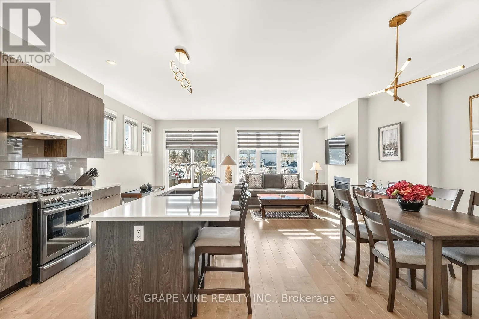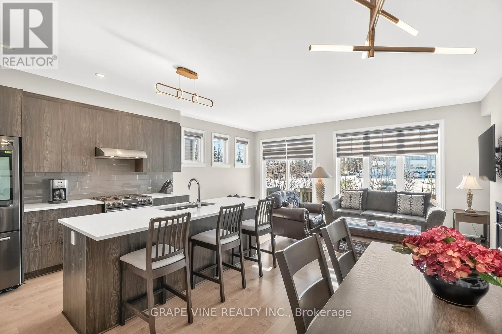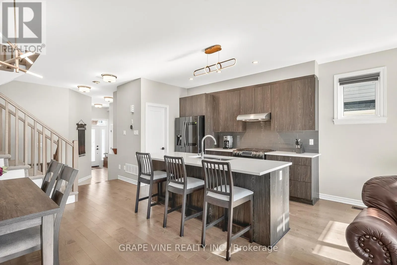 Cross Streets: Maple Grove / Hazeldean Road. ** Directions: Maple Grove to Rosehill to Mazon to Vivera Place. Welcome to 644 Vivera Place, a beautifully maintained Tamarack end-unit townhome offering over 2,100 sqft. of finished living space. Gently lived in and meticulously cared for, this home presents a fresh, near-new feel from top to bottom.Tucked away at the end of a quiet crescent, the setting is a standout; featuring a private lane, no rear neighbours, and an extended, fully fenced backyard with a patio, creating a comfortable and private outdoor retreat. Inside, the main floor offers a bright, open-concept layout enhanced by southern exposure, filling the space with natural light throughout the day. The upgraded kitchen is both stylish and functional, complete with a generous centre island, step-in pantry, and sleek black stainless steel appliances. Overlooking the living and dining areas, it's a layout designed for easy everyday living and effortless entertaining. Upstairs, a wide staircase leads to a spacious second level, where the primary suite offers a relaxing escape with a sun-filled sitting area, walk-in closet, and a well-appointed 5-piece ensuite. Additionally you will find two additional bedrooms, a full bathroom, and a versatile loft-ideal for a home office, study space, or playroom-provide (excellent flexibility for modern living). A second-floor laundry room adds everyday convenience.The finished basement extends the living space even further, perfect for a recreation room, home gym, or media lounge.Additional features include an extra-wide garage and tasteful upgrades throughout. Located close to parks, shopping, transit, and all the amenities of Kanata and Stittsville, this is a turnkey opportunity in a desirable community.Please note: the property backs onto an existing commercial use, and proposed future developments are planned along the south side of Hazeldean Road between Savage Drive and Sweetnam Drive. (id:27476)