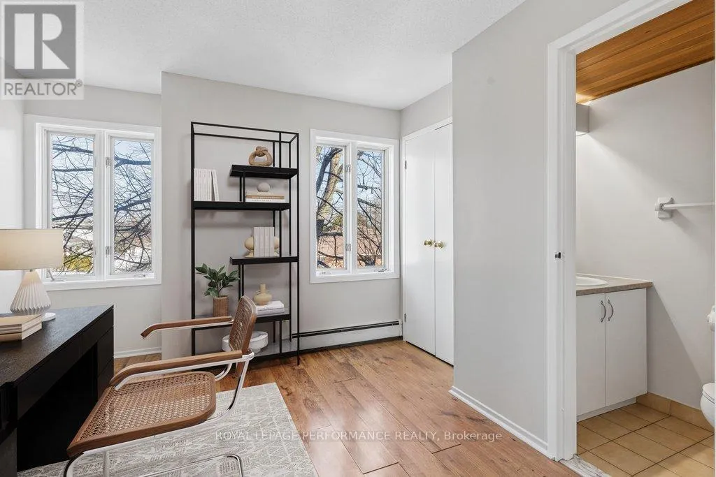 Cross Streets: St. Laurent Blvd / Blasdell Ave. ** Directions: From St.Laurent Blvd, turn onto Blasdell. Welcome to 1096 Blasdell Avenue, nestled in the highly sought-after community of Manor Park! This beautifully maintained upper-level stacked townhome, built in 1987, offers over 1,100 square feet of thoughtfully designed living space across two levels-and has been freshly repainted, giving it a bright, move-in-ready feel throughout.The main level features a spacious open-concept living and dining area, complete with a cozy wood-burning fireplace. You'll also find a functional kitchen and a fully enclosed den that offers incredible versatility as a third bedroom, guest space, or home office, complete with its own convenient 2-piece ensuite. Upstairs, two generously sized bedrooms await, along with a full bathroom and a dedicated laundry room. The primary bedroom is filled with natural light, features a large closet, and boasts its own private balcony retreat. Ideally located on a quiet street, this home offers the perfect balance of tranquility and convenience, with close proximity to everyday amenities and quick access to Highway 417. Don't miss your opportunity to call 1096 Blasdell Avenue home-book your showing today! (id:27476)