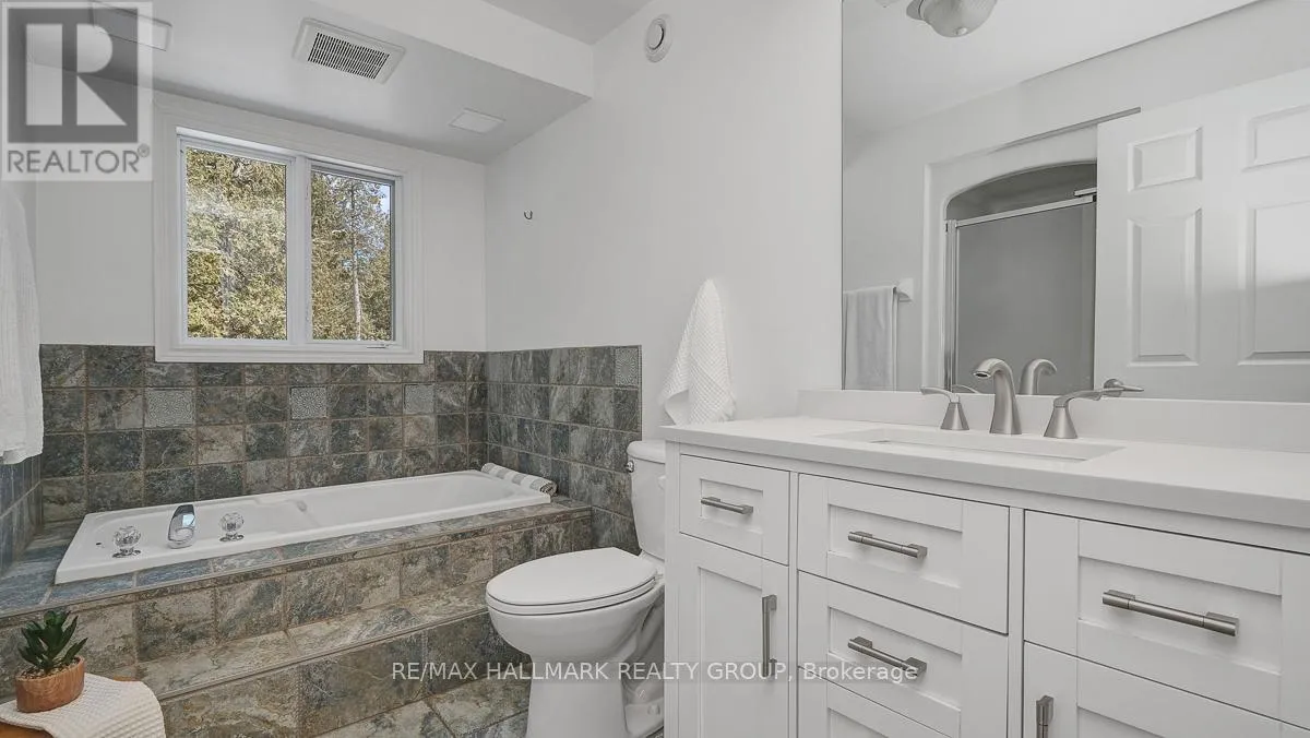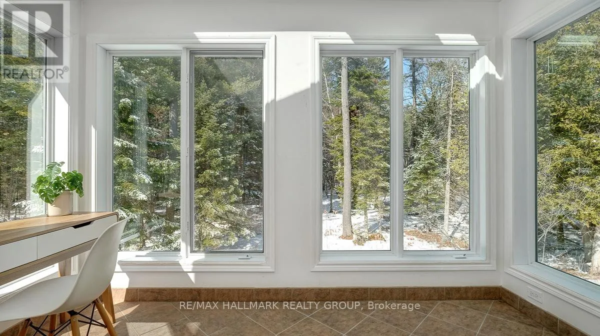 Cross Streets: Old Almonte Road. ** Directions: West on Old Almonte Road. Left on Corkery. When turning onto the long private winding laneway at 618 Corkery Road, the first thing that will strike you is the incredible treed in privacy of this 27-acre estate featuring a massive heated 35 x 90 foot garage with 18-foot ceilings and its own 200 AMP panel, perfect for business owners, car enthusiasts, or those with serious storage needs. Neatly tucked away at the end of a quiet road and surrounded by a vast forest, this property offers unmatched privacy and tranquility. Enjoy peaceful country living as you explore scenic trails right on your own land, while being just 15 minutes from the conveniences and amenities of Kanata, truly the best of both worlds. This beautifully maintained home showcases a sun-filled main level with a bright living room featuring cathedral ceilings and hardwood flooring. The updated gourmet kitchen boasts granite countertops, a multi-level island, and stainless steel appliances. The dining room offers picturesque views and provides easy access to a spacious deck, perfect for entertaining. Upstairs, you'll find a primary bedroom with a walk-in closet and a modern ensuite, along with an additional bedroom and a renovated 4-piece bathroom. The lower level includes a third bedroom, a den and a convenient 2-piece bathroom. The expansive basement with a walkout to the outdoor interlock patio features a beautiful fireplace, updated flooring with plenty of space for a family room and a home office. A dedicated dog run and separate greenhouse complete this exceptional property. For business owners, please keep in mind the property also offers ample space to comfortably turn a tractor-trailer around. (id:27476)