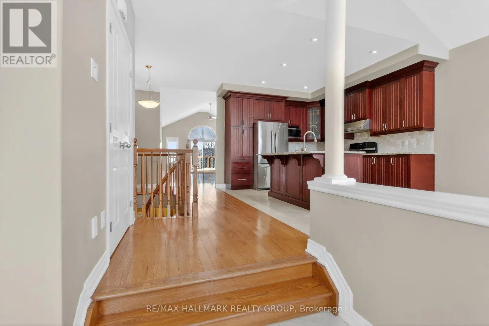 Cross Streets: Landswood & Westridge. ** Directions: West Ridge Dr. to Landswood Way #445. Bright and thoughtfully crafted custom bungalow offering 3+1 bedrooms, 3 full baths with a desirable walk-out basement. Built to Energy Star standards and tucked away on a quiet crescent, this home showcases an airy open-concept design with soaring cathedral ceilings in the great room and dining area, along with 9 foot ceilings throughout.The kitchen is well appointed with granite countertops, custom cabinetry and refined finishes, with a layout that flows seamlessly into the main living space which is ideal for everyday living and entertaining. A graceful curved oak staircase leads to the lower level adding architectural charm. The spacious primary bedroom is highlighted by a coffered ceiling and an elegant ensuite complete with a jacuzzi tub. A striking Realstone gas fireplace adds warmth and character to the living area.With quality finishes throughout including tile and hardwood flooring, this home offers comfort, style and thoughtful details at every turn. A distinctive property that is sure to impress. (id:27476)