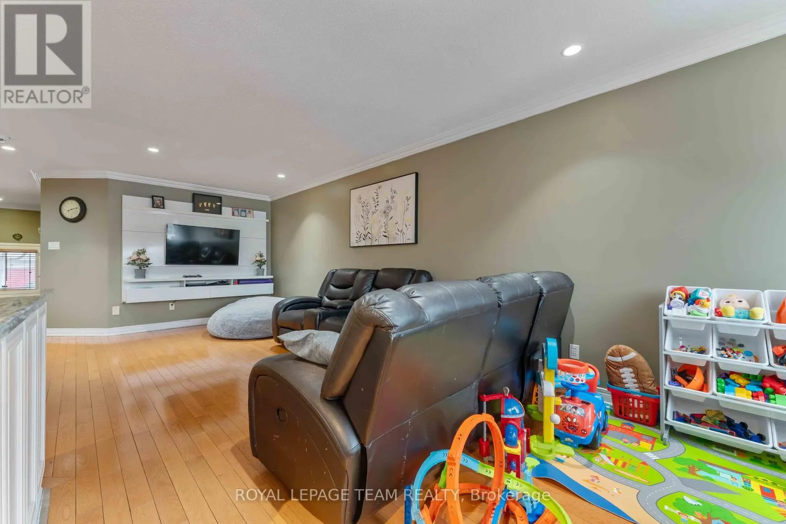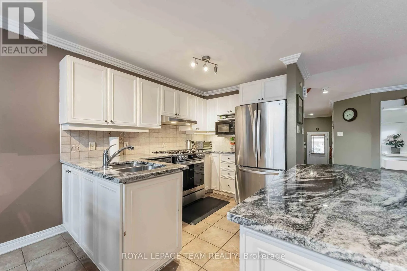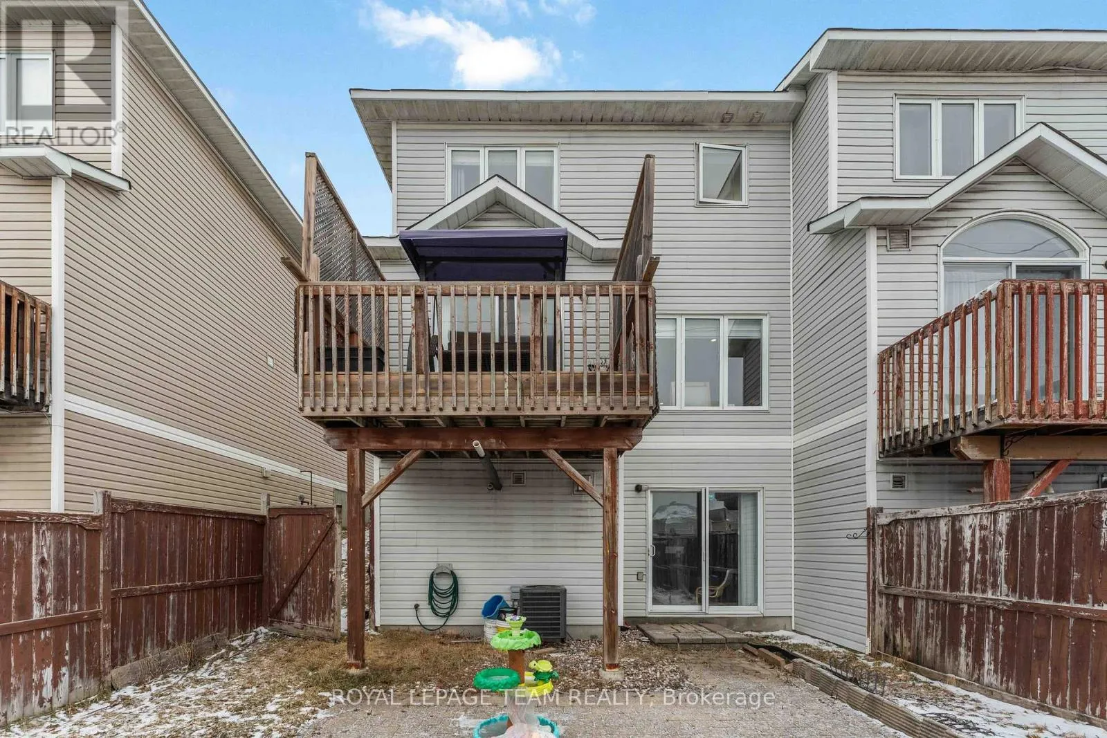 Strandherd Drive to Beatrice Drive. Turn left onto Deerfox Drive. Beautifully maintained 3-bedroom END UNIT Minto Manhattan featuring a builder-finished walkout basement and a bright open-concept layout! This popular model offers elegant crown moulding, hardwood and ceramic flooring throughout the main level, and a spacious upgraded kitchen with granite countertops, quality cabinetry, and a sun-filled eating area with patio doors leading to the upper deck. The inviting main floor also features a sunken tiled foyer and convenient powder room. Upstairs, the generous primary bedroom offers a walk-in closet and private 4-piece ensuite, while two well-sized secondary bedrooms share the main bath. The finished walkout basement includes a cozy family room with corner gas fireplace, laundry area, and ample storage space. Enjoy the fully fenced south-facing backyard complete with an interlock patio. Ideally located close to schools, public transit, shopping, and everyday amenities. (id:27476)