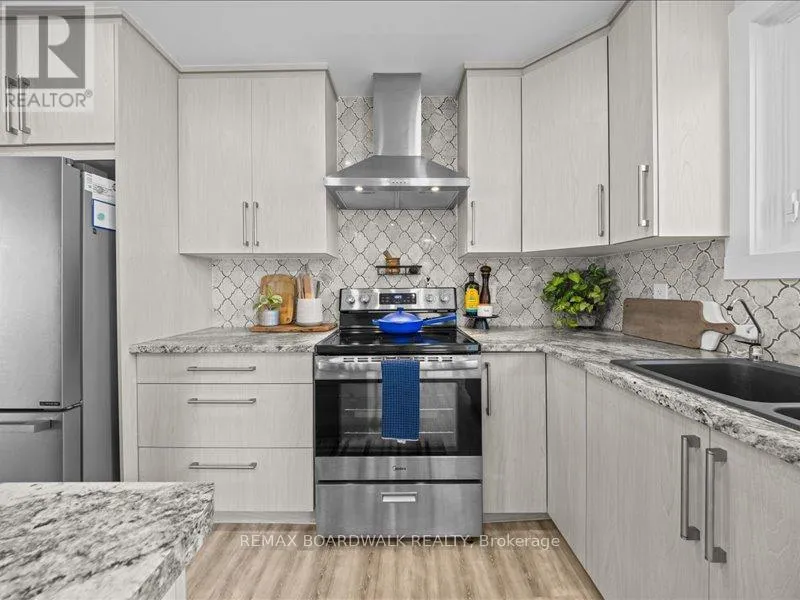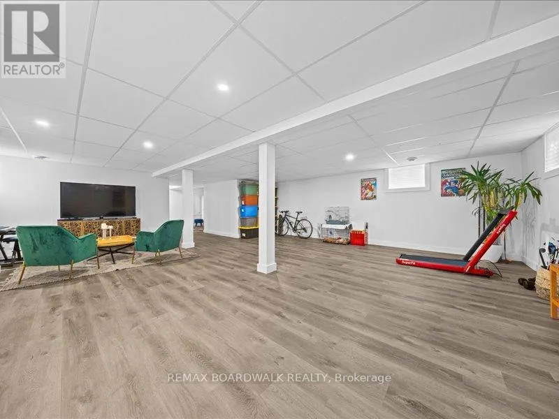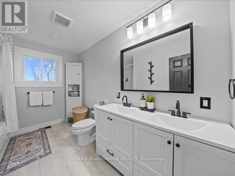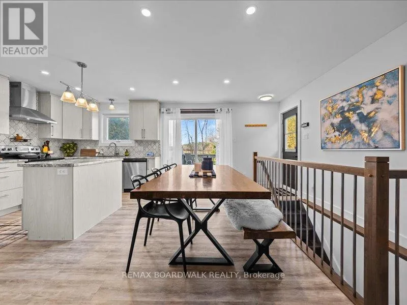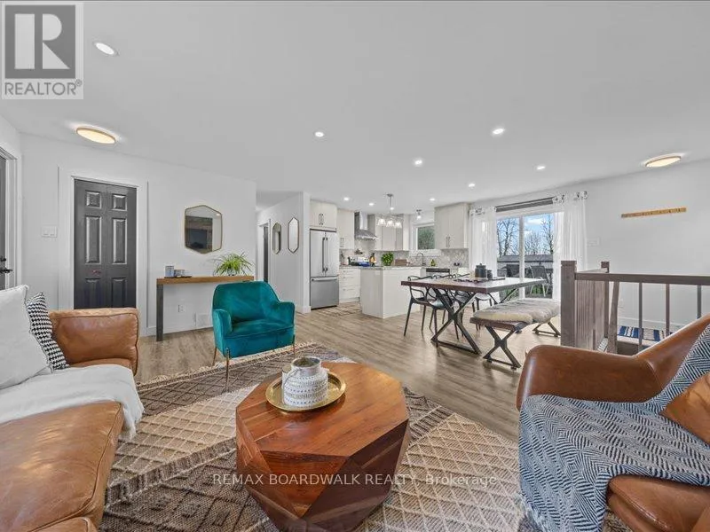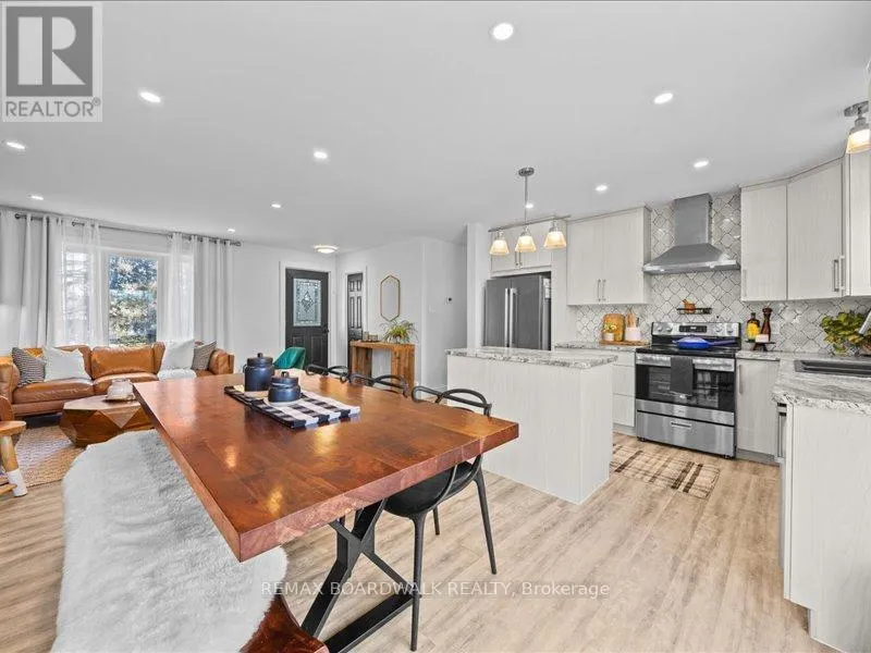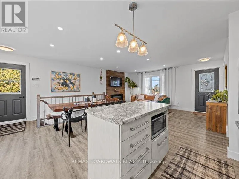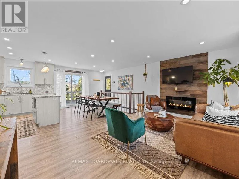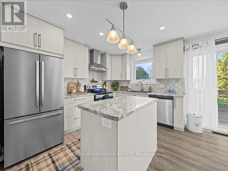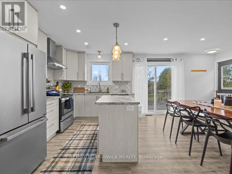 Cross Streets: Cumberland West. ** Directions: East on Innes Road, South on Dunning. On the Corner of French Hill Road and Dunning Road. Welcome to this beautifully updated 3-bedroom, 1-bath bungalow featuring a bright open-concept flat ceilings and pot lights throughout. Located in Cumberland, just 5 min from Orleans. The living, dining, and kitchen areas flow seamlessly together, highlighted by luxury vinyl flooring and a modern fireplace with a warm wood-accent surround. The updated kitchen features stainless steel appliances, a double sink, a tiled backsplash, a centre island, and ample workspace for cooking and entertaining. A patio door off the dining area leads to a large deck overlooking the private yard, surrounded by mature hedges and complete with a storage shed. The home offers three comfortable bedrooms, including a spacious primary bedroom with ample closet space. The fully updated 5-piece bathroom features dual sinks and a white subway tile bathtub surround for a clean, modern look. Additional highlights include vinyl windows, a newer roof, a newer furnace, and a newer septic tank. Recent upgrades include septic tank, plumbing, electrical, insulation, water softener, reverse osmosis system, well pump, and parging, along with kitchen, bath, flooring, Vinyl windows, furnace, and Roof. The property also features a convenient drive-thru driveway from Dunning Road to French Hill Road. A hardwood staircase with metal spindles leads to the lower level, where you'll find a bright laundry room and a spacious rec room with five large windows and a suspended ceiling with pot lights, offering plenty of potential for an additional bedroom and bathroom. This move-in-ready home blends modern updates with functional living in a peaceful setting, just minutes from city convenience. (id:27476)