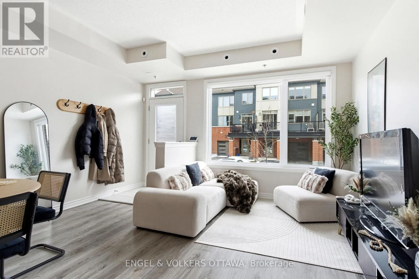 Squadron Cres. & Kiniw Priv. 808 Kiniw Private offers easy, low-maintenance living in the heart of fast-growing Wateridge Village. This bright 2-bedroom home features low condo fees, hardwood floors throughout, and an open-concept living space filled with natural light. The kitchen is equipped with stainless steel appliances, quartz countertops, and a breakfast bar with seating for four. The lower level offers two well-sized bedrooms, an oversized 4-piece bathroom, and additional storage. Enjoy a quick commute to downtown, easy access to transit including OC Transpo and the Blair LRT, and a short drive to Ashbury College, Elmwood School, and nearby amenities that make everyday living effortless.Whether you're a first-time buyer, investor, or simply seeking a maintenance-free lifestyle, this is a fantastic opportunity. (id:27476)