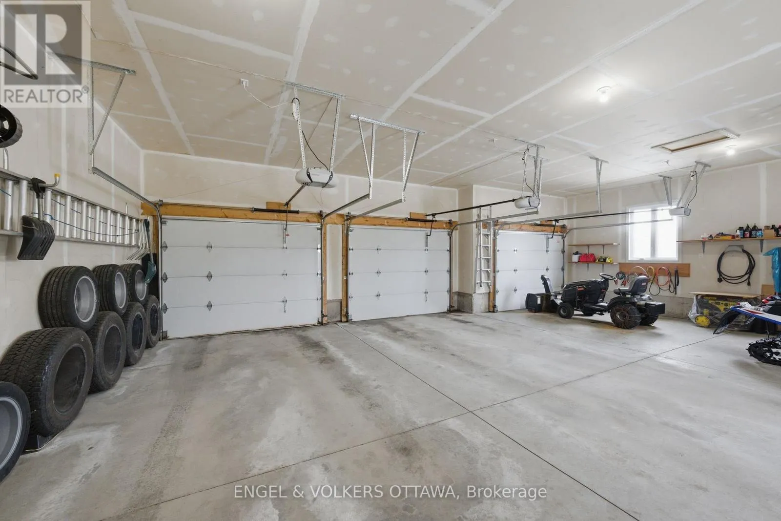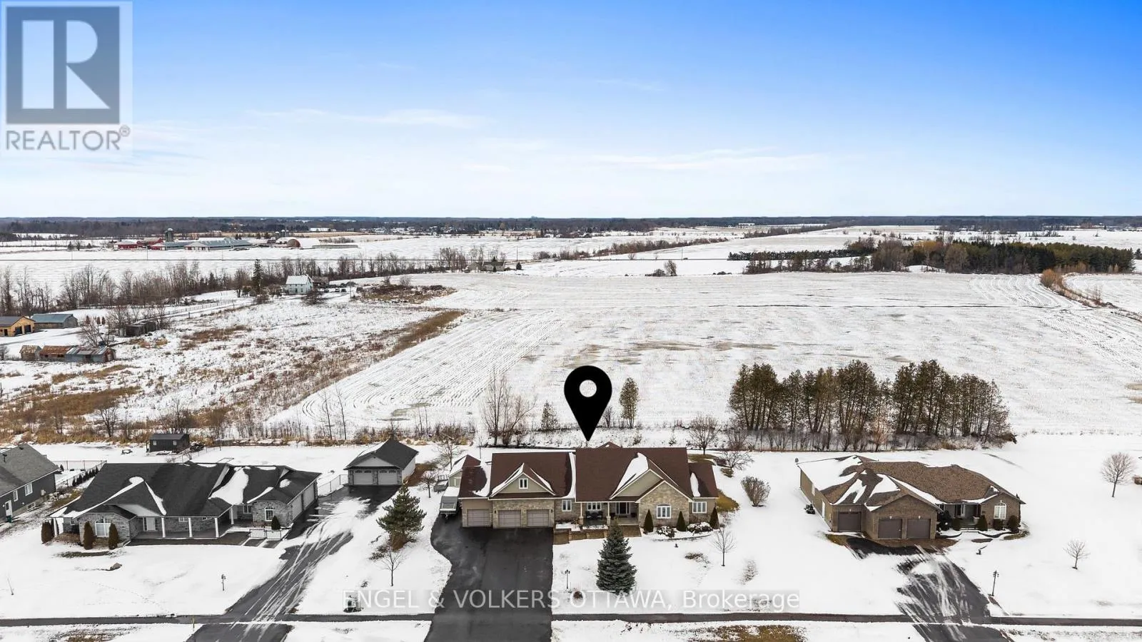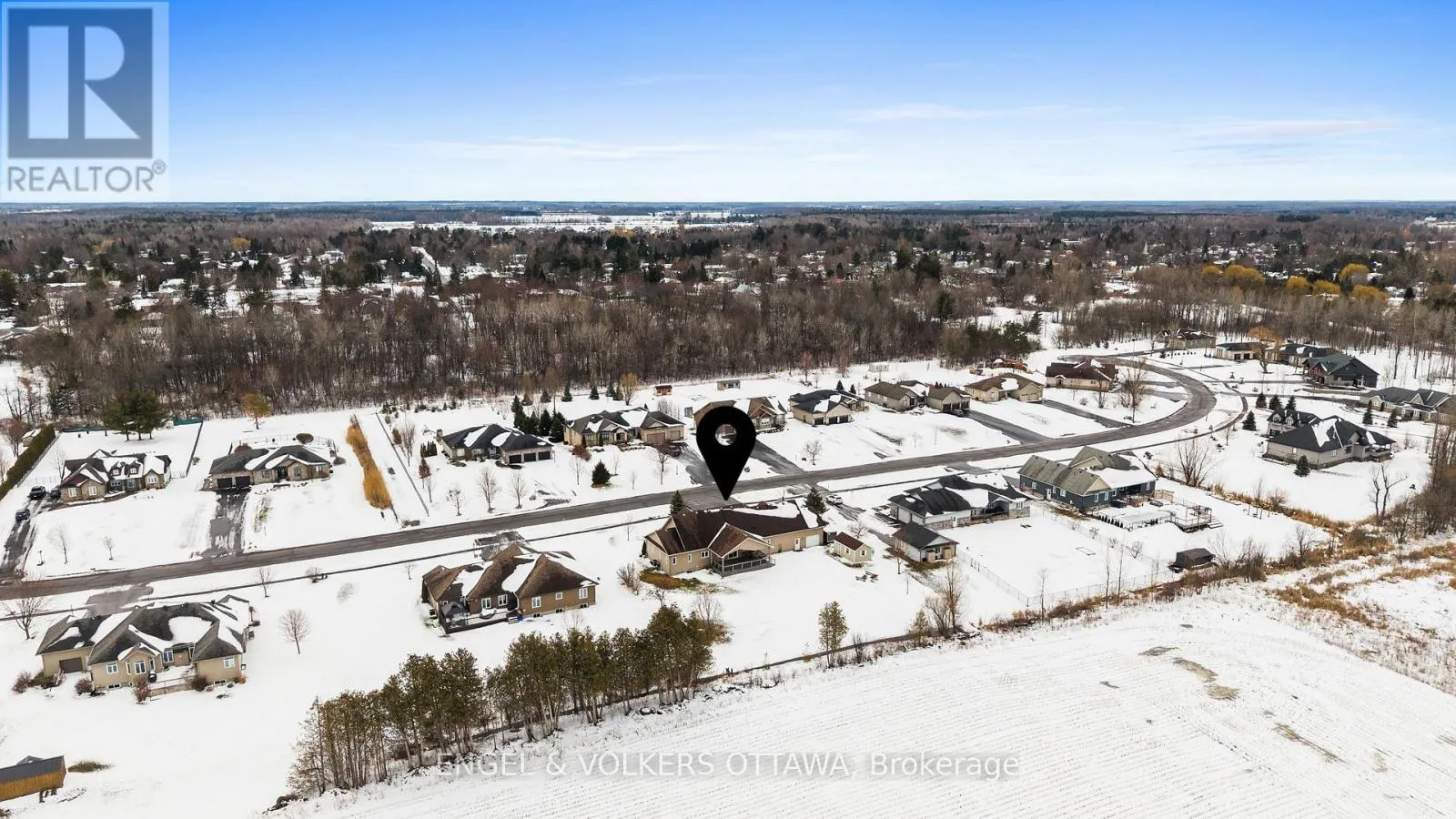 Cross Streets: Osgoode Main & Logan Farm Drive. ** Directions: 416 south, exit Roger Stevens East, South on Nixon, East on Osgoode Main, North on Logan Farm Dr, West on Lombardy. Welcome to this exceptional custom Ian Drew home, perfectly positioned on an exclusive cul-de-sac with no rear neighbours, offering privacy and refined living. Impeccably maintained, the property features elegant front landscaping with a stone walkway, raised garden beds, and an oversized paved driveway with additional side parking. Designed for elevated outdoor living, the impressive 30' x 16' covered rear deck showcases a vaulted cedar ceiling and low-maintenance composite decking, an ideal space for entertaining or relaxing in total privacy. The backyard also includes a premium storage/work shed and a RainBird 9-zone irrigation system. Inside, 9-foot ceilings enhance the open-concept living, dining, and kitchen areas, complemented by hardwood floors, granite countertops, and a cozy gas fireplace anchoring the space. The primary suite offers a spacious walk-in closet and a luxurious ensuite with a walk-in shower and soaker tub. Two additional bedrooms, one featuring a vaulted ceiling, are serviced by a full bath, while the main level is completed by a laundry/mudroom and powder room. A versatile loft provides the perfect space for a media room, home office, or additional lounge area. The lower level provides a wide-open canvas, whether for recreation, fitness, or future finishing. The oversized 3-car garage is insulated and drywalled, featuring a full rear garage door for backyard access and hot/cold water taps. Extensive mechanical upgrades include a Kinetico water system, updated hot water tank and pressure tank, and a fully serviced system with recent water testing available. A GenerLink 240V connection offers whole-home generator capability. A rare offering combining quality craftsmanship, thoughtful design, and upscale features, tailored for the most discerning buyer. Walking distance to Foodland, No Go Coffee, Red Dot Cafe and the Osgoode Link Pathway, a trail over 20 km long, connecting Osgoode to Leitrim Road and the new LRT station. (id:27476)