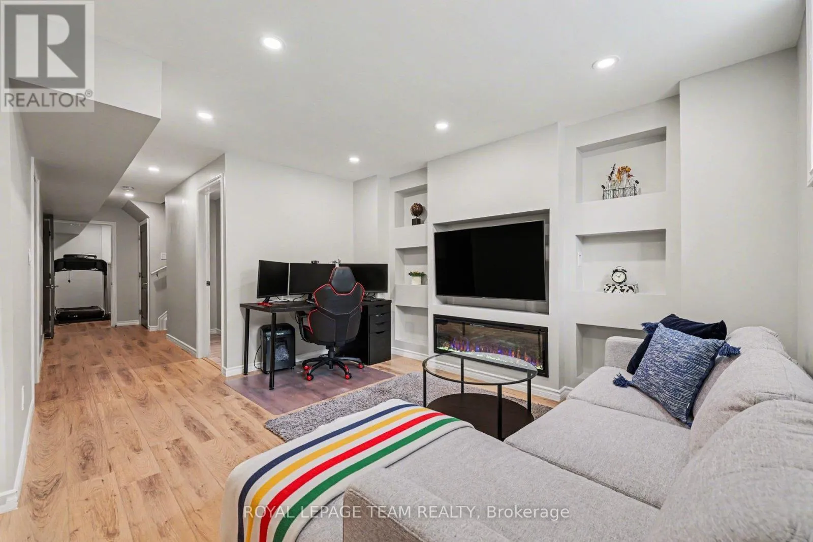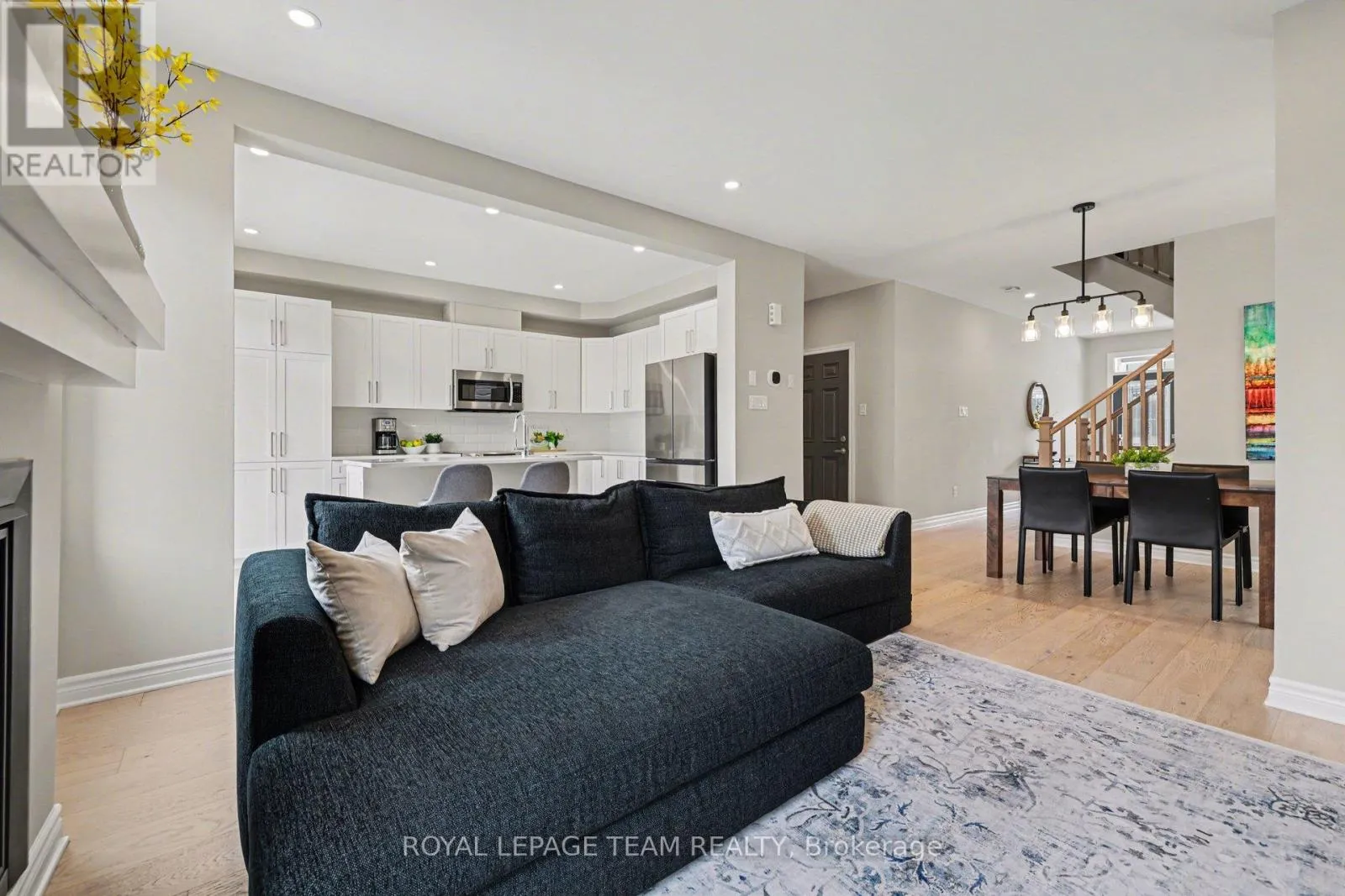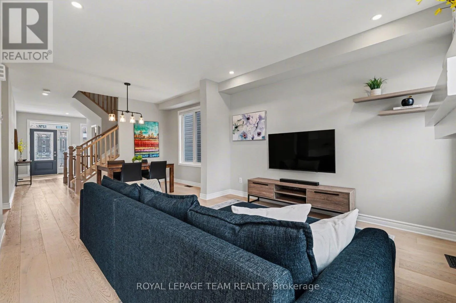 Cross Streets: Allan Moore Pl. & Kimpton Dr. ** Directions: West on Hwy 417. Exit on Carp Rd. Turn left on Carp Rd. Turn left on Echowoods Ave. Continue straight on Kimpton Dr. Turn left on Allan Moore Pl. Offering the ideal blend of style and walkability, this impeccable 3 bedroom 4 bathroom home is situated on a popular family friendly street. Located walking distance to shops, restaurants, Farm Boy, Starbucks, parks, trails, schools and amenities & close proximity to Hwy 417. The main level features a sun filled open concept living and dining room with wide-plank engineered hardwood floors, pot lighting, custom roller shades and gas fireplace. Chef's will delight in this bright kitchen with stainless steel appliances, generous pantry, large island with oversize sink & breakfast bar. A walk-in closet and powder room complete this level. The second level features a spacious primary bedroom with walk in closet & 3-piece ensuite, 2 additional good sized bedrooms, main bathroom & convenient laundry room. The finished basement (2023) provides additional living space, including a family room with pot lighting, an electric fireplace, a 3-piece bathroom, and a flex space currently used as an exercise room. The exterior is perfect for entertaining, featuring a fully fenced backyard with a spacious cedar deck (2020). For added convenience, the property includes an irrigation system, a natural gas BBQ hookup, a garden shed, and a garage wired for an EV charger. (id:27476)