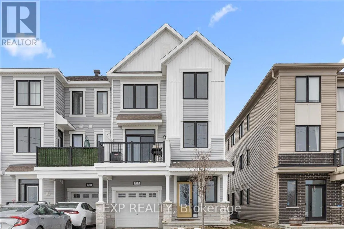 Fernbank Rd. to Rouncey Rd, left on Rubicon Pl, left on Continental Ave, right on Hibernian Walk Welcome to 217 Hibernian Walk, a stunning Sandstone End Village Home by Mattamy Homes in the highly sought-after beautiful Blackstone community-where modern living meets exceptional walkability and convenience. Perfectly situated just steps from parks, schools, transit, and everyday amenities, this home offers a lifestyle that blends suburban tranquility with urban accessibility. Inside, you'll find a thoughtfully designed, carpet-free layout featuring durable luxury vinyl flooring across all three levels and elegant oak staircases that elevate the space. The main level welcomes you with a versatile den-ideal for a home office, gym, or additional living space-perfect for today's flexible lifestyle needs. The heart of the home is the bright, open-concept second level, where the kitchen, dining, and living areas flow seamlessly together-an ideal setup for entertaining or everyday living. Large windows flood the space with natural light, while the home's end-unit positioning offers added privacy and uninterrupted country views you can enjoy all day long. Freshly painted and enhanced with updated light fixtures, the home feels modern, clean, and move-in ready. The kitchen is equipped with a brand new stove and fridge, both backed by a 4-year warranty, and a BBQ is included-making it easy to settle in and start enjoying right away. Upstairs, you'll find comfortable and well-appointed bedrooms designed for both relaxation and functionality, completing this well-balanced layout. Located within top-rated school boundaries including St. Bernadette Catholic Elementary School, Shingwà kons Public School, A.Y. Jackson Secondary School, and All Saints Catholic High School, this home is ideal for families looking to plant roots in a thriving community. A rare offering combining style, space, low-maintenance living, and unbeatable location-this is West End living at its finest. (id:27476)