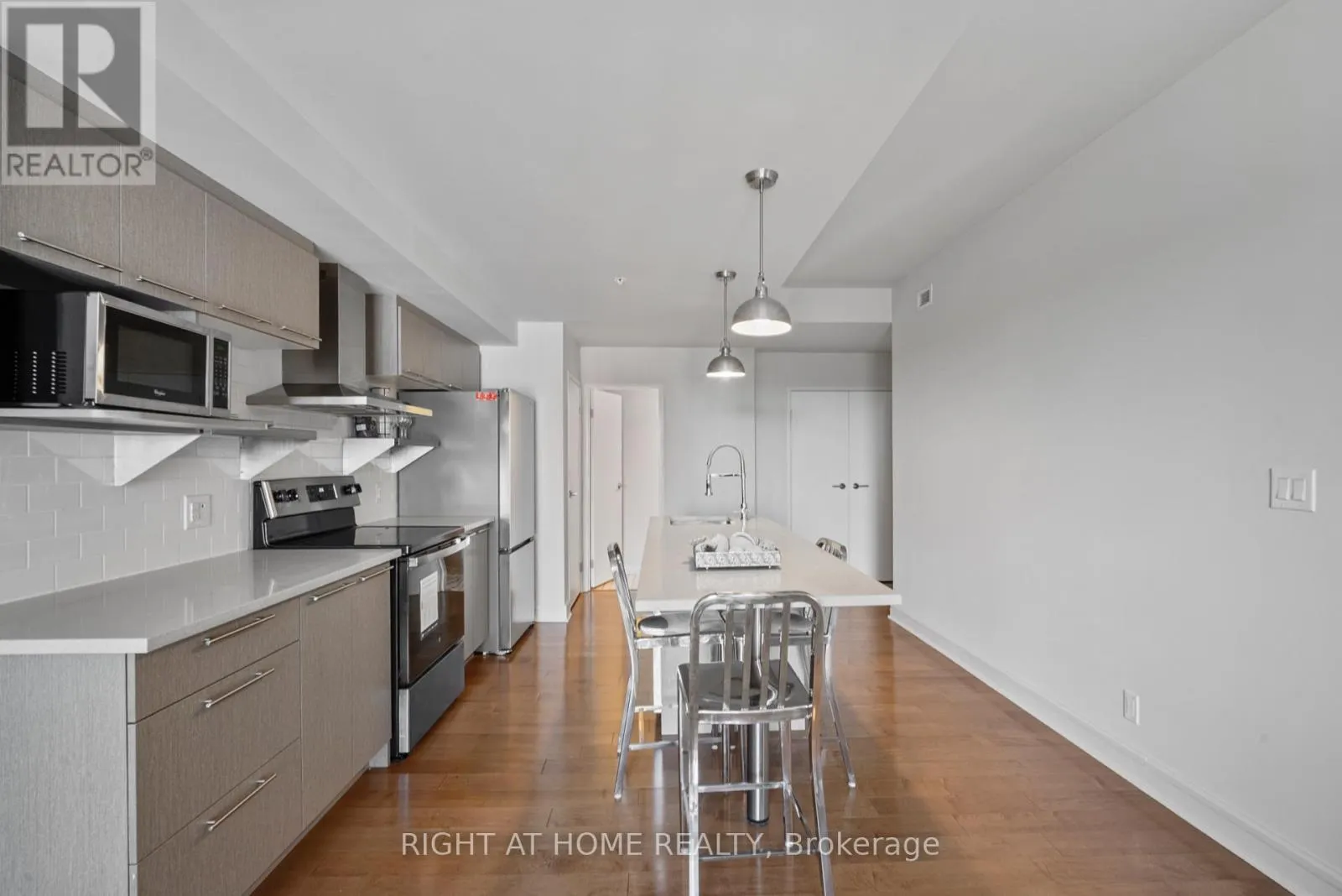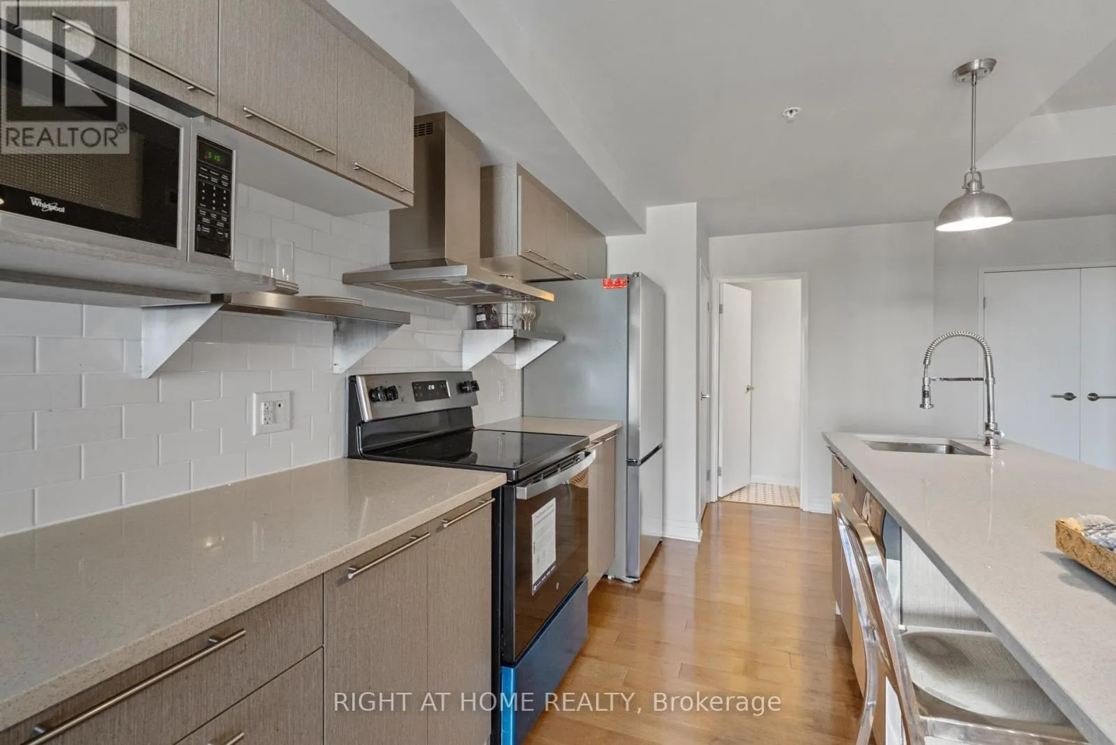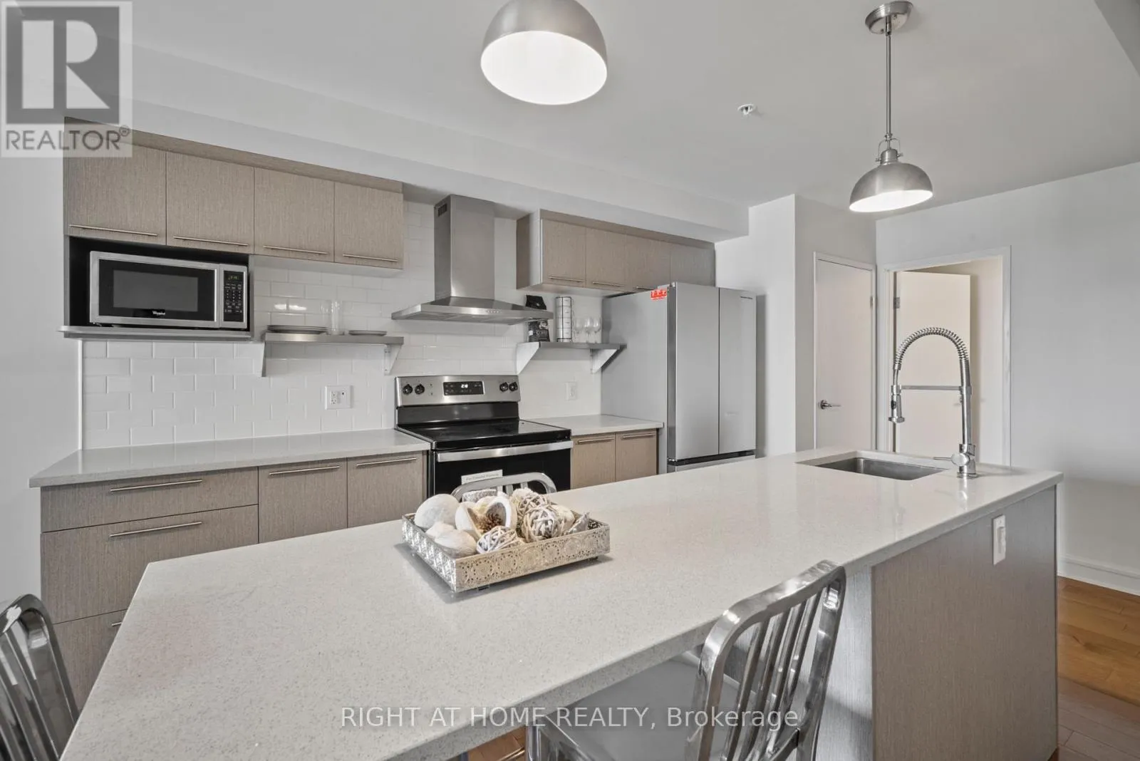 Cross Streets: Bank St & Walkley. ** Directions: Behind the Marriott Residence Inn on Anand Private. Experience this 1-bedroom, 1.5-bath condo offering 865 sq. ft. plus a 95 sq. ft. balcony with gas BBQ hookup. This bright unit features oversized windows, an exposed brick wall, sleek vessel sinks, and brand-new appliances throughout.Modern kitchen with quartz countertops, floating shelves, breakfast bar, and stainless steel appliances. Enjoy top-tier amenities including a gym, pet spa, party/lounge room with WiFi, walking paths, and underground parking.Located at the base of the Walkley Station LRT with easy access to Mooney's Bay Park, Carleton University, shopping, dining, and Highway 417.Includes 1 parking space and 1 locker. (id:27476)