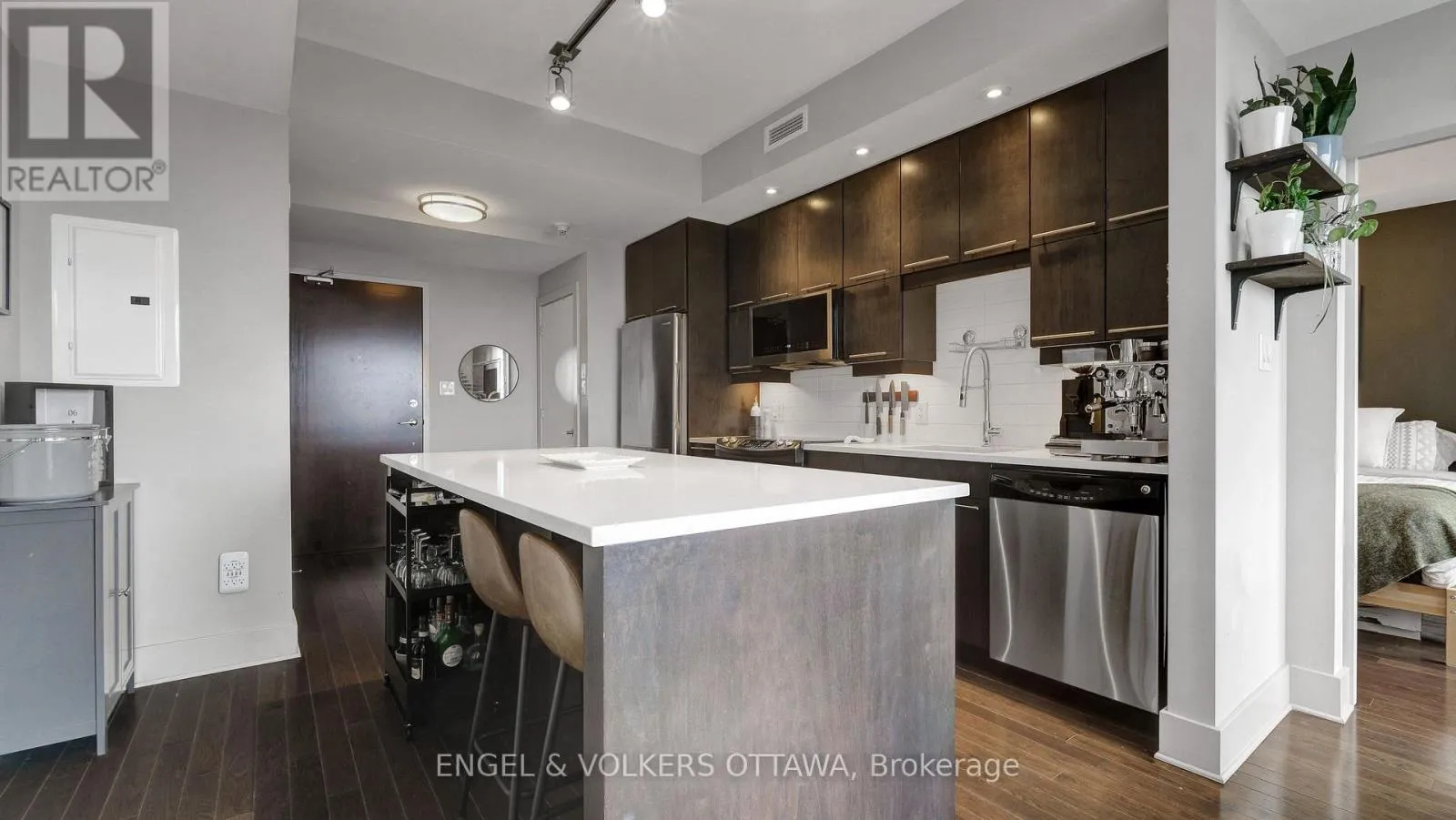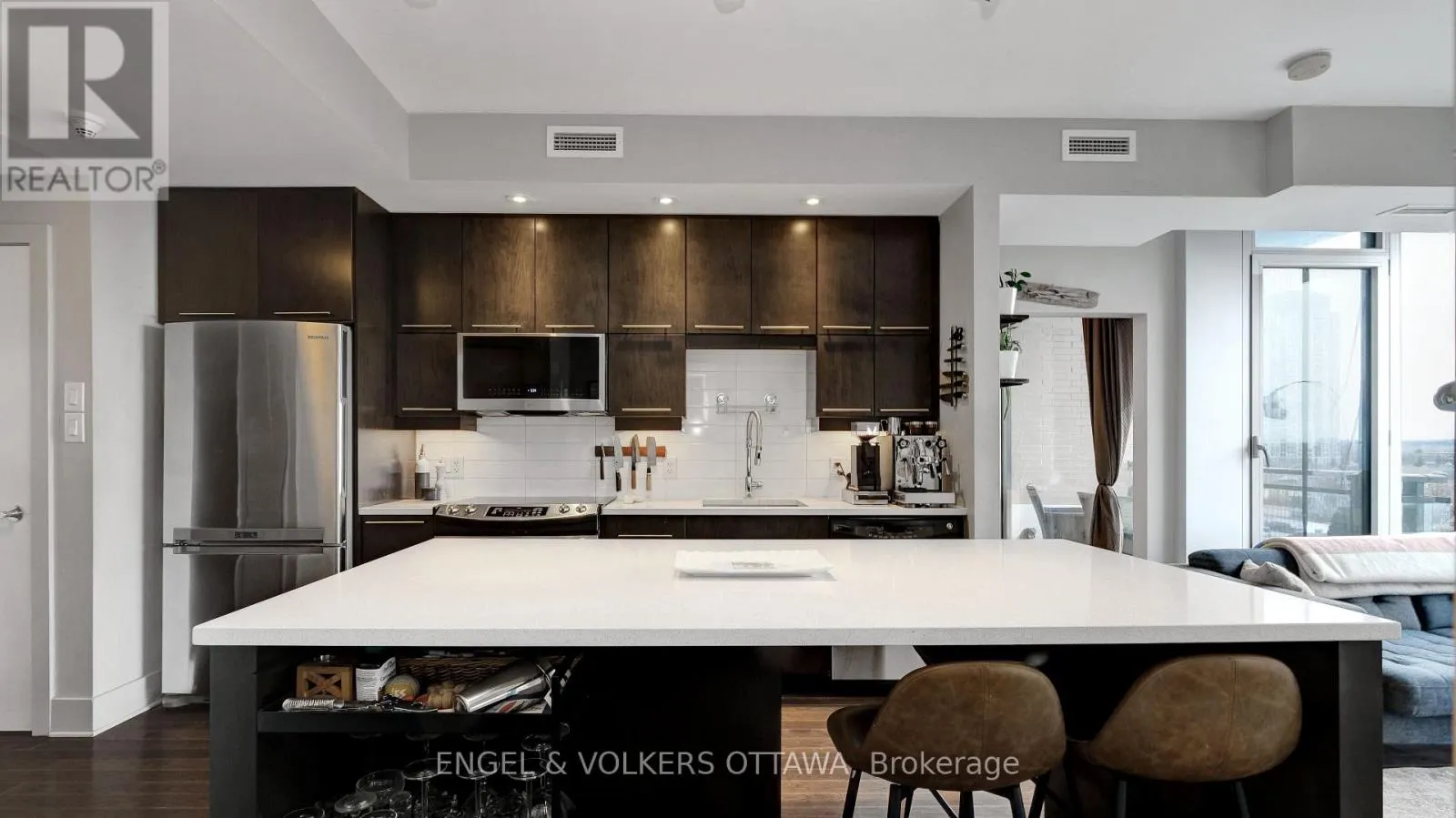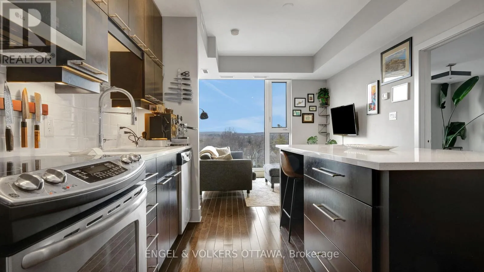 Cross Streets: Island Park Dr / Richmond Rd. ** Directions: Heading west on the Queensway, take the Island Park Drive exit. Proceed north on Island Park Drive, then turn left onto Richmond Road. Welcome to Suite 509 at 101 Richmond Road, a beautiful 2 bedroom, 2 bathroom condo ideally situated in the heart of Westboro. This well-designed unit offers a bright, open-concept layout with modern finishes, balancing everyday comfort with functional living. Past the spacious entry, the kitchen is thoughtfully laid out with sleek cabinetry, a large island, quartz countertops, tile backsplash, and stainless steel appliances, flowing seamlessly into the bright and inviting living room. Large windows flood the unit with natural light and offer beautiful views of the Gatineau Hills. Hardwood flooring runs through the main living areas, with tile in the bathrooms, and the unit features a clean, modern aesthetic throughout. Both bedrooms are well sized, including a primary suite with its own en-suite bathroom, offering privacy and functionality. The spacious balcony provides extra room to lounge, relax and enjoy the outdoors. Located in one of Ottawa's most sought-after neighbourhoods, you're just a short walk to shops, cafés, restaurants, and the Ottawa River pathways. Building amenities include a fitness centre, party room, theatre room, rooftop terrace, and car wash bay. Unit includes one underground parking space, one storage locker, and a bike rack. This is great value and urban living done right! (id:27476)