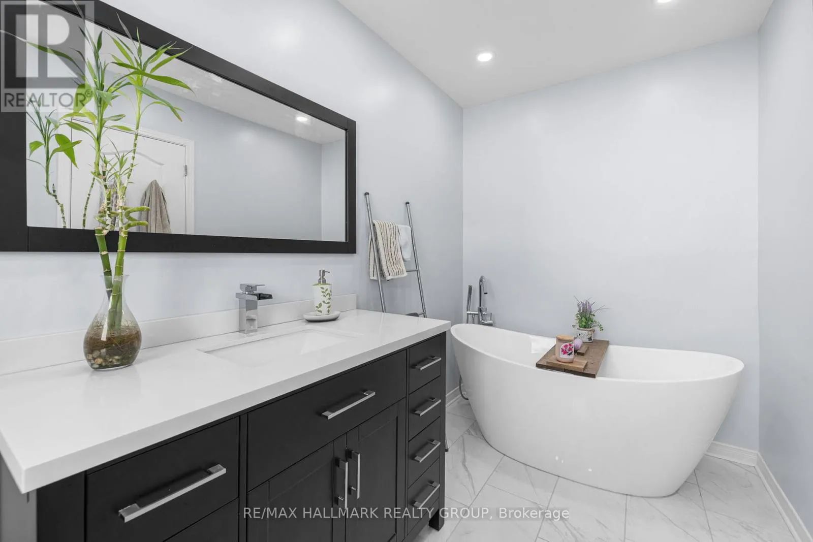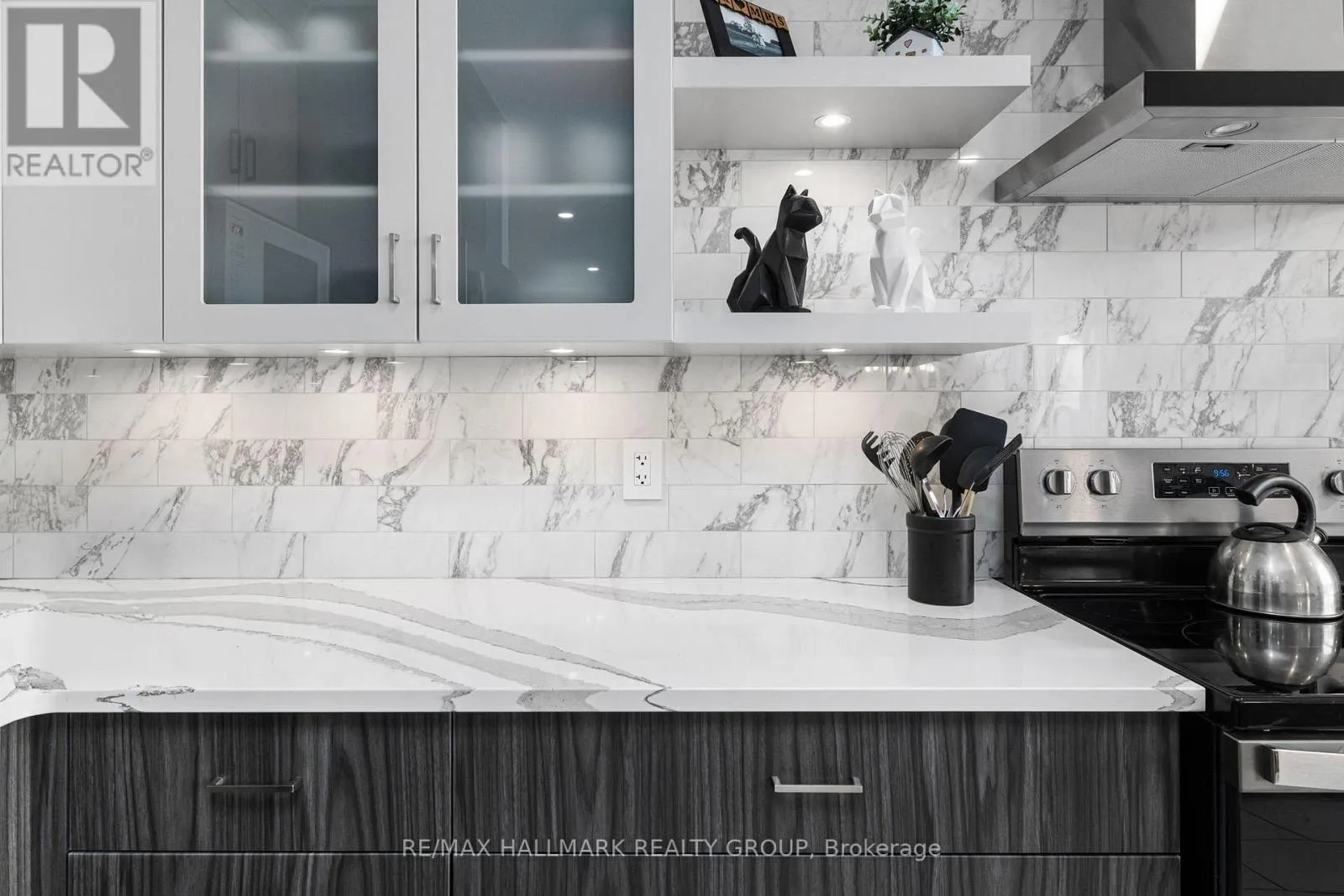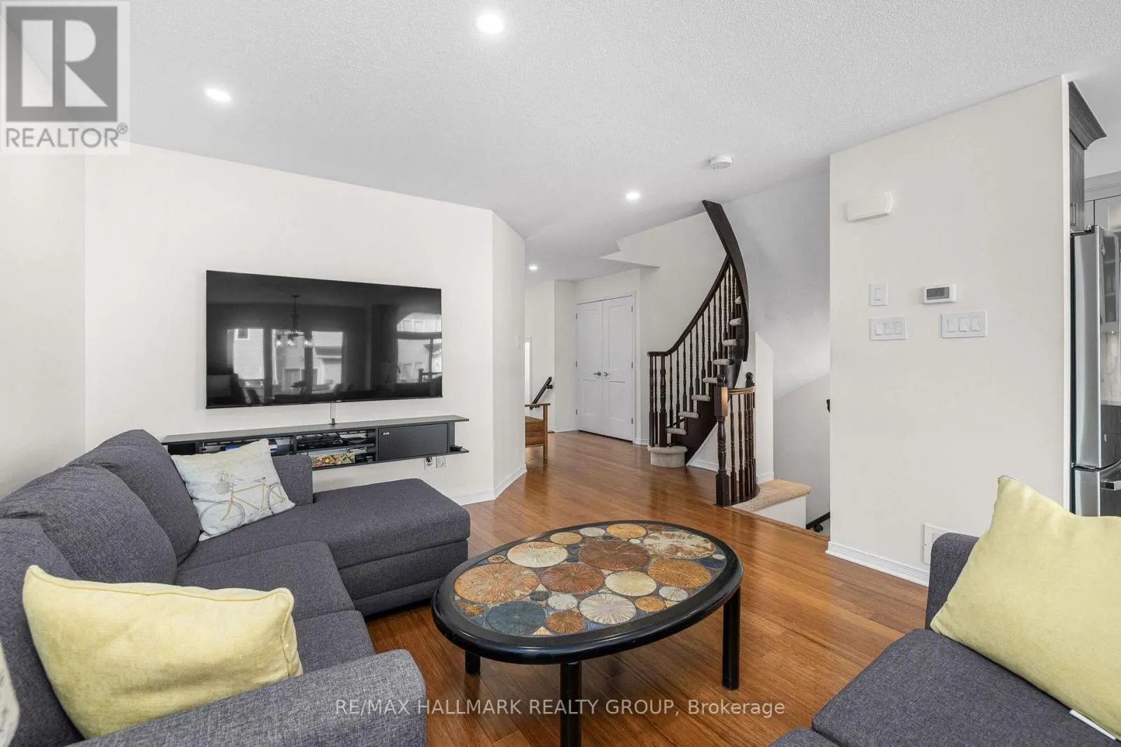 Cross Streets: Selene Way and Monaco. ** Directions: From Tenth Line go East on Southfield, left on Branthaven, left on Selene Way and left again on Monaco, second home on the Right. Extensively updated ever popular Minto Manhattan freehold townhome (1867sq ft) boasting just over 130K in recent updates. Upon entering this immaculately cared for 3 bedroom/2.5 bathroom home located on a quiet family street you will be greeted by an inviting spacious entrance with a newly renovated powder room. One of the highlights of this beautiful home is the completely remodeled kitchen which features ample cabinetry with custom pull out cabinets, quartz counters, undermount lighting, SS appliances and modern ceramic tiles. Adjacent to the kitchen is the dining and living room which is complemented by bamboo flooring and loads of pot lights (with dimmer switches). The circular staircase leads you to the second level which also features bamboo flooring in all 3 bedrooms and the hallway. The spacious master has a large WIC and a newly updated ensuite bathroom with free standing tub, modern vanity with quartz and separate shower. There are two other generous bedrooms including the second bedroom with custom built-in shelving, perfect for the book enthusiast. The beautifully finished lower level features high grade laminate flooring,a cozy gas fireplace and pot lights. The backyard has a convenient 2 tier deck which is perfect for summer BBQs. This immaculate home has undergone several recent updates such as: freshly painted throughout, roof '20/22, furnace & A/C '23, kitchen '23, ensuite bathroom '20, pot lights '22/23, custom bookshelf '21, powder room '23, deck '16. Only carpet on staircases. Ideally situated closer to great schools, parks, transit, shopping.. (id:27476)