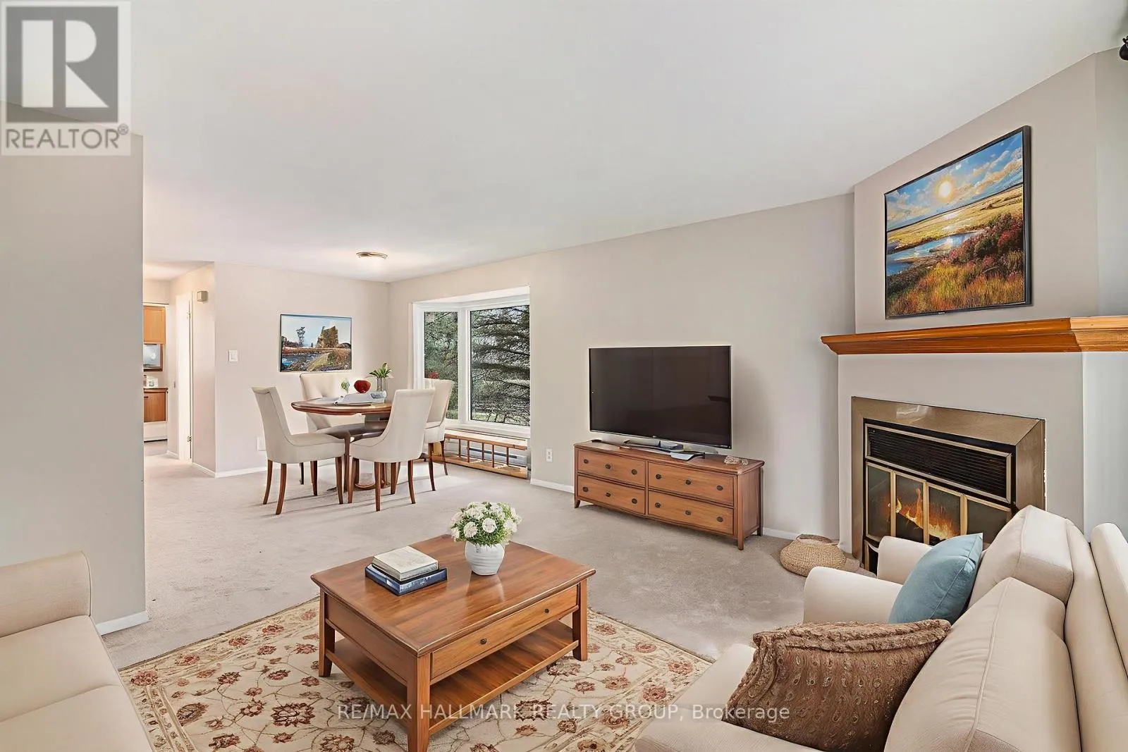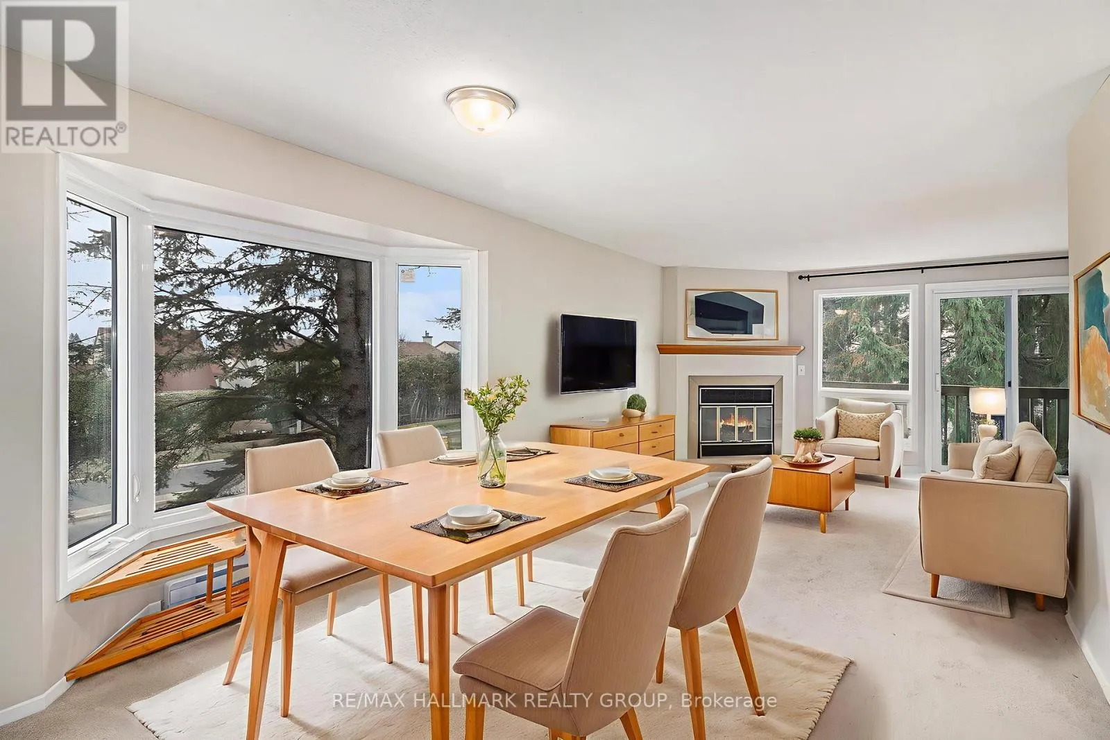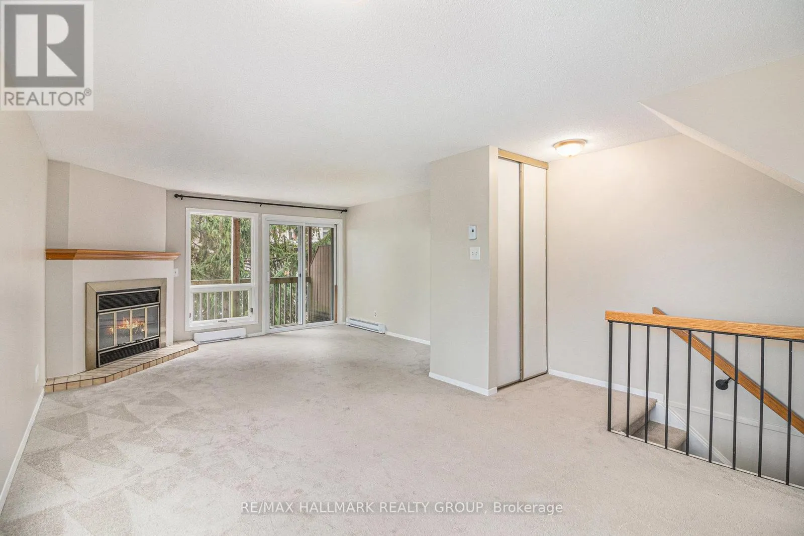 Cross Streets: Jeanne D'arc & Bilberry. ** Directions: Jeanne d'Arc Blvd to Bilberry Drive. Well maintained, end-unit 2-bedroom, 2 bath upper terrace condo offering a bright interior in a peaceful, forest-backed setting of Convent Glen. The main level features an open-concept living/dining area with a cozy wood-burning fireplace and access to a private balcony with tranquil green-space views. A sun-filled eat-in kitchen and convenient powder room complete the main floor. Upstairs you'll find a sky light over the staircase & upper hallway, spacious primary bedroom with wall-to-wall closet space and its own private balcony, a bright second bedroom, full bathroom, and in-unit laundry/storage area. Newer carpets on the upper level, newer full sized washer/dryer and freshly painted throughout. Located steps from parks, playgrounds, transit, shops and the Ottawa River pathways, with easy access to Place d'Orleans, Petrie Island Beach and the LRT station. A perfect low-maintenance home in a highly desirable, nature-surrounded neighborhood. (id:27476)
