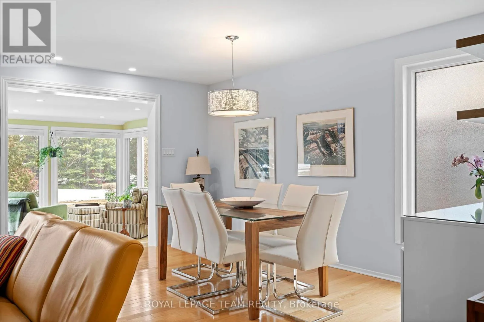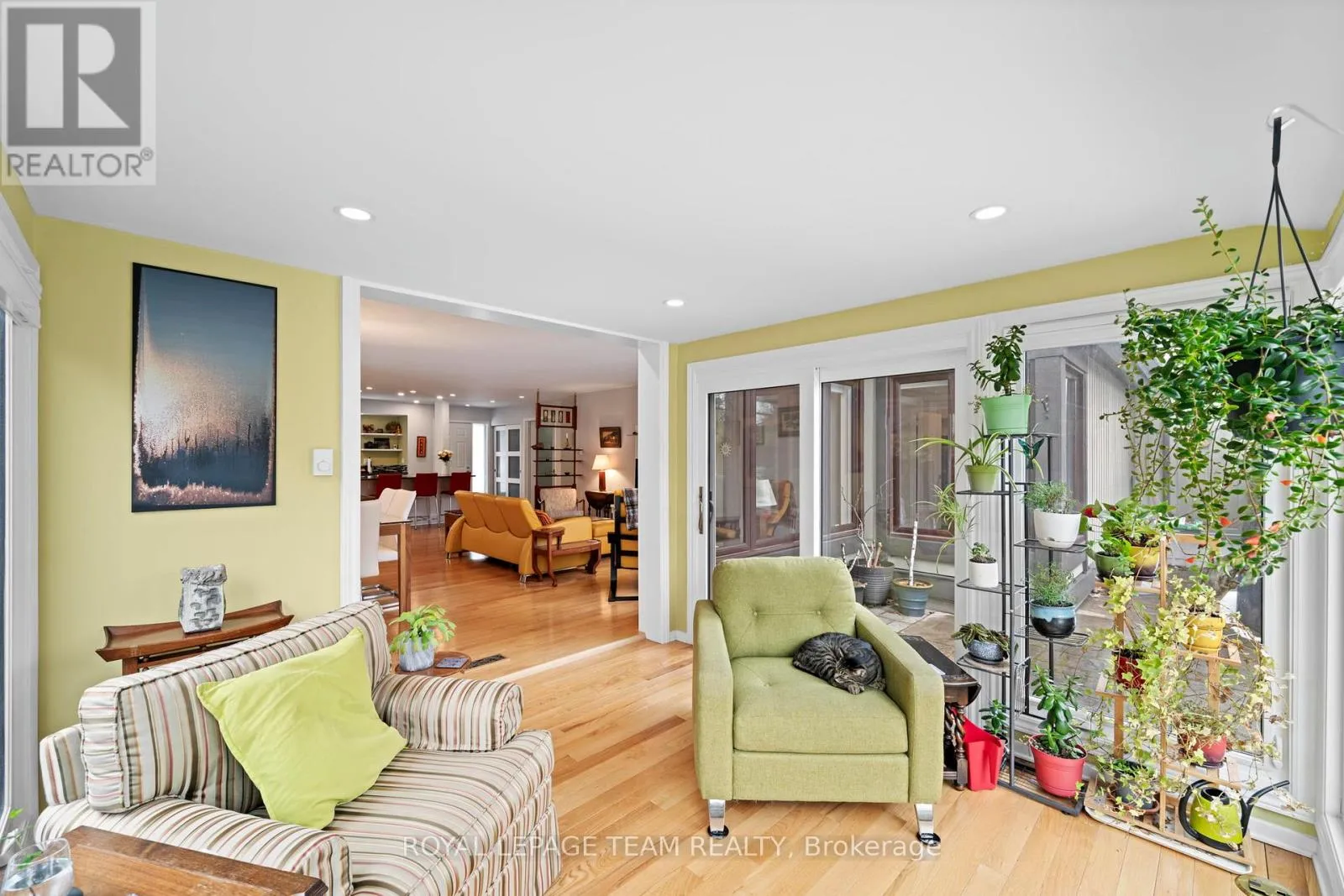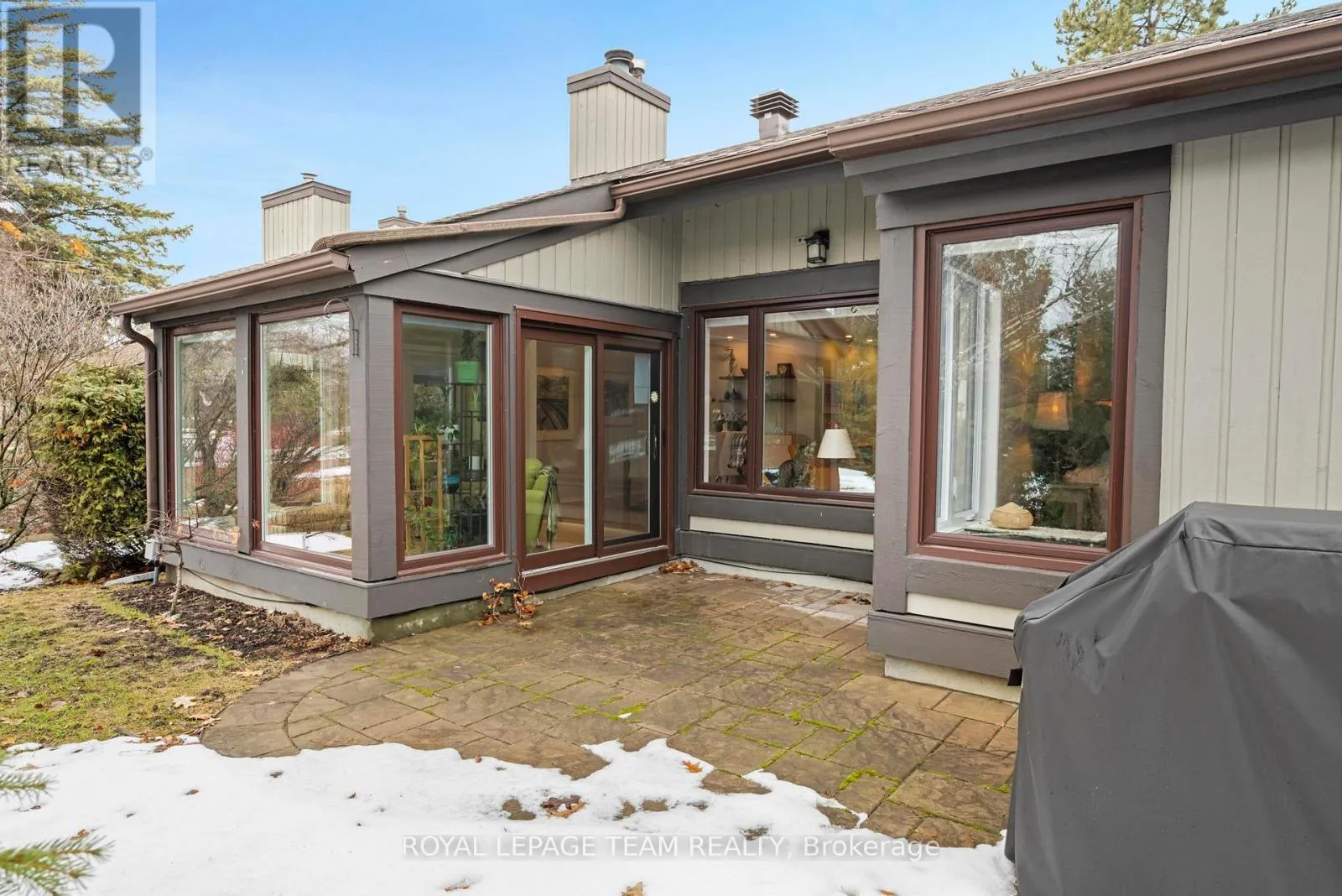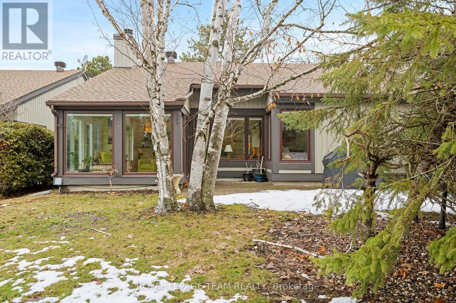 Cross Streets: Kittansett Court & Old Orchard Crescent. ** Directions: Hazeldean to Springbrook to Old Orchard Crescent to Kittansett Court. Nestled amongst the pines of Amberwood Village - executive, *end-unit* bungalow condominium uniquely renovated to an impressive standard. Beautifully finished & meticulously maintained, ideally located on a prestigious court in the quiet community in Stittsville. Enjoy excellent walkability to parks, essential shopping, restaurants & local amenities. This charming, carpet-free home features a welcoming foyer with access to true open concept living. The elegant remodeled kitchen offers ample white cabinetry, tile flooring, newer stainless steel appliances, & a generous island with quartz counters-perfect for meal prep & entertaining. A separate walk-in pantry incorporates kitchen storage & the convenient main floor laundry, & features a stylish stained glass door. The open-concept living & dining area showcases gleaming hardwood flooring, & a spectacular, integral sunroom with a door leading to the peaceful rear yard creating a cozy atmosphere. The sunroom will delight - bathed in natural light, the perfect spot for morning coffee! The spacious primary bedroom retreat overlooks the backyard with dual aspect windows. Oversized walk-in closet & full ensuite. The bright & airy bathroom boasts an upgraded large walk-in shower & ceramic tile flooring, quartz topped vanity & solar tunnel for natural light. All fully renovated! A full family bathroom, renovated to the same standard complete with natural light, solar tunnel skylight. Charming additional bedroom or den with double french doors to the foyer & elegant window seat completes this floor.The fully finished lower level includes a family room, sitting area & library section. A third fully renovated bathroom with a large walk-in shower. Storage has not been forgotten, with ample space allocated! The rear yard will not disappoint - secluded, private & peaceful with a patio area, surrounded by greenery. Two single-car detached garages crown this exceptional property. (id:27476)