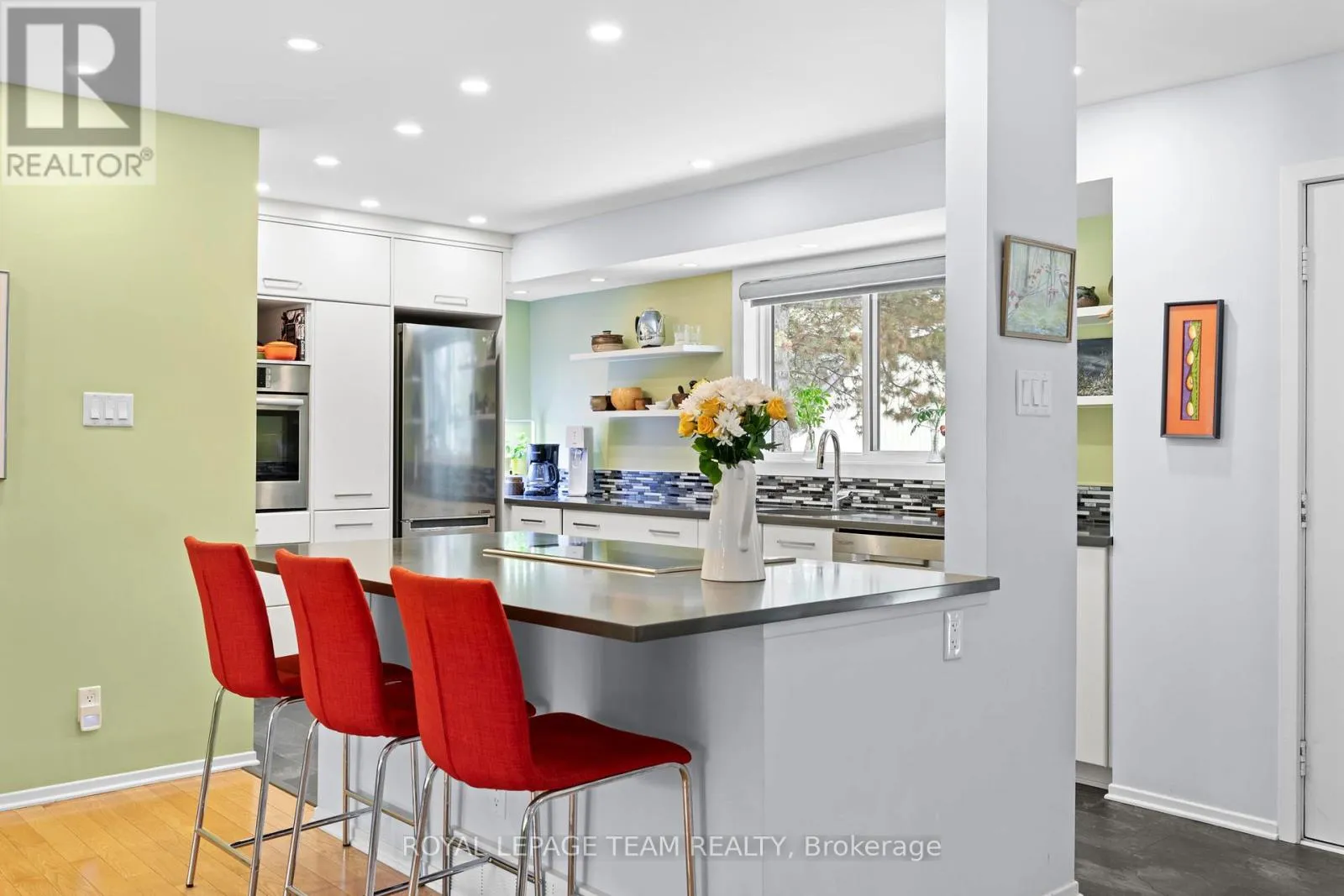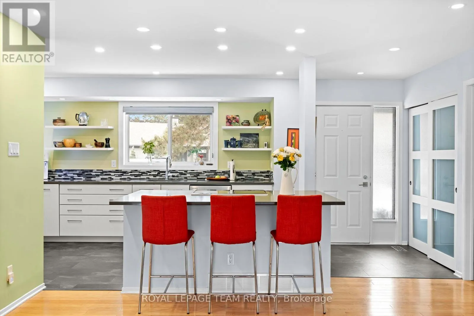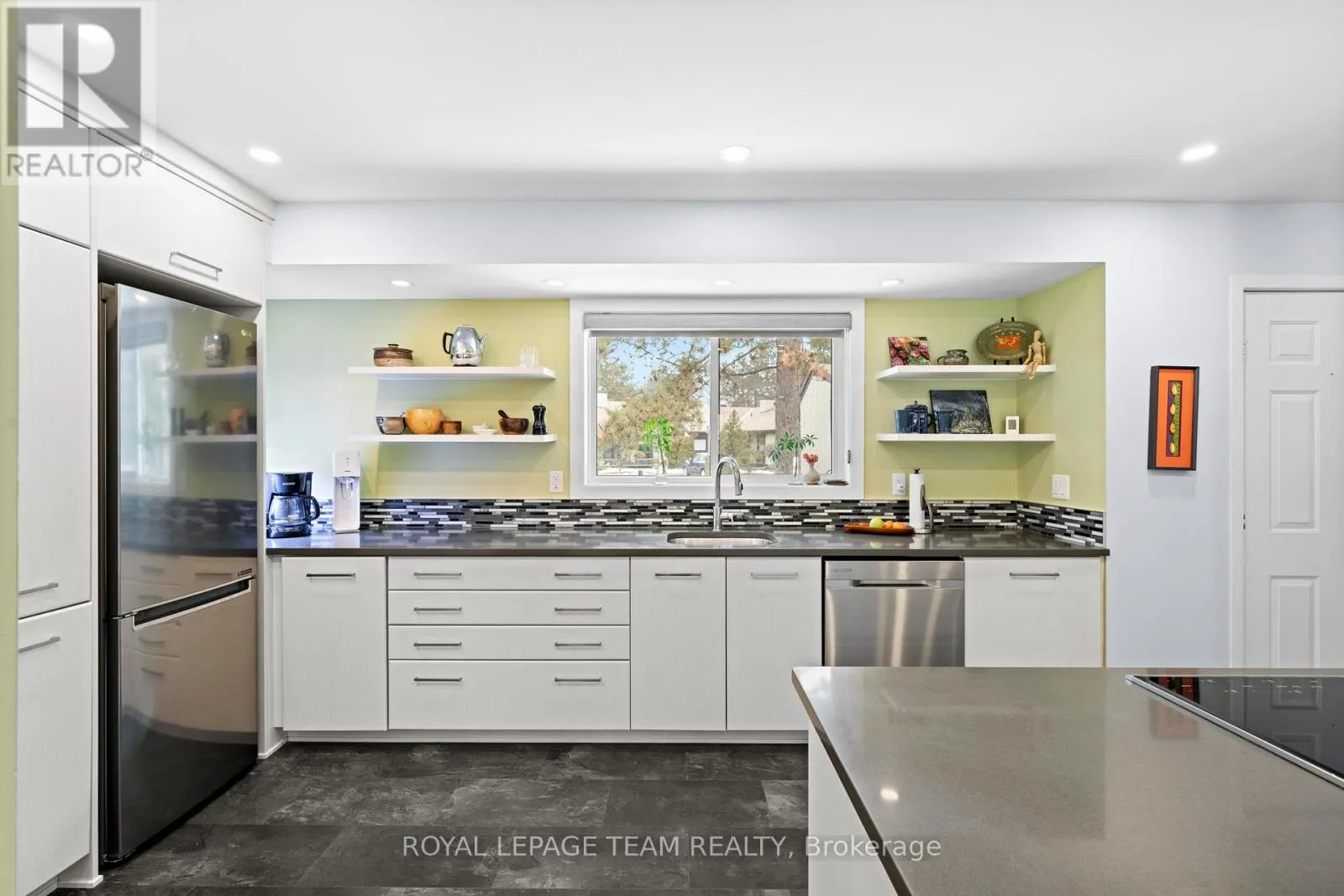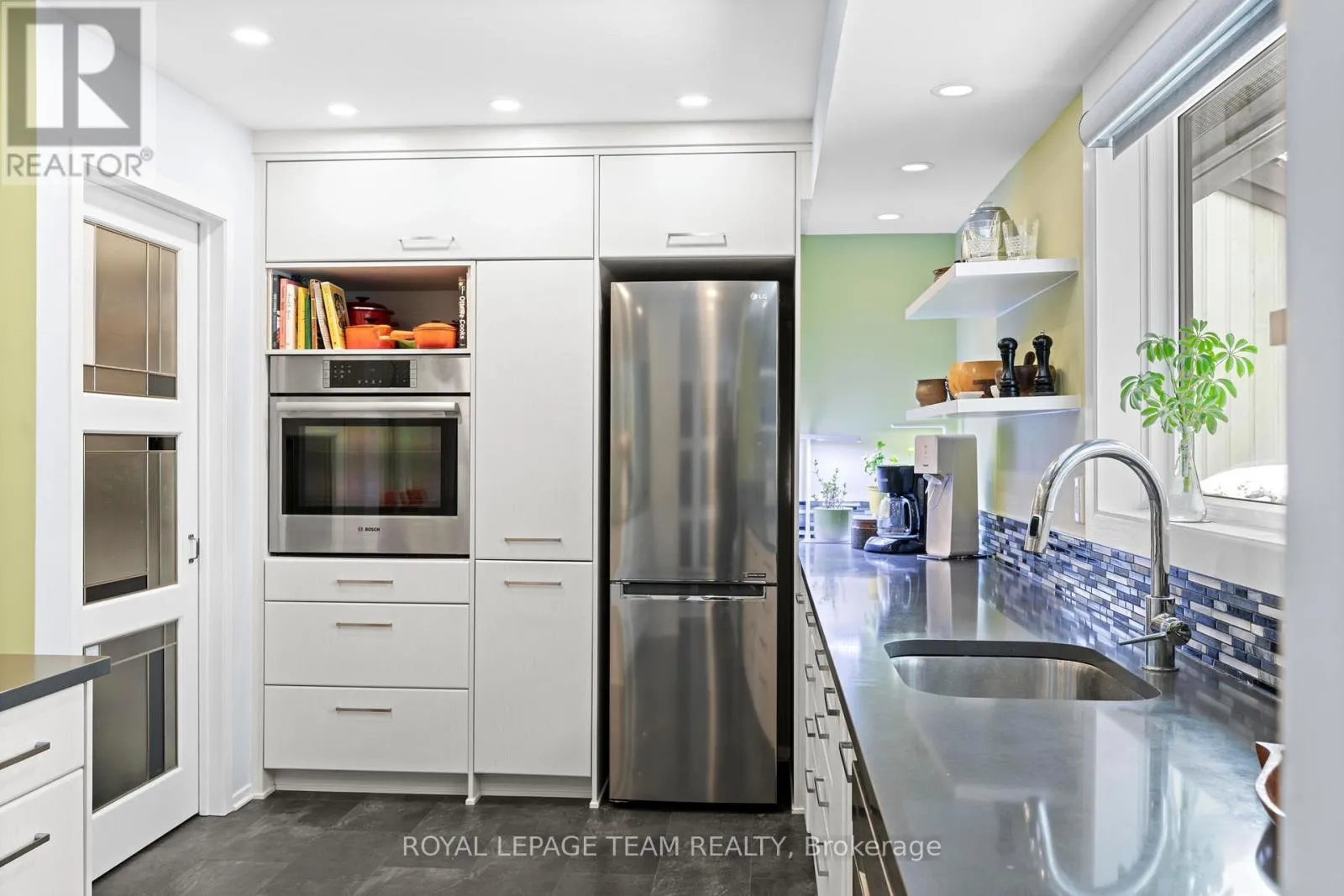 Cross Streets: Kittansett Court & Old Orchard Crescent. ** Directions: Hazeldean to Springbrook to Old Orchard Crescent to Kittansett Court. Nestled amongst the pines of Amberwood Village - executive, *end-unit* bungalow condominium uniquely renovated to an impressive standard. Beautifully finished & meticulously maintained, ideally located on a prestigious court in the quiet community in Stittsville. Enjoy excellent walkability to parks, essential shopping, restaurants & local amenities. This charming, carpet-free home features a welcoming foyer with access to true open concept living. The elegant remodeled kitchen offers ample white cabinetry, tile flooring, newer stainless steel appliances, & a generous island with quartz counters-perfect for meal prep & entertaining. A separate walk-in pantry incorporates kitchen storage & the convenient main floor laundry, & features a stylish stained glass door. The open-concept living & dining area showcases gleaming hardwood flooring, & a spectacular, integral sunroom with a door leading to the peaceful rear yard creating a cozy atmosphere. The sunroom will delight - bathed in natural light, the perfect spot for morning coffee! The spacious primary bedroom retreat overlooks the backyard with dual aspect windows. Oversized walk-in closet & full ensuite. The bright & airy bathroom boasts an upgraded large walk-in shower & ceramic tile flooring, quartz topped vanity & solar tunnel for natural light. All fully renovated! A full family bathroom, renovated to the same standard complete with natural light, solar tunnel skylight. Charming additional bedroom or den with double french doors to the foyer & elegant window seat completes this floor.The fully finished lower level includes a family room, sitting area & library section. A third fully renovated bathroom with a large walk-in shower. Storage has not been forgotten, with ample space allocated! The rear yard will not disappoint - secluded, private & peaceful with a patio area, surrounded by greenery. Two single-car detached garages crown this exceptional property. (id:27476)