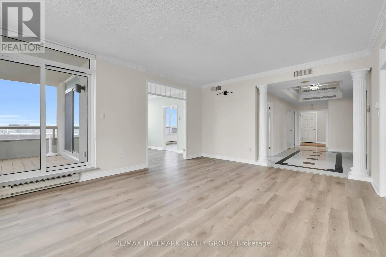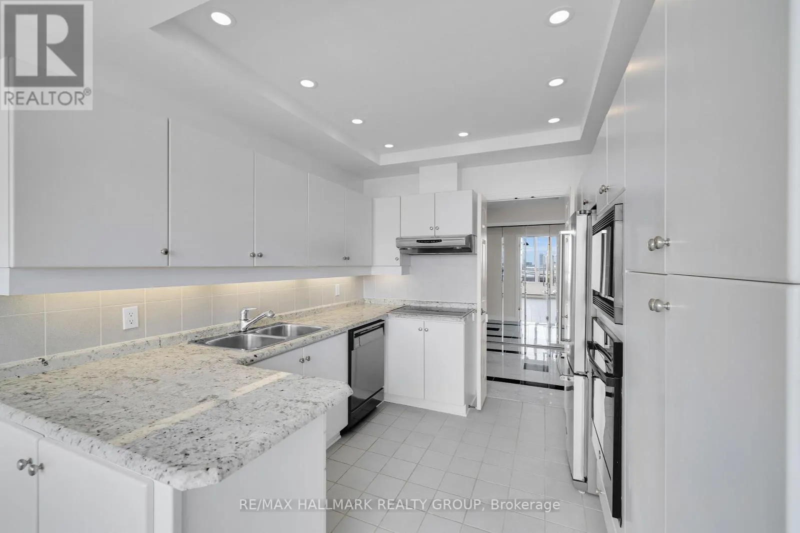Cross Streets: Industrial Avenue. ** Directions: Riverside Drive, south of Industrial Avenue. Welcome to "The Classics at Riviera" - this elegant 1990 sq ft condominium offers 2 bedrooms plus a den, 3 bathrooms and an unparalleled lifestyle with an array of top-tier amenities. Boasting a bright and spacious floor plan with marble foyer, high ceilings, new gleaming hardwood floors and an abundance of windows. The generous living room, den, and formal dining room provide ideal spaces for both everyday comfort and entertaining. The well-appointed kitchen features granite countertops and opens to an inviting eating area. Impressive primary suite, complete with two walk-in closets and a luxurious 6-piece ensuite with Roman tub and separate shower. The unit also features a spacious secondary bedroom, additional full bathroom, and convenient powder room. Additional highlights include a balcony, in-suite laundry, underground parking, and a storage locker. Residents enjoy an abundance of exceptional amenities, including a fully equipped fitness centre, weight room, indoor pickleball court, indoor pool, sauna, and steam room. Entertain in the elegant party room with piano and dining area, relax in the library, or enjoy the games room with pool table and a separate ping pong room. Outdoors, beautifully landscaped grounds feature walking paths, fountains, BBQ areas, an outdoor pool, and tennis courts. Added conveniences include a hair salon, meeting room, concierge services, and 24/7 gated security. Ideally located minutes to the 417, Trainyards shopping, and a short walk to Hurdman LRT station, this exceptional condominium offers the perfect blend of luxury &convenience! Tenant pays heat, hydro and tenant insurance. (id:27476)
