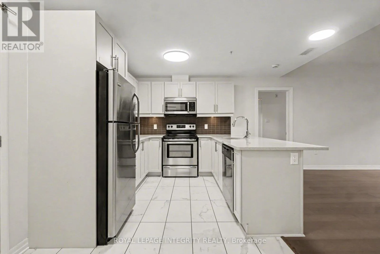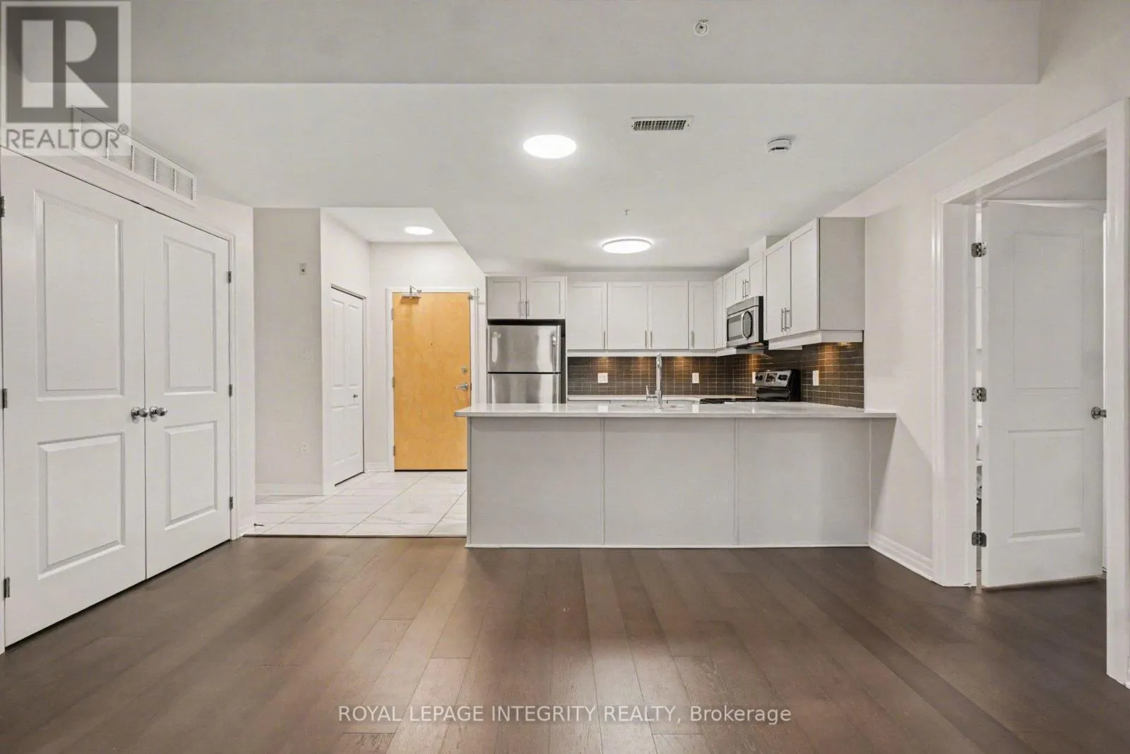 Cross Streets: Southeast Corner of Conroy Rd and Johnston Rd. ** Directions: At the corner of Conroy Rd and Johnston Rd. Move-in ready 2 bedroom 2 bathroom condo with heated underground parking in the contemporary Hunt Club Flats Collection by Claridge, only 15 minutes from downtown Ottawa. Built in 2014, this modern low-rise condominium complex offers a boutique living experience, distinguished by its manicured grounds, sleek design, tastefully furnished lobby, and bright, welcoming hallways. This freshly painted unit boasts tasteful hardwood and tile flooring, large windows and tall ceilings. The stylish open concept kitchen features a large quartz peninsula perfect for casual dining or entertaining, stainless steel appliances and a chic tiled backsplash. Patio doors provide direct access to a fair size balcony equipped with a BBQ gas hook-up. The primary bedroom is a true retreat, offering a walk-in closet and a luxurious 4-piece ensuite bathroom. The unit also includes a secondary bedroom, a well-appointed 3-piece bathroom, and a convenient in-unit laundry closet. Additional features include custom blinds, all appliances included, a dedicated storage locker, and the coveted heated underground parking spot closest to the elevators. Experience the perfect blend of comfort, convenience, and maintenance-free living at an affordable price point. 24 hours irrevocable on offers. Deposit instructions can be found on listing (id:27476)
