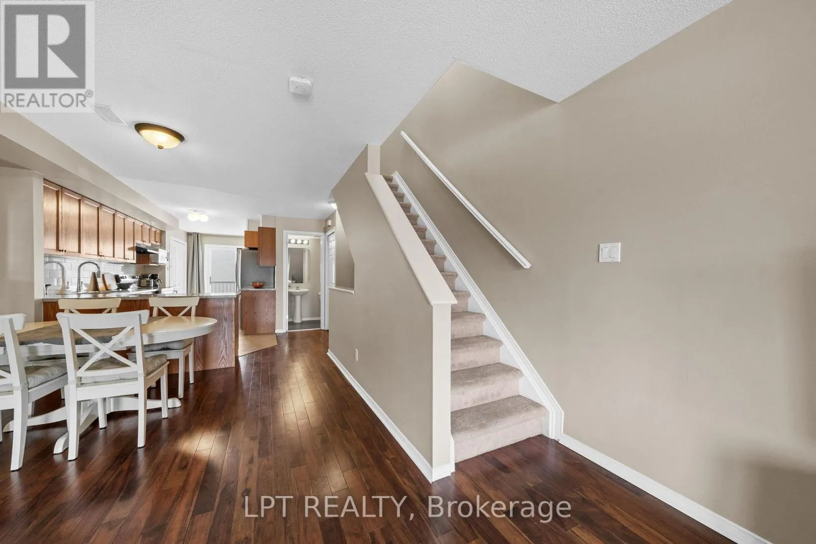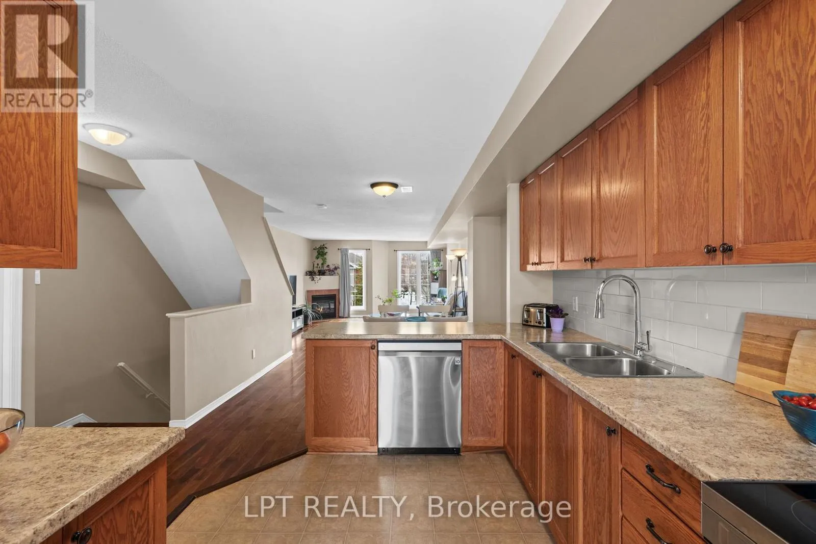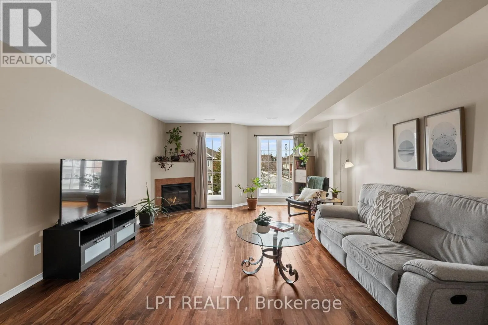 Cross Streets: Longfields and Berrigan. ** Directions: Greenbank to Berrigan to Longfields. Well-maintained 2-bedroom, 3-bathroom two-level condo in Barrhaven offering approximately 1,358 sq ft of bright and functional living space. The main level features a spacious open-concept living and dining area with laminate flooring, large windows, and a gas fireplace, creating a comfortable and inviting space. The kitchen offers ample cabinetry, laminate countertops, a double sink, and a convenient eat-in area that can also function as a home office, with direct access to a private balcony. A 2-piece powder room and additional storage complete this level. The upper level provides excellent separation with two generously sized bedrooms, each featuring its own 3-piece ensuite. The primary bedroom includes two windows and access to a second private balcony, while the second bedroom offers a large closet and bright natural light. In-unit laundry is conveniently located on this level. Includes one parking space (#29). Ideally located close to schools, parks, transit, and everyday amenities in a well-established Barrhaven community. (id:27476)