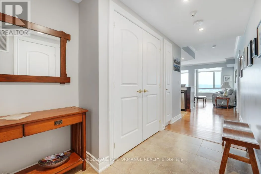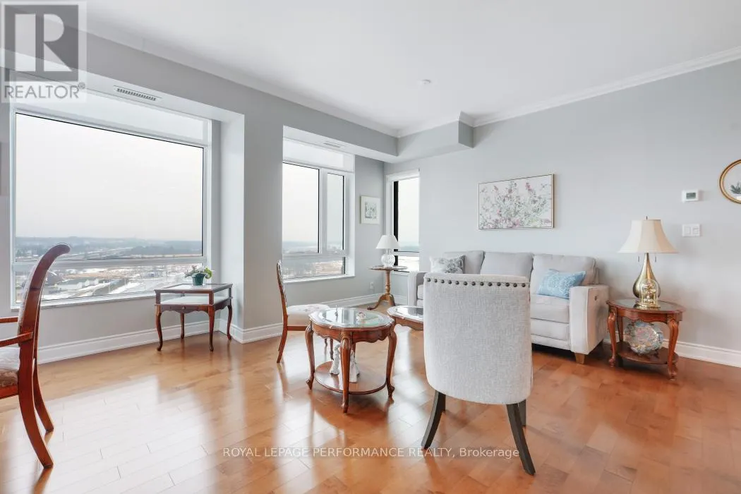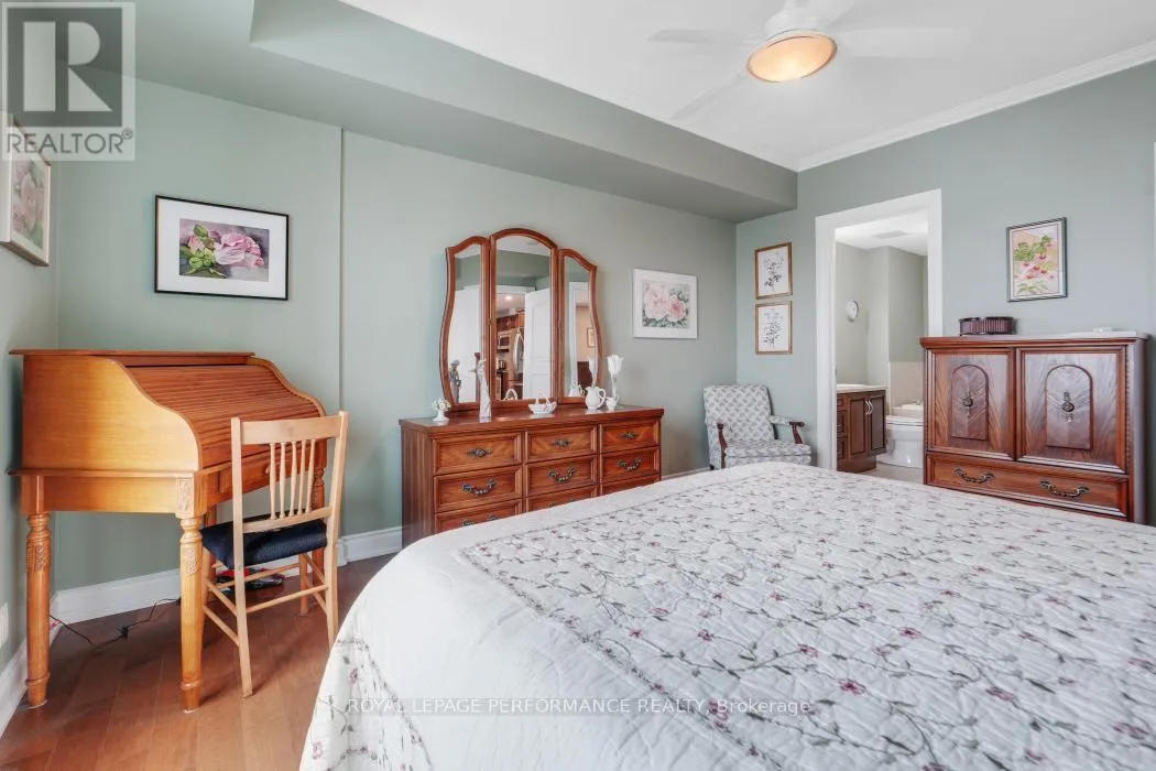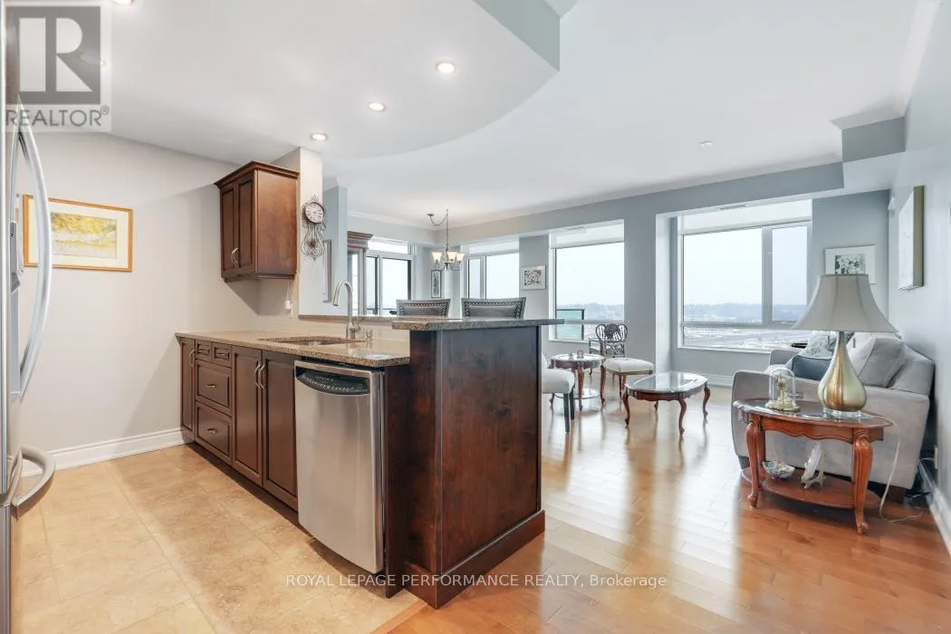 Cross Streets: Trim Road and Jeanne D'arc Blvd. ** Directions: Hwy 174 to Trim Rd to Inlet Private. Experience elevated living in this luxurious 2 bedroom condo offering 1330 square feet of exquisitely designed living space and breathtaking views. The bright open-concept layout is sure to impress, featuring beautiful hardwood floors throughout and a seamless flow ideal for both everyday living and entertaining. The sophisticated kitchen showcases rich dark cabinetry, granite countertops, modern finishes and a stylish breakfast bar - perfect for casual dining or morning coffee. The elegant living and dining areas are surrounded by wall-to-wall windows, filling the home with natural light and simultaneously framing glorious sunsets and stunning vistas of the Ottawa river. The primary suite offers a peaceful retreat with a private 4 piece ensuite bath and walk-in closet. A generous second bedroom and an additional full bathroom provide excellent flexibility for guests, family, a TV room or a home office. A large linen/pantry closet is handy for additional storage. Step outside to the wrap-around balcony with south, west and northern exposures, where you can enjoy spectacular sunsets and ever-changing river views. Residents also benefit from excellent building amenities. Utilities are conveniently included in the condo fees and one underground parking space and two lockers are included in the sale. Ideally located within walking distance to the LRT, Petrie Island and scenic pathways. Easy highway access with just minutes to everything Orleans has to offer. Don't miss this rare opportunity to own a sophisticated condo with unmatched views, abundant natural light and exceptional indoor-outdoor living. (id:27476)