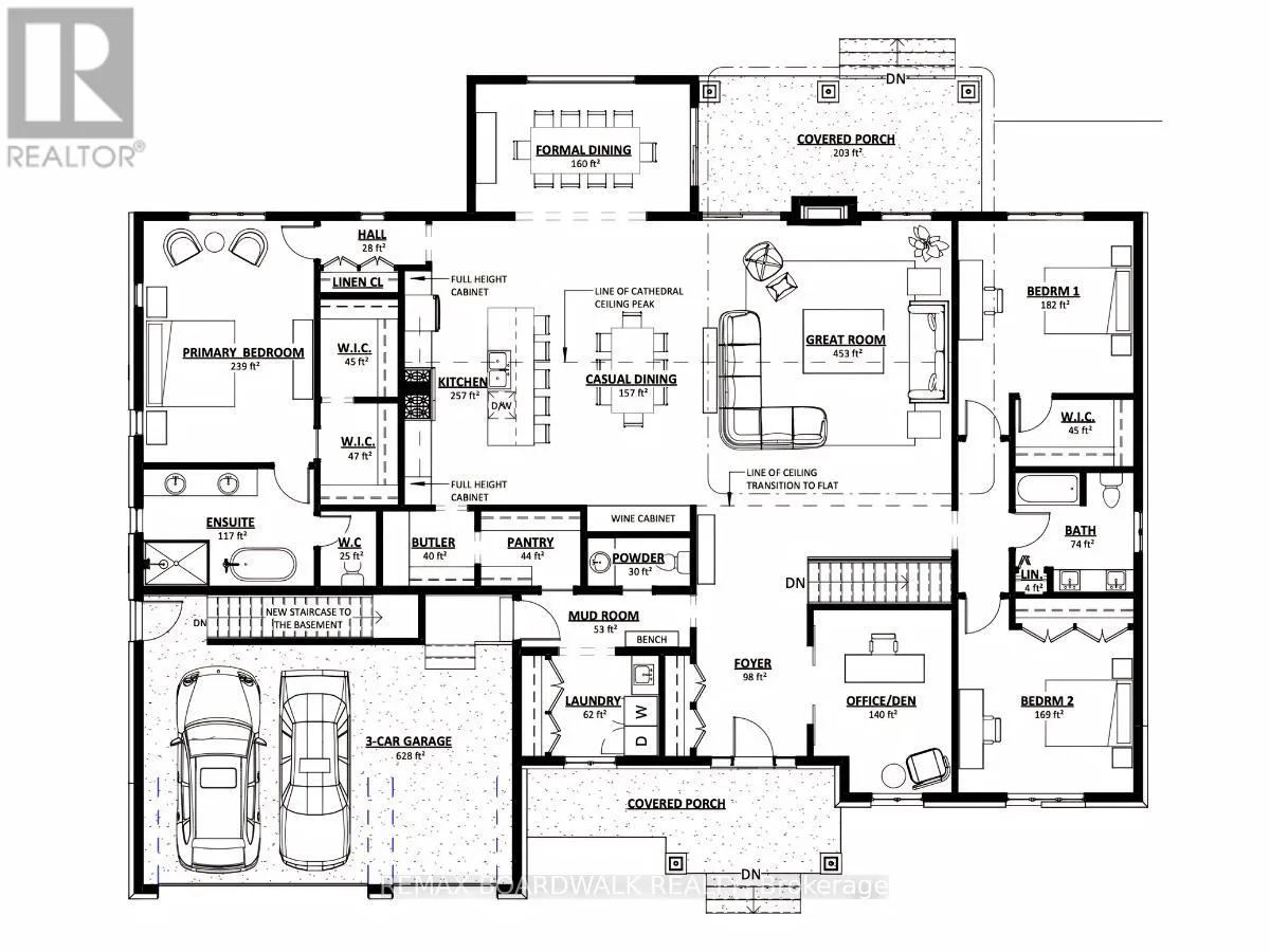 Cross Streets: First Line Road & Bankfield Road. ** Directions: From First Line Road, turn left onto Dunblane Way, turn left onto Cabrelle Place. House will be on your Right. Designed by Zanmar Homes, this custom-built 2,918 sq ft bungalow blends luxury with thoughtful design. The main floor features 3 bedrooms and 3 bathrooms, plus a bright home office with a glass wall and door, while the primary bedroom enjoys its own private wing complete with his and hers walk-in closet and a 5-piece ensuite bath. On the opposite side of the home, bedrooms 2 and 3 share a 5-piece bathroom, while bedroom 2 offers a walk-in closet. The great room boasts 18 ft cathedral ceilings and a stone fireplace, and the extended formal dining room opens directly to the covered porch, making it perfect for entertaining. Enjoy 9 ft ceilings, engineered hardwood flooring, 8 ft solid core doors, an upgraded fibreglass front door, and modern black interior and exterior windows with grills. The mudroom off the garage offers pantry access for ultimate convenience. The basement has a separate entrance, ideal for an in-law suite, with the option to finish for additional living space. Ready for occupancy this June, there's still time to personalize the floor plan with trusted Tarion Certified homebuilders. *Interior photos are from previous builds. (id:27476)