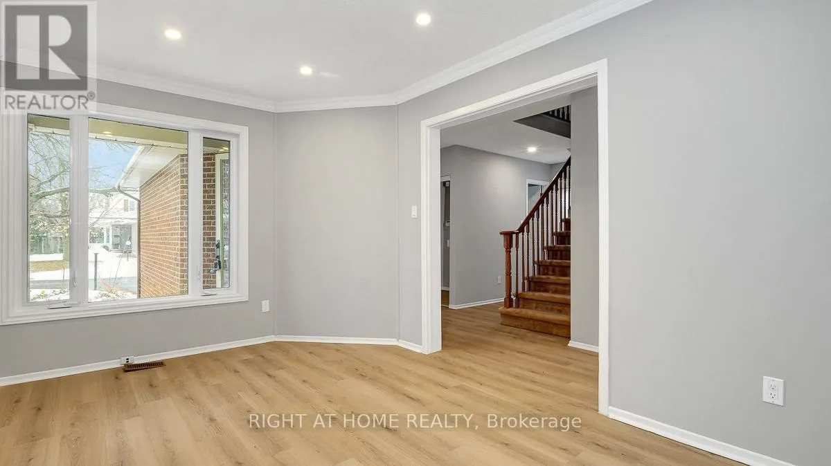 Cross Streets: Palomino Dr. ** Directions: Eagleson Rd to Palomino Dr to Chickasaw Cres. Situated on a desirable corner lot and available immediately, this spacious 4-bedroom, 3-bathroom detached home offers comfort, functionality, and immediate availability for its next owner. The main level is bright and welcoming, featuring updated flooring, a stylish kitchen with stainless steel appliances and space to add a large island, along with a sunken family room highlighted by a cozy wood-burning fireplace.The upper level includes four generously sized bedrooms, with a primary suite complete with a walk-in closet and its own private ensuite. The finished basement adds valuable living space, perfect for a recreation room, home gym, or media setup.Step outside to a fully fenced backyard with an interlock patio and nicely landscaped grounds-ideal for both relaxing and entertaining. Notable updates include the furnace (2017), A/C (2025), and fencing (2018). Located in a convenient area close to highways 416 and 417, as well as parks, schools, shopping, and walking trails. (id:27476)