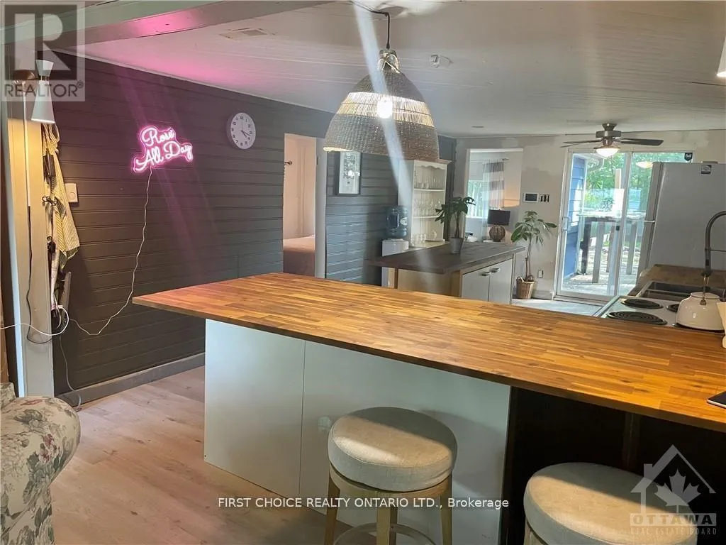 Cross Streets: CONSTANCE BAY TO BAYVIEW. ** Directions: DUNROBIN RD TO CONSTANCE BAY RD TO BAYVIEW. Waterfront Lifestyle Awaits! Welcome to one of the most charming bungalows in Constance Bay, where comfort, style, and lifestyle come together in this well maintained 2-bedroom, 1-bathroom open-concept home set on an impressive 75 ft x 125 ft lot in a sought-after waterfront community. From the moment you step inside, you're greeted by an abundance of natural light, a spacious front entrance, and a versatile den area perfect for a home office or cozy retreat. The open-concept design seamlessly connects the dining and living spaces, highlighted by a gas-burning fireplace capable of efficiently heating the home throughout the winter. The renovated kitchen features a stunning butcher block island, ample workspace, and a separate eating area with large patio doors leading to a generous private deck and backyard-ideal for entertaining or relaxing. Both bedrooms are bright and well-sized, and the home's smart, functional layout makes it feel more spacious than expected while remaining easy to maintain-perfect as a full-time residence, cottage, or investment property. Enjoy outdoor living with public water access directly across the street, along with the convenience of Bell Fibe internet, and a location just 20 minutes to Kanata, close to local restaurants, grocery stores, and the LCBO. Please note the property is tenant-occupied and requires a minimum of 24 hours' notice for all showings. (id:27476)