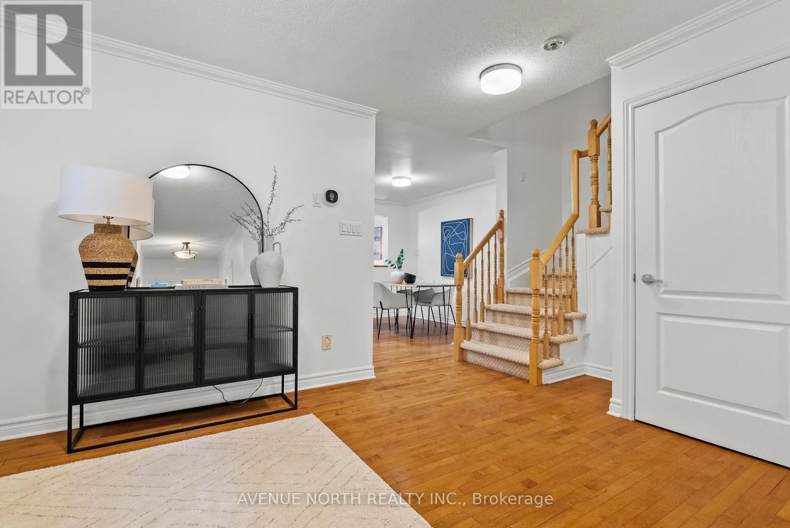 Cross Streets: Woodroffe Deerfox Palmadeo Deerfox OR Strandheard Claridge Rodeo San Mateo. ** Directions: Woodroffe ave to Deerfox Drive. DON'T MISS ON This wonderfully spacious semi-detached home features maple hardwood flooring and a functional U-shaped kitchen complete with 2026 upgrades including quartz countertops, an elegant backsplash, and new stainless steel appliances. The open-concept main floor flows from the kitchen into a dining area with crown mouldings and a bright living room with a cozy fireplace, complemented by a versatile front room ideal for a home office or formal dining. Upstairs, the primary suite offers a king-size layout, a 4-piece ensuite, and his-and-hers closets, alongside two additional bedrooms and a full bath. The finished basement adds significant value with a large family room, a dedicated den for a gym or office, and ample storage. The property is completed by a sunny backyard retreat featuring a BBQ deck, stone patio with pergola, and a storage shed-all ideally located near schools, parks, and transit. Recent maintenance includes a 2021 furnace, 2025 washer, and fresh 2026 paint.24-hour irrevocable required on all offers. (id:27476)