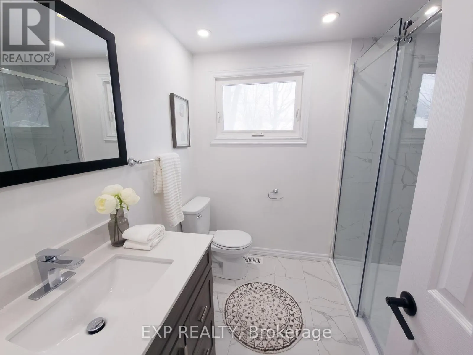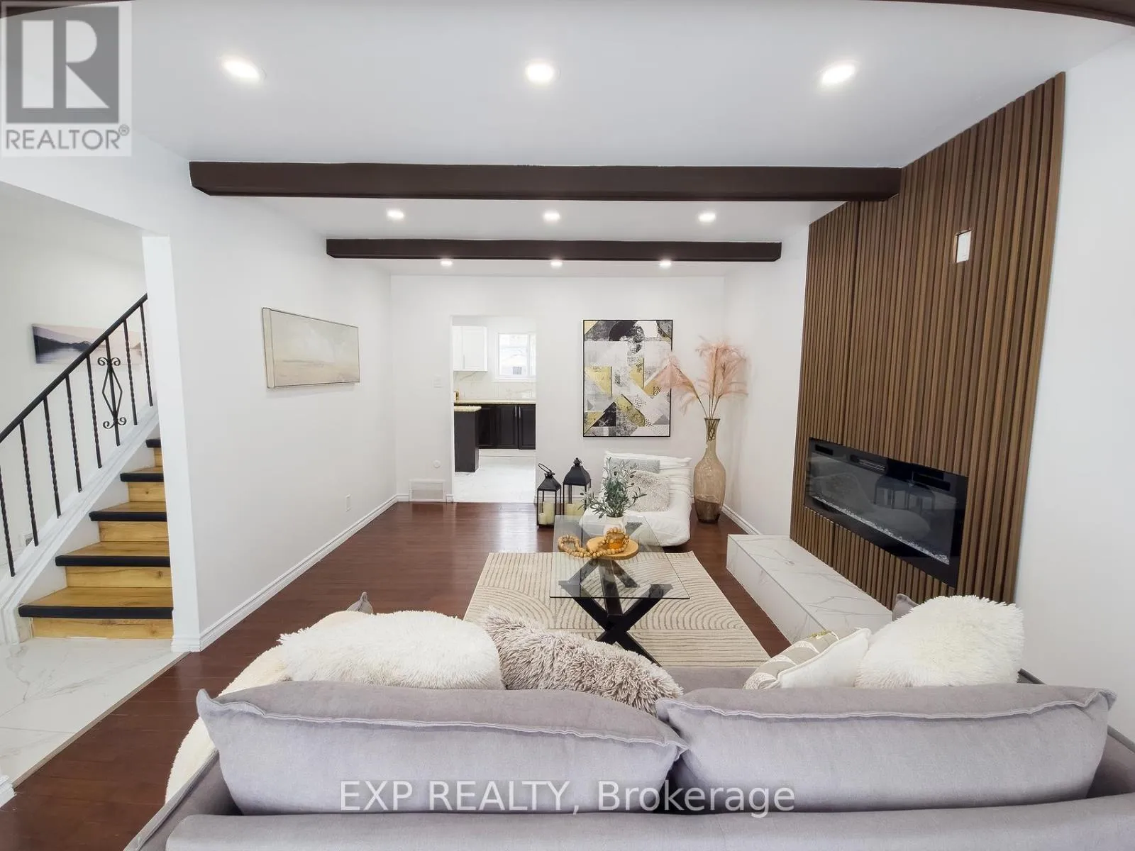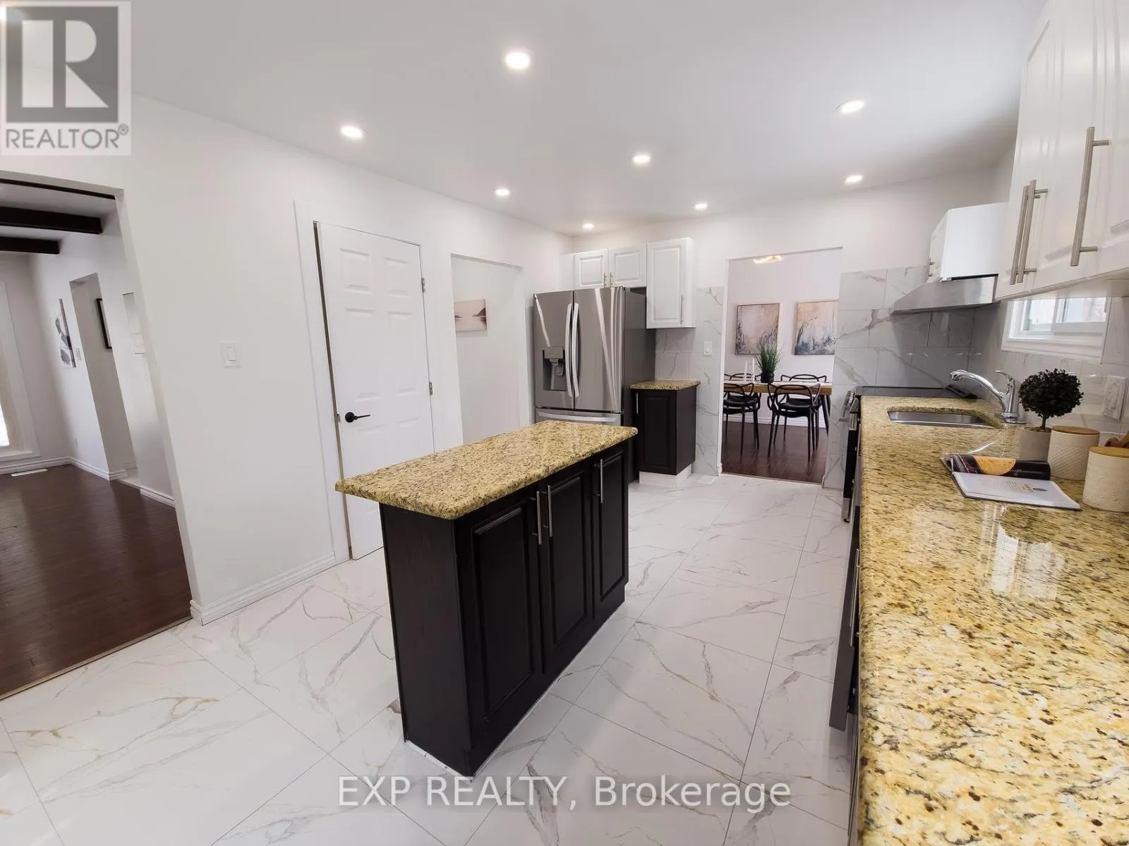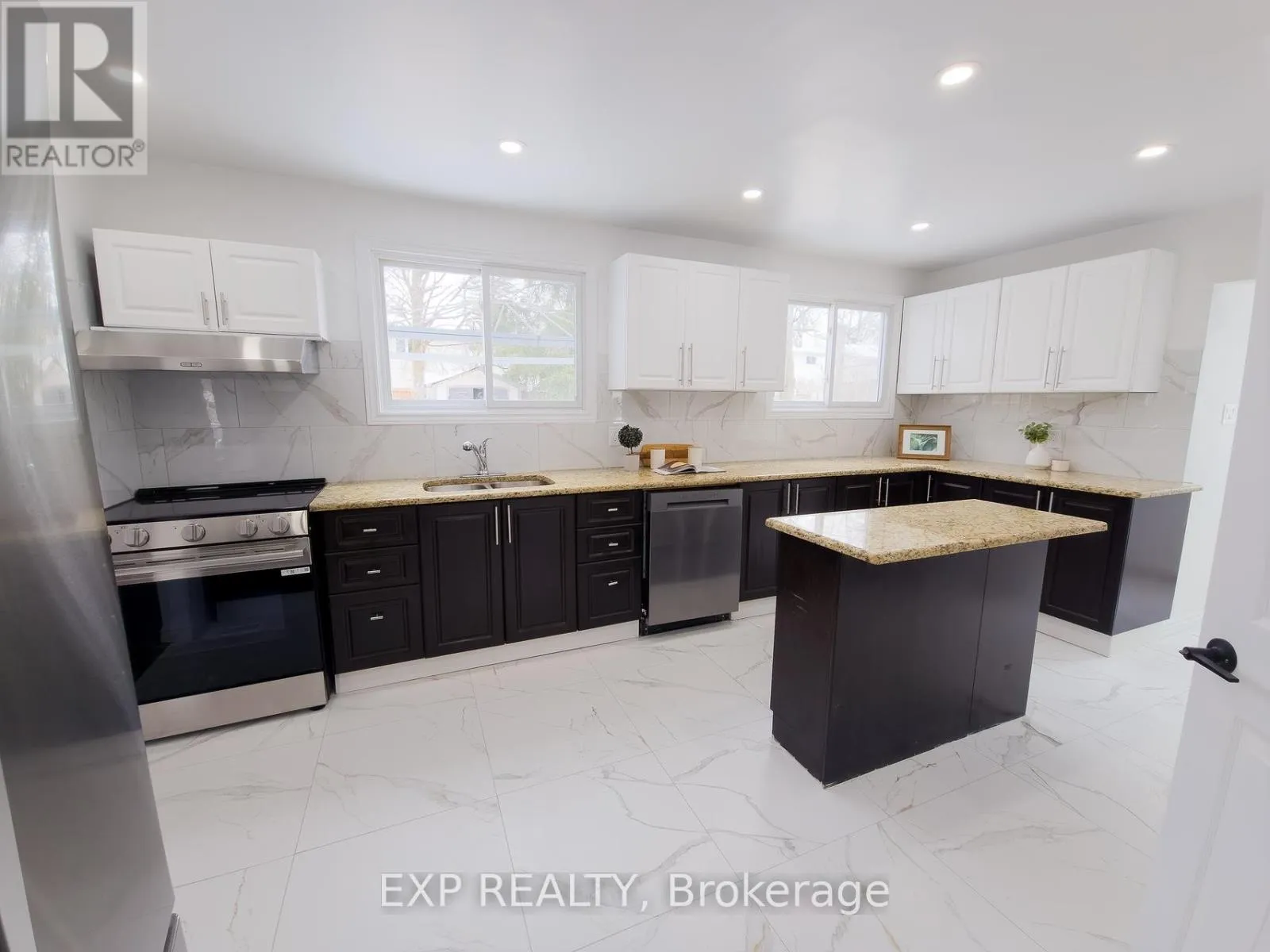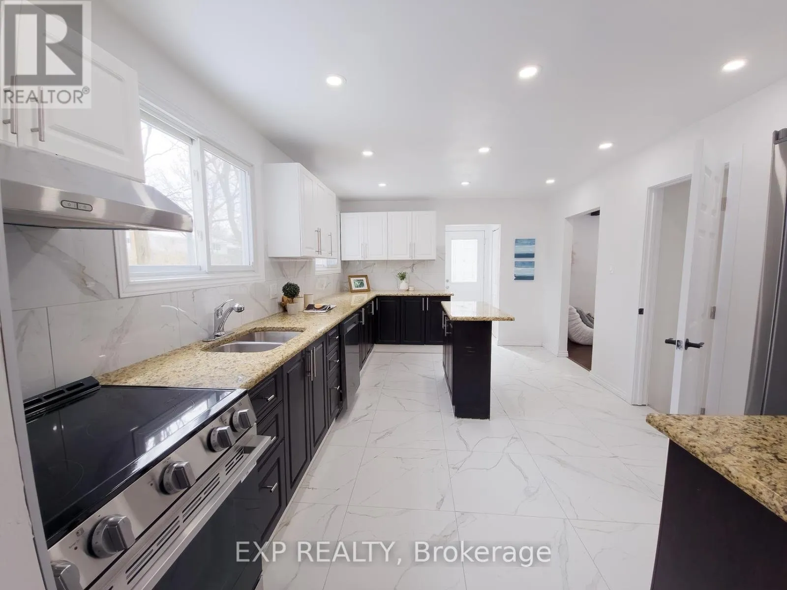 Cross Streets: Bearbrook Rd. ** Directions: Turn right from Centrepark Dr to Bearbrook Rd. The property is on the left side. The Intersection of Nature and Design. Welcome to a residence that defies the standard suburban narrative. Nestled in the protected "Greenbelt Oasis" of Blackburn Hamlet, 59 Bearbrook Rd. is more than a 4-bedroom detached home; it is a masterclass in modern organic design, offering a lifestyle that is increasingly rare in the Ottawa market: a designer-renovated sanctuary just 15 minutes from the city core. From the moment you cross the threshold, the tone is set by a seamless flow of natural light and sophisticated textures. The main living area is anchored by a stunning vertical wood-slat feature wall-a nod to Japandi minimalism-framing a linear fireplace that serves as the home's emotional heart. Dark hardwood floors provide a rich contrast to the crisp, gallery-white walls, leading you into a dining space designed for lingering conversations and views of the mature greenery outside. The kitchen is a chef's dream, executed with a "Tuxedo" palette of deep charcoal cabinetry and brilliant white uppers. Oversized porcelain tile flooring meets expansive granite countertops, punctuated by a central island that acts as a natural gathering point for morning coffee or evening hors d'oeuvres. With high-end stainless steel appliances and double-wide windows overlooking the backyard, this is a space where function and form live in perfect harmony. (id:27476)