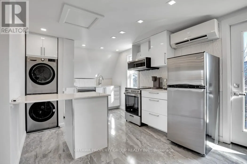 Cross Streets: Lees Ave. ** Directions: 417 East Bound exit lees Ave. Turn right at stop sign. Second street on left. Or Main ave North or South bound to Lees Ave. Head East to Concord St. Make right turn. Build on left at corner. This 3rd floor open concept bachelor apartment blends classic charm with contemporary style. Ideal foe executive or professional students. This stunning open-concept welcomes you with its elegant Hardwood Floors. 9ft ceilings, Abundance of natural light and tasteful modern artwork. This init is fully equipped kitchen with stainless steel appliances. In unit full size laundry. This unit also has an out door patio and access to a ground level patio. One parking spot is available. Wifi, Heat, Hydro and Water included. Fully Furnished!! (id:27476)