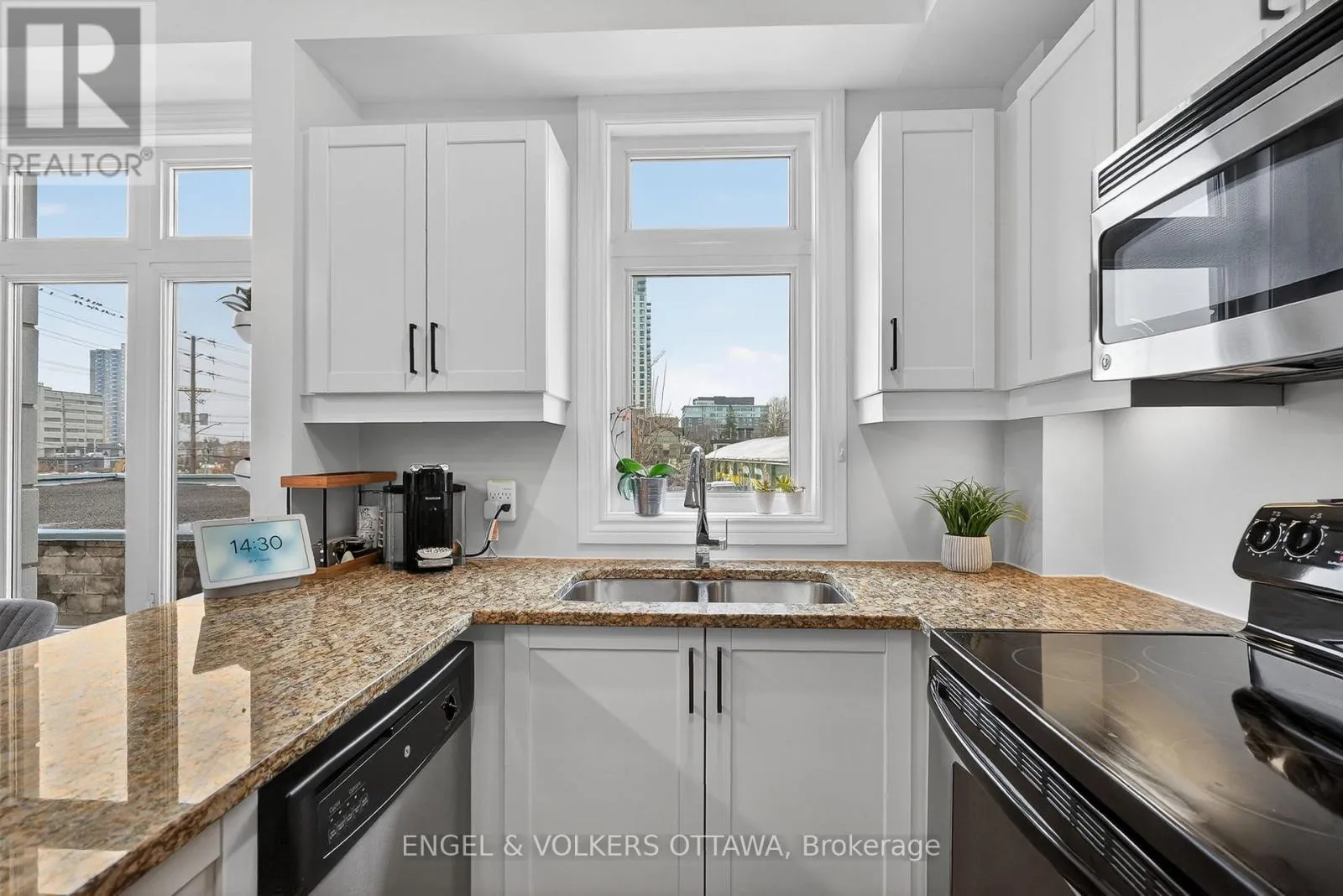 Cross Streets: Scott St and Winona Ave. ** Directions: From Scott St, North of Winona Avc, Property on your left. Elegant and modern 2-bedroom, 2-full bathroom condo in the heart of vibrant Westboro Village. This spacious corner unit offers an exceptional layout with a large private terrace and expansive windows that fill the space with natural light. A generous foyer with computer nook-welcomes you in, complete with a closet and convenient in-unit laundry. The bright and inviting kitchen features stainless steel appliances, granite countertops, ample prep space, and an extended peninsula overlooking the open-concept living and dining area-perfect for entertaining. The bright living space opens to the terrace through patio doors. The primary bedroom includes direct terrace access, a large triple-pane window, walk-through closet, and a luxurious 5-piece ensuite with double sinks, soaker tub, and separate shower. This well-appointed building offers a rooftop terrace and fitness centre. Ideally located just steps to transit and the future LRT, and within walking distance to shopping, restaurants, coffee shops and more -urban living at its finest. (id:27476)
