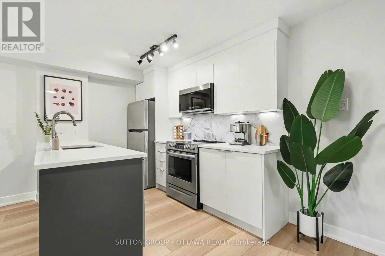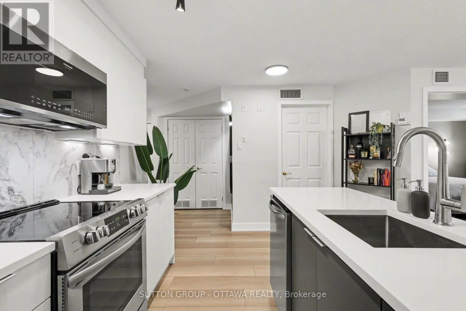 Cross Streets: Kent St. ** Directions: Kent Street to Somerset Street W. OPEN HOUSE: Saturday April 4th, 2-4PM. Some of the best condos in Centretown are hidden gems. Welcome to Unit 703 at The Strand. Step inside and you'll find one of the most thoughtfully renovated 1-bedroom condos downtown - a fully transformed space with value that is hard to beat. The kitchen was redesigned in 2021: enlarged storage, floor-to-ceiling white flat-panel cabinetry, quartz countertops, porcelain backsplash, a striking dark island with built-in dishwasher, and a full suite of stainless appliances. Wide-plank premium flooring (2021) runs seamlessly throughout, and the bathroom features a refreshed vanity with quartz countertop. This is not a cosmetic refresh it's a genuine, high-quality renovation. At 715 sq ft, the open-concept layout is one of the larger 1-bedroom footprints you'll find downtown, with room for a proper dining table, a full living room setup, and a private balcony. The bedroom stretches nearly 15 feet, offering plenty of room for a dedicated home office setup. The unit also includes underground parking and a storage locker - many comparable listings in this price range simply don't offer. Condo fees of $466/month cover heat, cooling, and water - among the most competitive you'll find downtown. What you get with those fees: a BBQ courtyard, bike storage, car wash area, party room, and nine visitor parking spaces. The building has also been actively investing in infrastructure: new HVAC (2021), upgraded entrance (2025), new entry system (2026), garage improvements (target April 2026), and elevator modernization (target Fall 2026). Located at Somerset and Kent in the heart of Centretown, you're steps from a grocery store, Bank Street restaurants and cafés, the Rideau Canal, and the Glebe. Lyon LRT is a short walk away.An exceptional opportunity for first-time buyers, professionals, or investors who want a move-in-ready downtown condo with real upgrades, real space, and real value. (id:27476)
