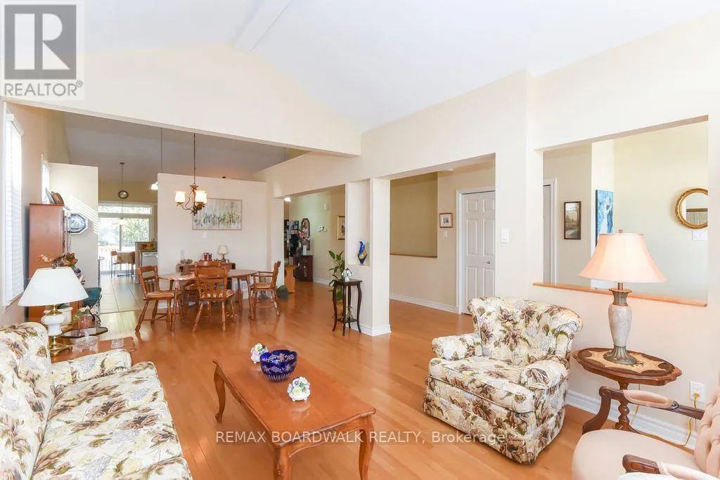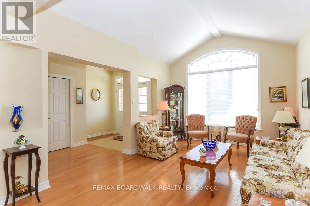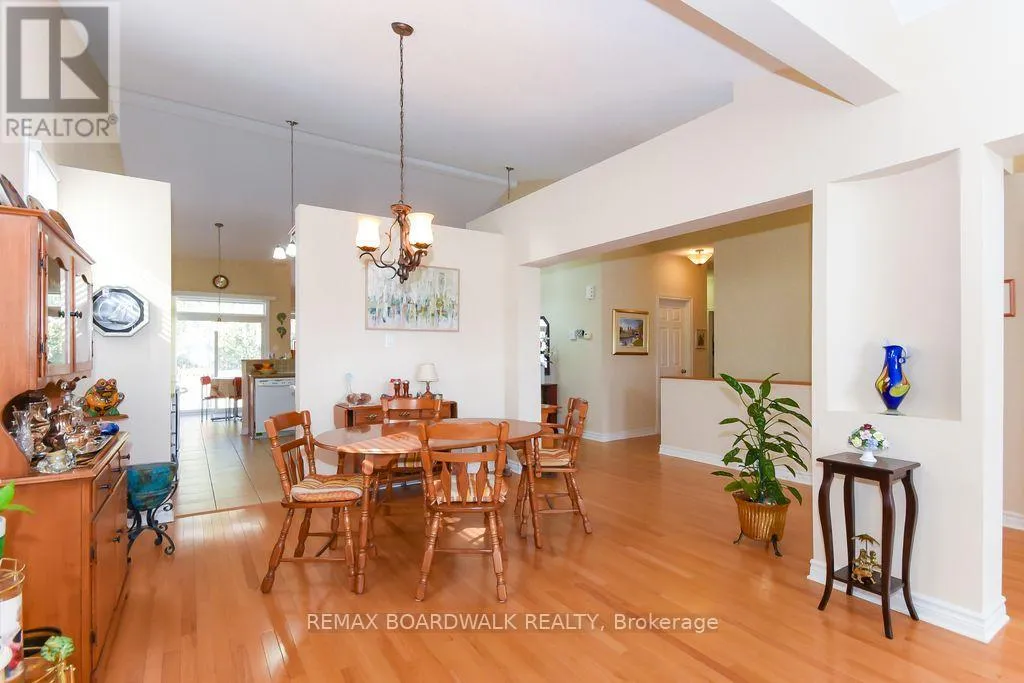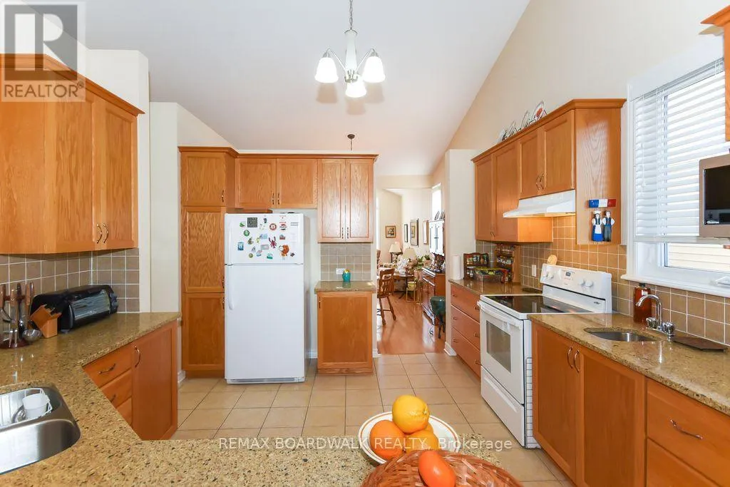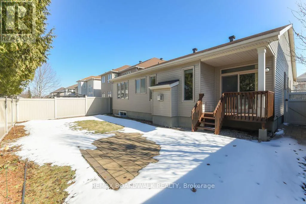 Cross Streets: Provence. ** Directions: Provence Avenue to Plainhill Drive to Mickelberry Crescent. Built by Richcraft, the modified Havenstone model will definitely impress you with it's cathedral ceilings, openness throughout the main living space and the natural lighting. Approximately 2,000 square feet on main level. 3 good size bedrooms with lots of closet space on the main floor. The gourmet kitchen offers lots of granite counter space, generous amounts of cupboards and includes the refrigerator, the stove and the dishwasher. Large breakfast area with patio doors to the private back yard with interlocking patio. The Great room offers an impressive mantle with gas burning fireplace, windows and lots of space. The main floor laundry area has access to the garage and closet. The living and dining rooms will definitely impress the most discriminating of all guests. Gleaming hardwood flooring throughout the main floor + staircase to the unspoiled lower level. Tile flooring in bathrooms, kitchen, foyer area + entrance to garage. This home truly shows pride of ownership throughout. Curb appeal with it's front covered front porch and beautiful interlocking driveway. Quiet street. Parks nearby. View photos for details. As per form 244: 24 hours irrevocable on all offers submitted (no exceptions). PVC fencing. 50 feet wide lot makes a beautiful sized back yard. Covered back porch. *Lawn maintenance service included for 2026 season (weekly care/fertilizing). (id:27476)