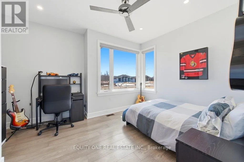 Cross Streets: Lakewood Trail & Shoreway. ** Directions: Mitch Owens to Old Prescott to Lakewood Trail to Shoreway. Welcome to this spectacular 4+1 bedroom, 4 bathroom bungalow in the highly sought-after Lakewood Trails community of Greely where modern luxury meets peaceful estate living. Built by Mackie Homes, this beautifully designed residence offers exceptional craftsmanship, thoughtful upgrades, and an ideal layout. The main level features a bright, open-concept design anchored by a stunning great room with a cozy natural gas fireplace, seamlessly flowing into a designer kitchen with quality cabinetry, stone countertops, and generous prep space ~ perfect for hosting family and friends. Designed for privacy, the primary suite is set on one side of the home, offering a peaceful retreat complete with his & hers walk-in closets and a luxurious ensuite featuring a freestanding soaker tub, glass shower, and heated floors. On the opposite side of the home, you'll find three additional well-sized bedrooms and a full bathroom-ideal for family living or guests. A spacious mudroom with built-in cabinetry provides excellent everyday storage and organization, while the main floor laundry room adds convenience and functionality.The fully finished lower level expands your living space with a large recreation area, dedicated exercise space, additional bedroom, and full bathroom. A separate theatre room with a second gas fireplace creates the perfect setting for movie nights and entertaining ~ ideal for multi-generational living or a private retreat. Car enthusiasts and families alike will appreciate the heated oversized 3-car garage, complete with built-in shelving for storage and direct access to the basement ~ an incredibly practical feature. Storage is abundant throughout the home, making it easy to stay organized and clutter-free. Outside, enjoy a beautifully landscaped backyard, rear patio, and upgraded exterior featuring stone and brick finishes, all set within one of Greely's most desirable communities featuring a community rec centre, pool and gym. Association fee of $350/year. (id:27476)
