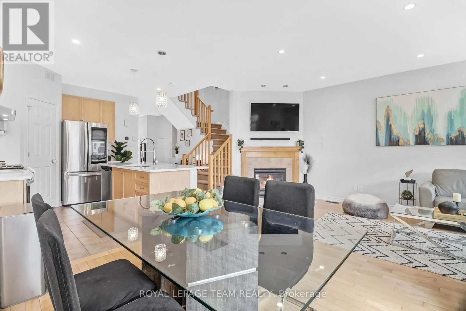 Cross Streets: Mikana Rd./Kelly Farm Dr. ** Directions: From Bank St. turn onto Mikana Rd. then turn right onto Kelly Farm Dr. property will be on the right side. Welcome to this rare end-unit townhome in the highly sought-after community of Findlay Creek, offering three bedrooms and a private driveway. Ideally located close to schools, parks, transit, recreation, and everyday amenities, this home seamlessly blends comfort with convenience. Inside, a bright and open-concept layout welcomes you with an inviting foyer and a convenient two-piece powder room, while expansive windows bathe the space in natural light. The main level features soaring ceilings, rich hardwood flooring, and a cozy gas fireplace, creating a warm and inviting atmosphere for both everyday living and entertaining. The beautifully designed kitchen showcases stainless steel appliances, quartz countertops, a contemporary backsplash, and a spacious walk-in pantry-perfectly balancing style and functionality. Step outside to a private, low-maintenance backyard retreat complete with a gazebo, interlock patio, deck, and a gas line for barbecuing-ideal for effortless outdoor enjoyment. Upstairs, you'll find three generously sized bedrooms with ample storage. The primary suite offers a walk-in closet and a luxurious four-piece ensuite featuring a soaker tub and separate shower. A convenient second-floor laundry area enhances daily living. The finished basement extends the living space, providing a versatile area ideal for a recreation room, home gym, or family lounge. This home is a treasure not often found. Reserve your private showing before someone else calls it home. (id:27476)
