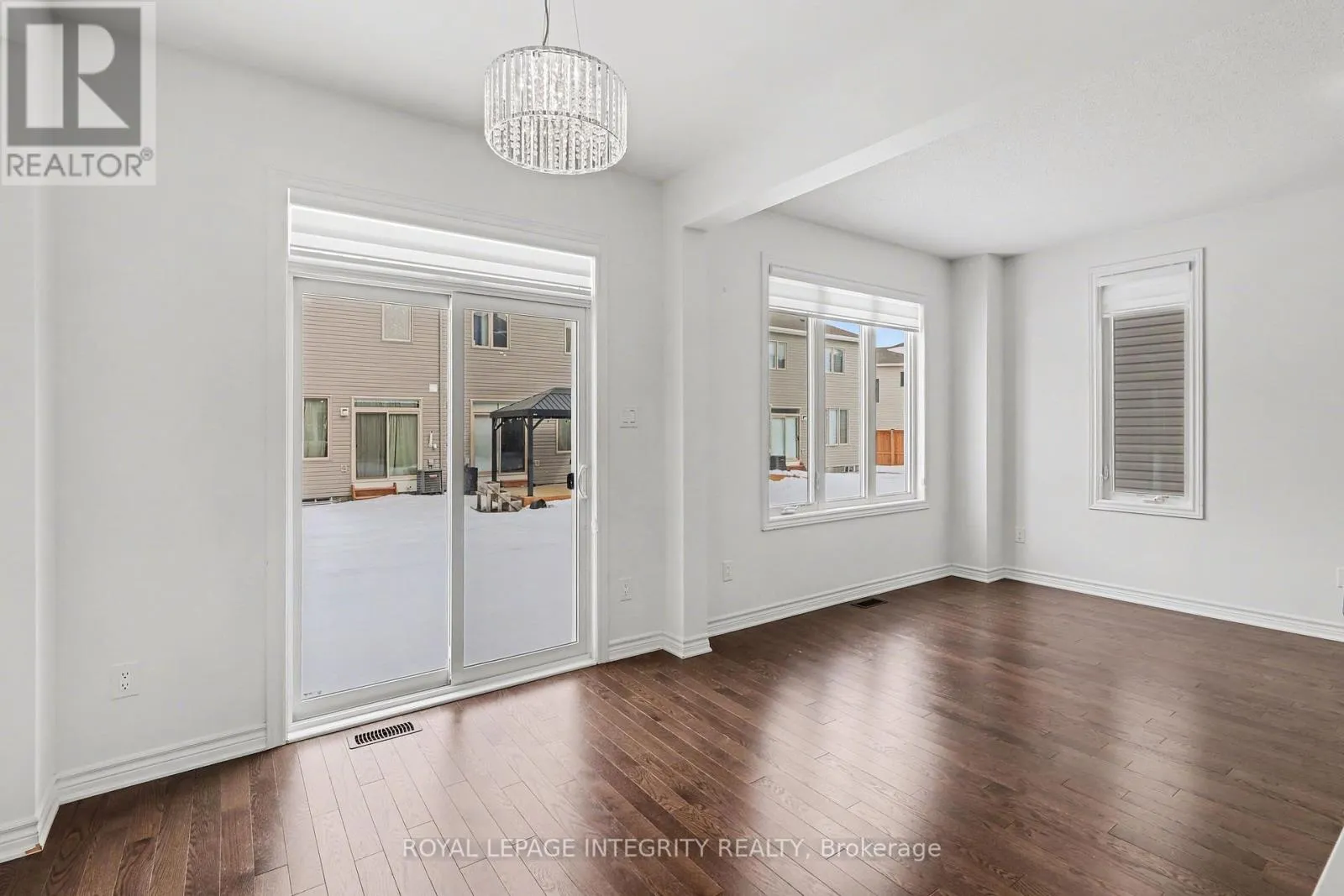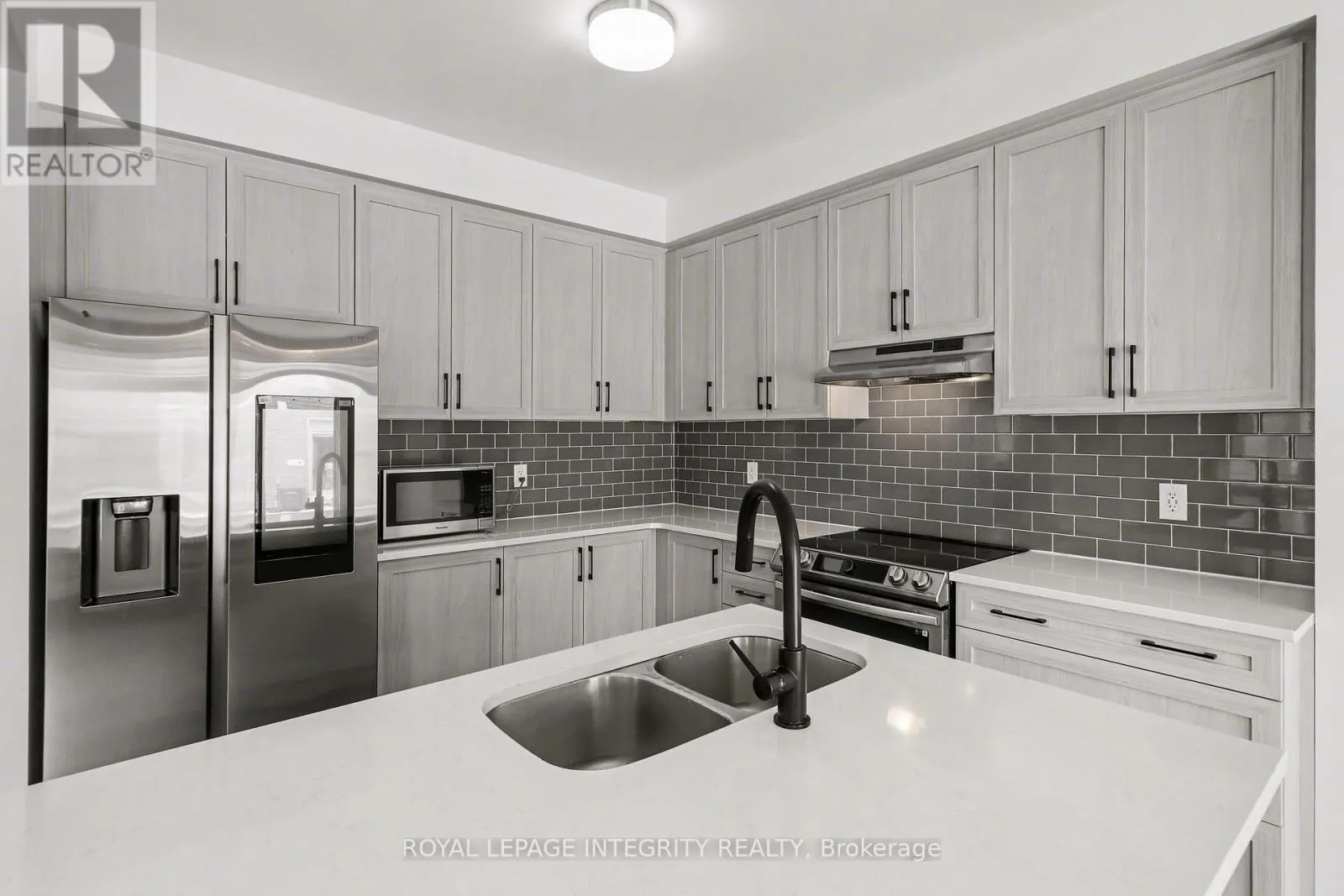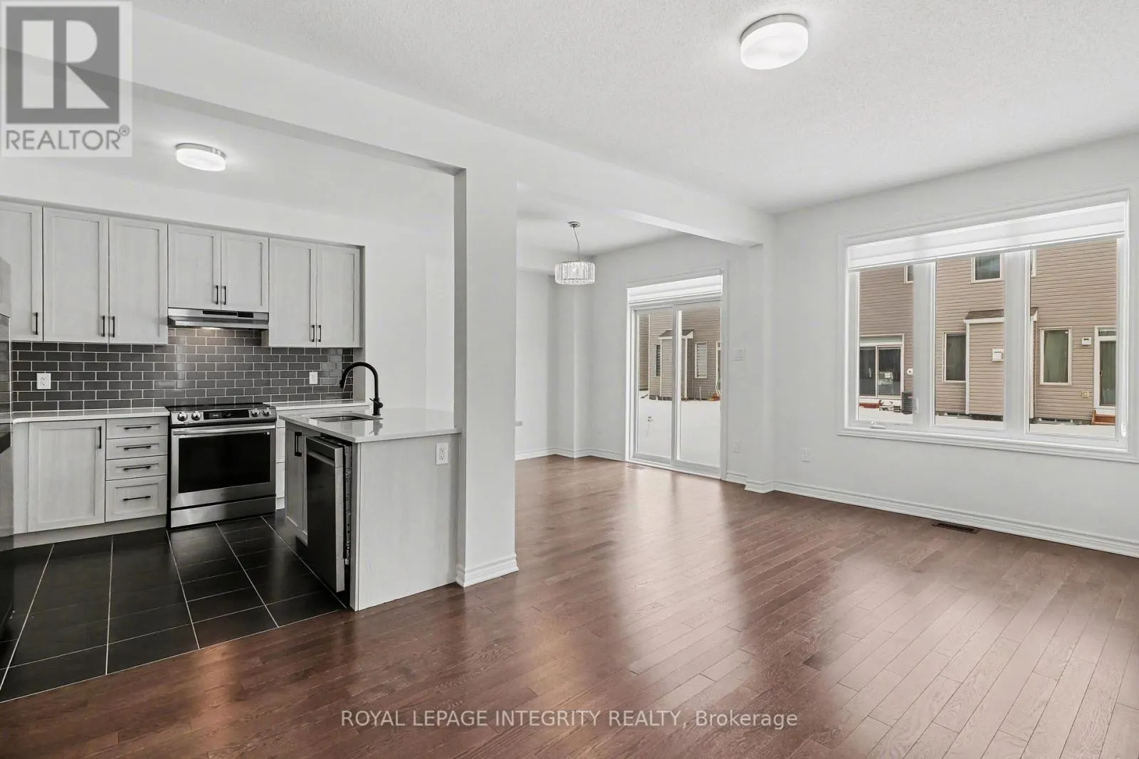 Cross Streets: Flagstaff Dr. ** Directions: Strandherd Drive, South on Borrisokane Road, Left on Cambrian Road, Left on Apolune Street, Left on Flagstaff Drive, Right on Mesa Drive. Welcome to this stunning Glenview Willow End Unit 4-bedroom end-unit townhome offering approximately 2,240 sq. ft. of beautifully designed living space in the highly sought-after Flagstaff community of Barrhaven. The open-concept main floor features 9-foot ceilings, rich hardwood flooring, and oversized windows that fill the home with natural light. The upgraded kitchen is truly the heart of the home, showcasing quartz countertops, stainless steel appliances, extended cabinetry, and a generous center island-perfect for meal preparation, casual dining, and entertaining. The inviting great room flows seamlessly into the dining area, creating the ideal space for gathering with family and friends.One of the standout features of this home is the rare four-bedroom layout on the upper level, offering incredible flexibility for growing families, a home office, or guest accommodations. The spacious primary retreat features a walk-in closet and a luxurious 5-piece ensuite with double vanity, soaker tub, and a separate glass shower. Three additional well-sized bedrooms-one with its own walk-in closet-and a full bathroom complete the upper level.The finished basement adds even more functional living space with a large family room, laundry area, bathroom rough-in, and plenty of storage. This perfectly positioned and exceptional home blends space, style, and functionality for modern family living.A charming front porch welcomes you into a bright and spacious foyer. Conveniently located just minutes from Costco, grocery stores, parks, top-rated schools, shopping, and everyday amenities in Barrhaven, and close to the future LRT, this beautifully designed end-unit townhome offers the perfect balance of comfort, convenience, and lifestyle. Don't miss your opportunity to own this spacious, move-in-ready 4-bedroom home in one of Barrhaven's most desirable communities. All measurements are approx.. All offers to include 24 hours irrevocable. (id:27476)