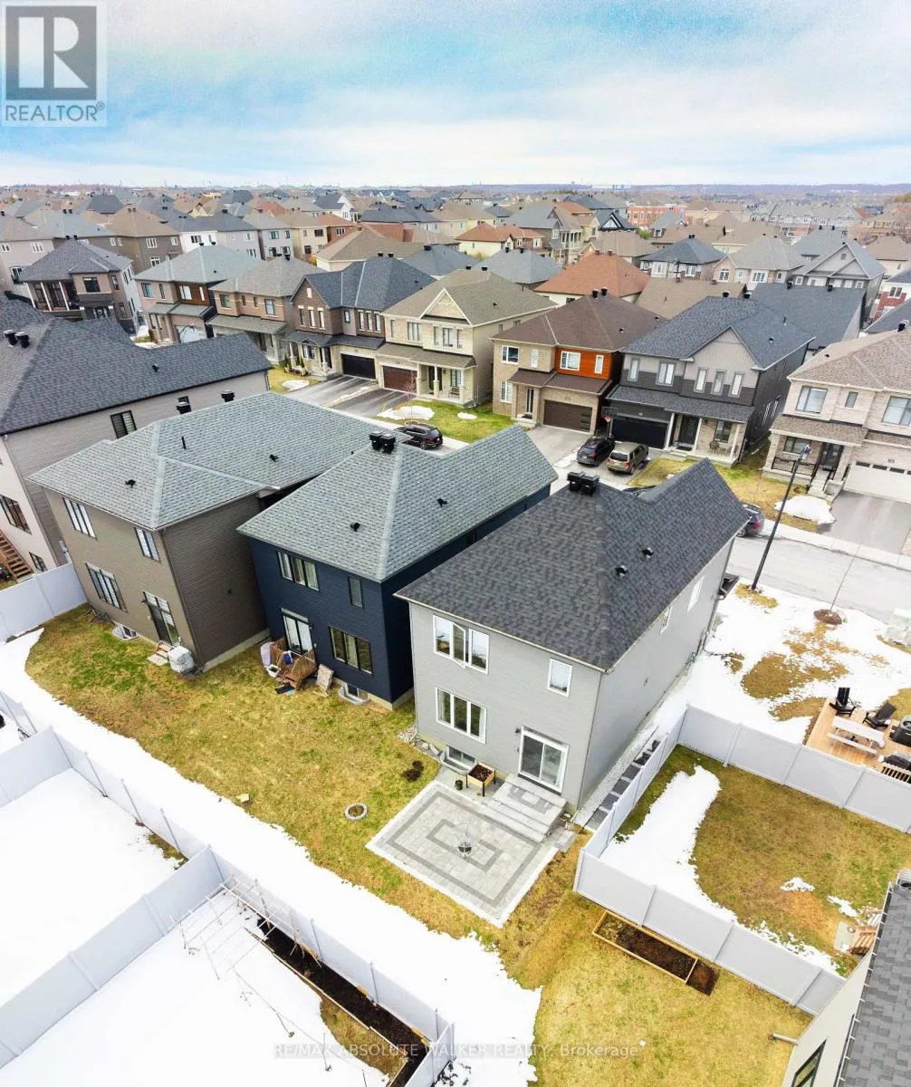 Cappamore Dr, Greenbank Rd Welcome to this beautifully upgraded 2022 home in the sought-after Quinn's Pointe community. The Kinghurst model is one of Minto's most popular models, offering 3+1 bedrooms and 3.5 bathrooms with exceptional finishes throughout. From the moment you step inside, you'll notice the upgraded engineered hardwood flooring, smooth ceilings, smart home features, and modern pot lights that create a warm and contemporary atmosphere. The kitchen is enhanced with upgraded tile finishes, while the second floor features upgraded nine-foot ceilings and oversized windows that flood the space with natural light. A versatile flex room upstairs provides the perfect space for a home office or den and is already roughed-in for a washer and dryer, offering the option for convenient upper-level laundry. The second level also showcases brand-new laminate flooring throughout, with new carpet in one bedroom for added comfort. The fully finished basement expands your living space with an additional bedroom and a full bathroom featuring a sleek glass shower, ideal for multigenerational living or potential income. The living room is anchored by a cozy natural gas fireplace, complemented by custom windows in both the living room and upstairs hallway that further enhance natural light, while zebra blinds throughout the home add both style and privacy. Step outside to professionally completed interlock stonework in the front, backyard, and side yard, along with extended outdoor space and additional landscaping, perfect for relaxing or entertaining. This home truly combines modern upgrades, thoughtful design, and incredible versatility in one of Barrhaven's most desirable neighbourhoods. (id:27476)