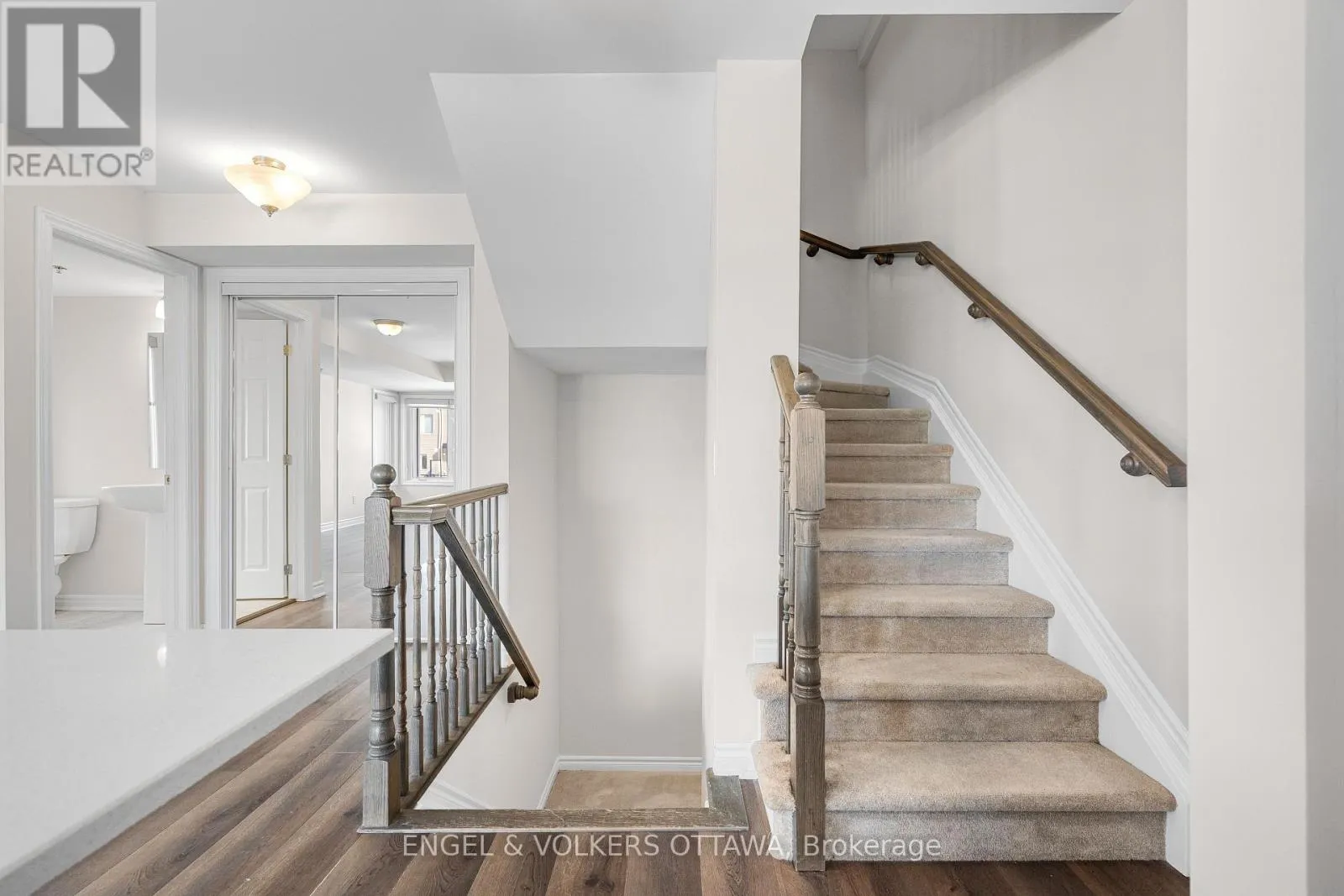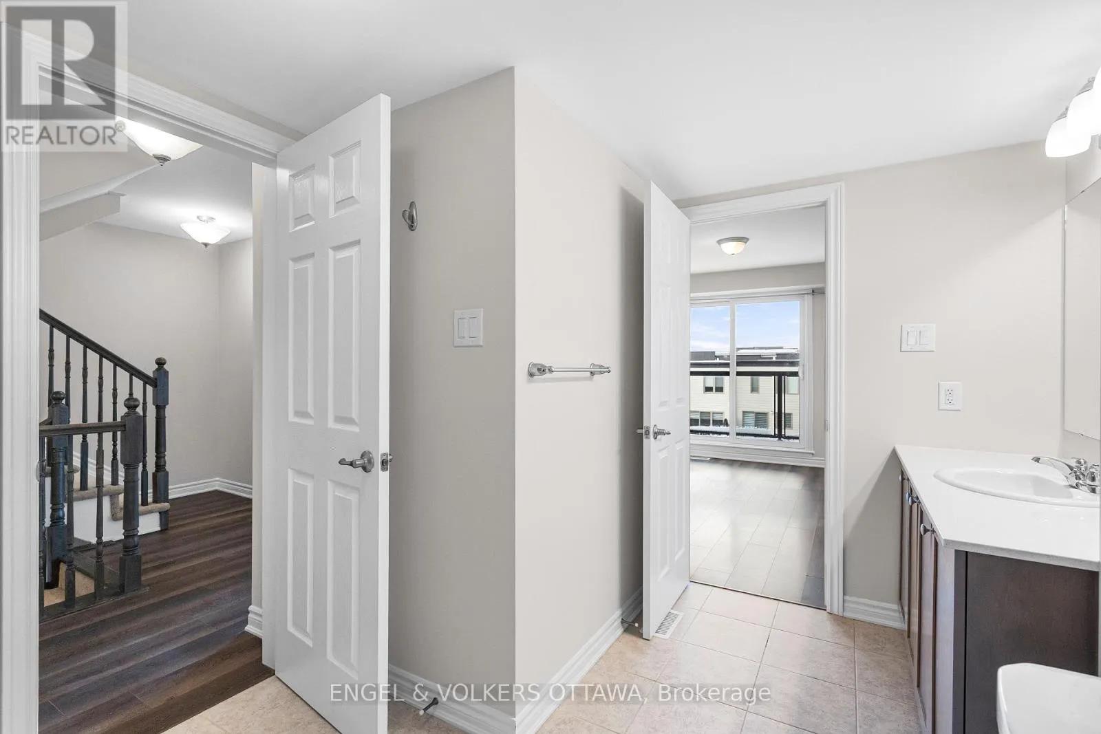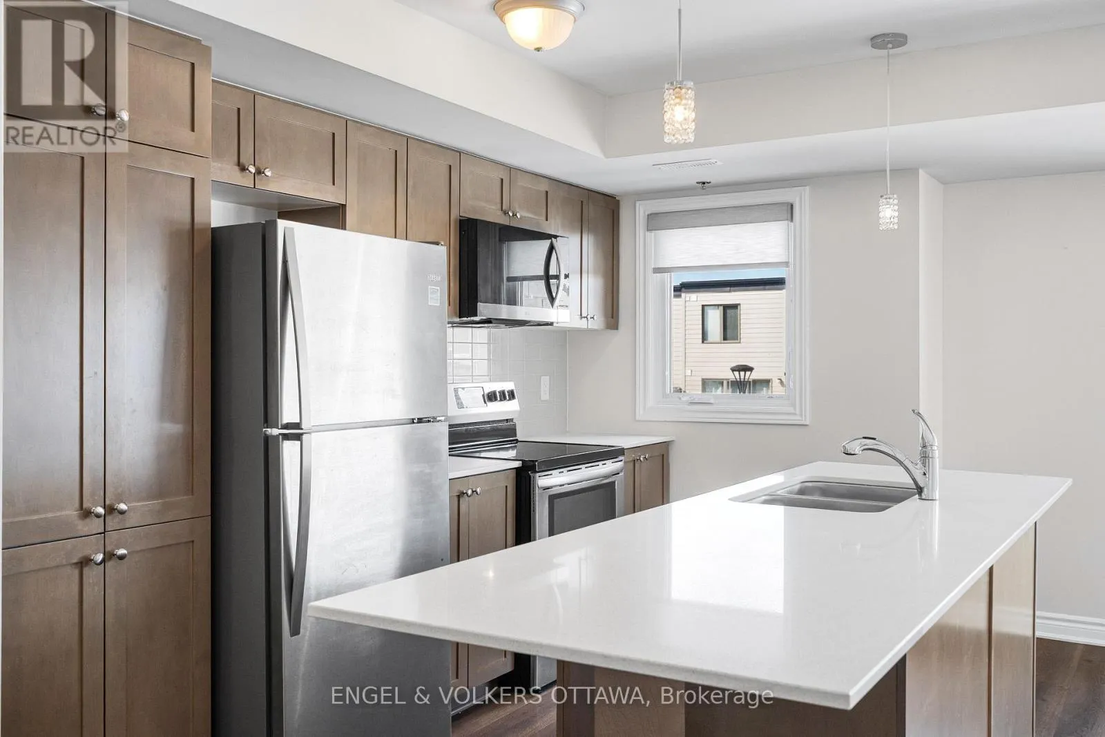 Cross Streets: Montréal Rd. & Aviation Pkwy. ** Directions: From Montréal Rd. North on Codd's Rd. Turn right onto Mikinak Rd. Left Moses Tennisco St. Right onto Miskwa Pvt. Left onto Ozawa Pvt. Welcome to Wateridge Village - where contemporary design meets a vibrant and growing community. This Mattamy Haydon model end-unit townhome distinguishes itself with a thoughtfully designed layout, enhanced privacy, and an abundance of natural light throughout.The heart of the home unfolds on the second level, where an open-concept living space is both functional and inviting. Expansive, sun-filled windows create a bright and airy atmosphere, while the seamless flow between the kitchen, dining, and living areas makes everyday living and entertaining effortless. The kitchen is anchored by a generous centre island with seating-perfect for casual meals, morning coffee, or gathering with guests-along with the added convenience of a powder room on this level. Upstairs, two well-proportioned bedrooms offer comfort and privacy. The primary bedroom benefits from a cheater ensuite to the sleek, modern full bath, and the inclusion of upper-level laundry adds to the home's practical, well-considered design. A true highlight is the private rooftop terrace-an exceptional outdoor retreat perfect for morning coffee, evening unwinding, or hosting friends under the summer sky. (id:27476)
