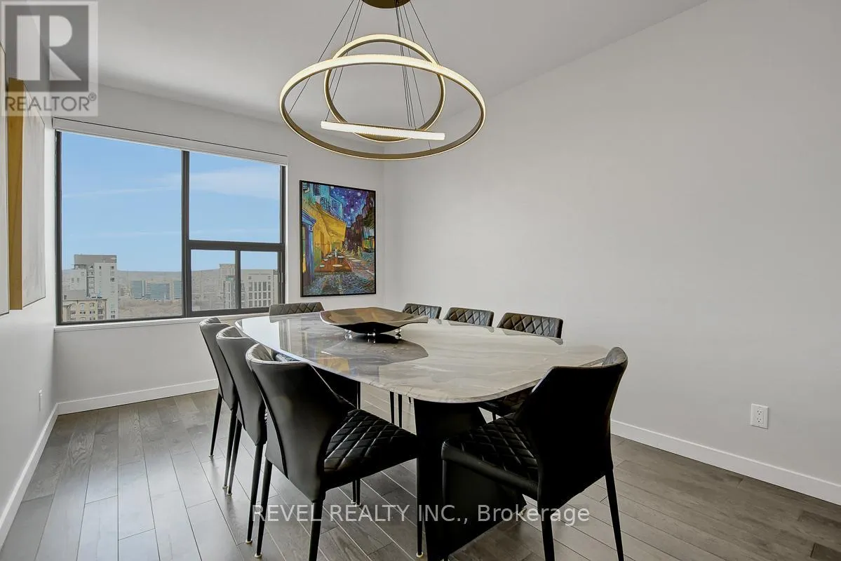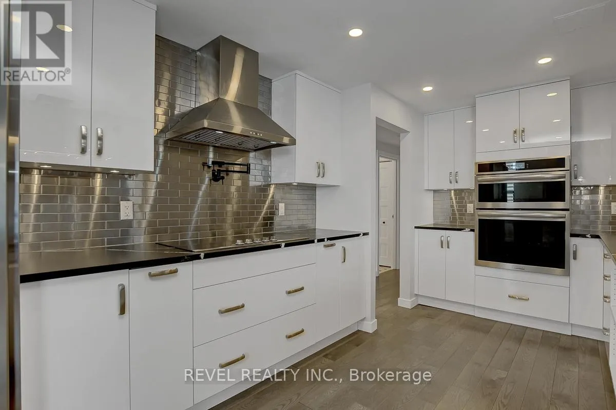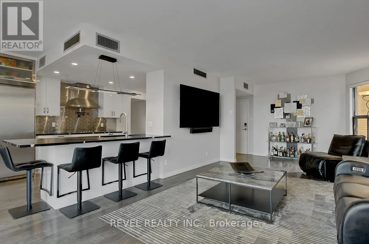 Cross Streets: Laurier Ave & Percy St. ** Directions: Percy St to Laurier Ave. Welcome to a truly exceptional residence in the heart of downtown. This stunning 2-storey condo offers a rare "townhouse in the sky" experience, combining the spaciousness and privacy of a traditional home with the convenience and prestige of a luxury condo. Thoughtfully designed and extensively renovated, this 1880 square foot, 3-bedroom, 2.5-bathroom home showcases over $270,000 in high-end upgrades completed in recent years. Every detail has been carefully curated to deliver a refined, modern aesthetic paired with functional elegance. The main level features a completely reimagined open-concept layout, anchored by a breathtaking kitchen renovated in 2023. Designed for both everyday living and entertaining, the kitchen boasts a professional chef's level of modernity, premium finishes, abundant workspace, and a seamless flow into the expansive living areas. Brand new hardwood flooring (2023), running throughout, adds style and continuity to the space. Large windows and patio door access to the North West facing terrace flood the interior with natural light while framing uninterrupted panoramic views. Newly renovated powder room (2025) and the stately private dining room that could also be a top-notch office complete this level. Downstairs, the private quarters offer three bedrooms, including a luxurious primary retreat. The primary bedroom features its own North West facing private balcony, creating a serene escape where you can unwind while enjoying breathtaking views of the Ottawa River and Gatineau Hills. A massive walk in closet and brand new luxurious ensuite (2025) complete this hotel like getaway. The bright second bedroom is perfect for guests or kids and the comfortable 3bedroom and den provides a great area for office or relaxing. This level also has beautifully renovated family bathroom (2025) and laundry room which house a second private entrance for the unit. (id:27476)
