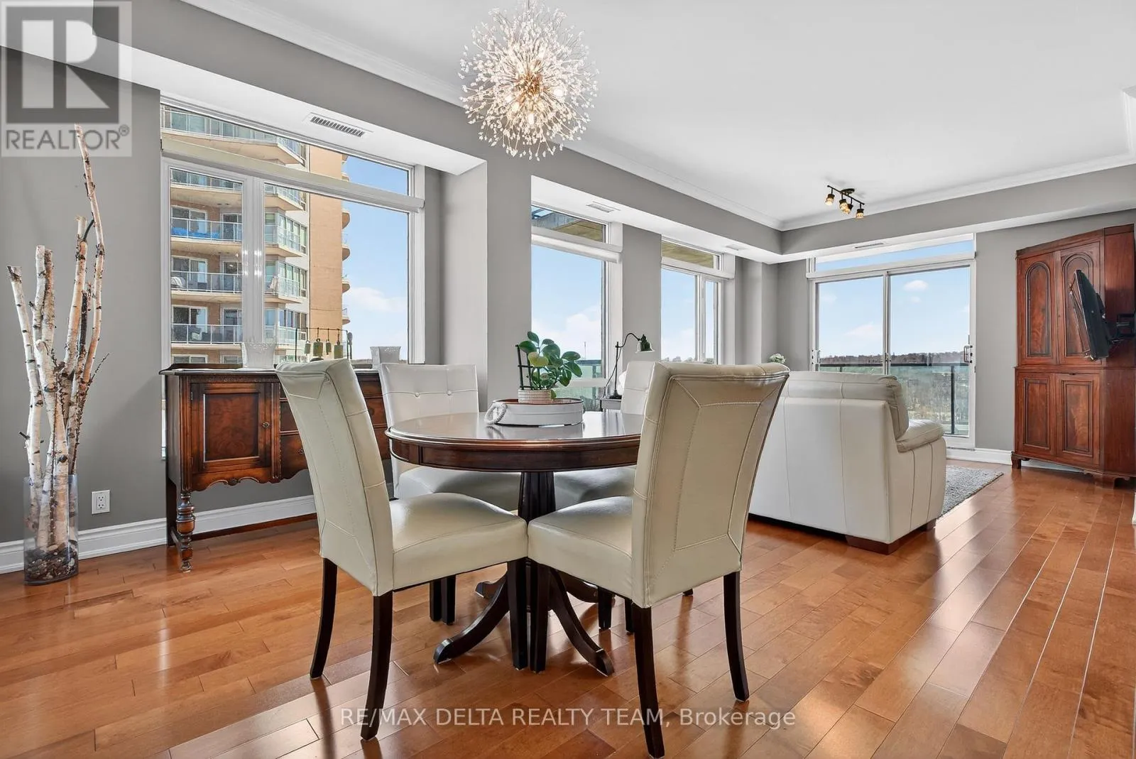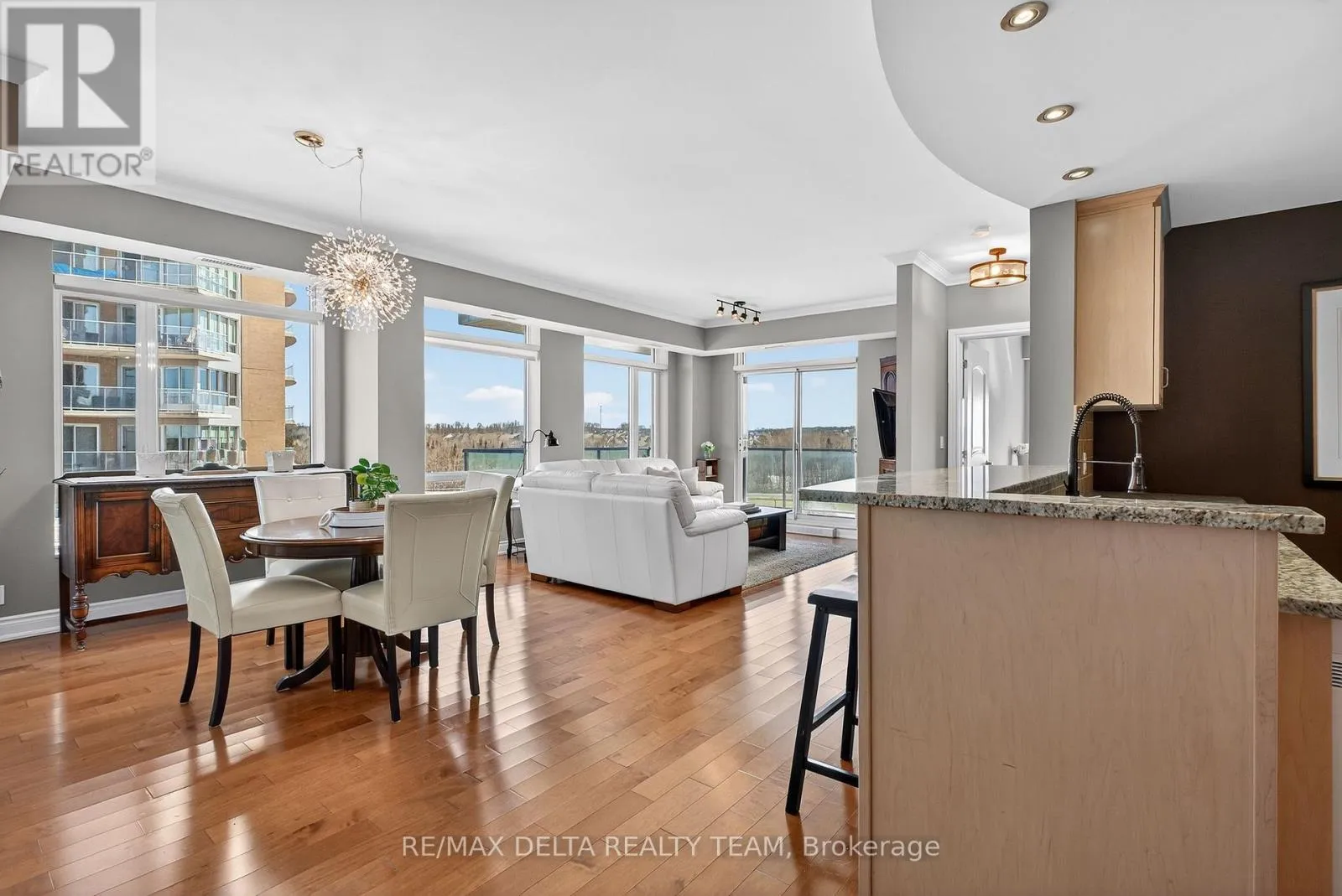 Hwy 174 East to Trim, left on Trim, right on Inlet Private Welcome to Petrie's Landing - where waterfront living meets everyday comfort. This beautifully maintained 2-bedroom, 2 full bathroom condo offers a bright, open-concept layout with abundant natural light and stunning views of the Ottawa River from your private balcony. Meticulously cared for and in true move-in condition, this home showcases genuine pride of ownership throughout. Finished with high-end details, including rich hardwood flooring, granite countertops, and elegant finishes, the space strikes the perfect balance of style and functionality. The kitchen features a breakfast bar, modern backsplash, and ample cabinetry - ideal for both entertaining and daily living. The living and dining areas flow seamlessly, framed by large windows that flood the space with natural light and draw your eye toward the water. Step onto the balcony and take in the river views - a rare and calming backdrop to your everyday life. The primary bedroom offers a custom walk-in closet and a well-appointed ensuite bath with a low barrier glass shower enclosure, while the second bedroom and full bathroom provide flexibility for guests, family, or a home office. A rare bonus: 2 parking spaces (one underground and one above ground handicap space) and 2 storage lockers, adding exceptional value and convenience. Residents enjoy premium amenities including a fitness center, party room, library/lounge, and a beautifully landscaped riverside patio with BBQ area. Located steps to the Ottawa River, scenic trails, and Petrie Island, and just minutes to Place D' Orléans, Hwy 174, and future LRT - this is effortless condo living in one of Orléans' most desirable communities. (id:27476)