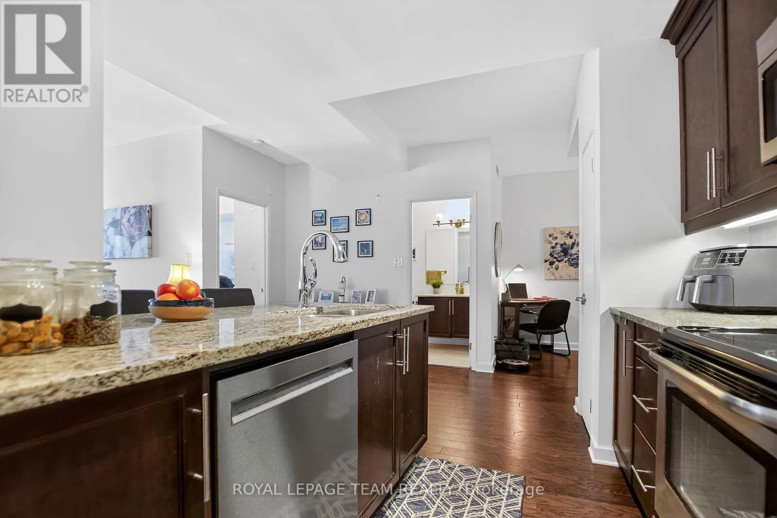 Cross Streets: Tenth Line and St Joseph. ** Directions: St Joseph east to Prestone Dr. Turn left onto Prestone then right onto Centrum Blvd. Building on the south side. Welcome to Celestia Condos in Orleans offering adult oriented living. This lovely, quiet building is located in an amazing location close to the Place d'Orleans Shopping Mall, public transportation, a hop skip and a jump to the Ottawa River, scenic walking/biking trails, Petrie Island, beaches, lots ofshopping options and a quick easy access to the 174. This bright, open concept, almost 1100 sq ft corner unit boasts 2 bedrooms, 2 full bathrooms, a bonus den/office area and lots of living space. From the moment you walk in the welcoming foyer with loads of room for all of your guests to take off their shoes and get comfortable, to the well appointed kitchen with granite counters, lots of counter and storage space, a breakfast bar plus an eating/dining area just adjacent to the kitchen this unit is sure to impress. The spacious, comfortable living room is the perfect space to get settled in for your favorite show or movie and leads you to the patio area. The primary bedroom is your oasis with lots of natural light flowing in, a large closet and ensuite. The second bedroom is a great size and is conveniently located just beside the main full bathroom. Hardwood floors throughout and tile in the bathrooms. The 9 ft ceilings make the space feel even more expansive. In unit laundry with full sized machines. This unit also comes with an extra large storage locker on the same level as the unit close by. The unit comes with one dedicated underground parking space close to the entrance. The building has a wonderful party room with library area and is a great space for social functions and to meet your neighbours. The fabulous rooftop patio where one can BBQ and enjoy the absolutely stunning views of the Ottawa River and Gatineau Hills. The building comes with lots of visitor parking. Updates to the unit include a new furnace and dishwasher (23) and washer and dryer (20-21). Don't miss this opportunity to become the new owner of this fantastic unit. (id:27476)