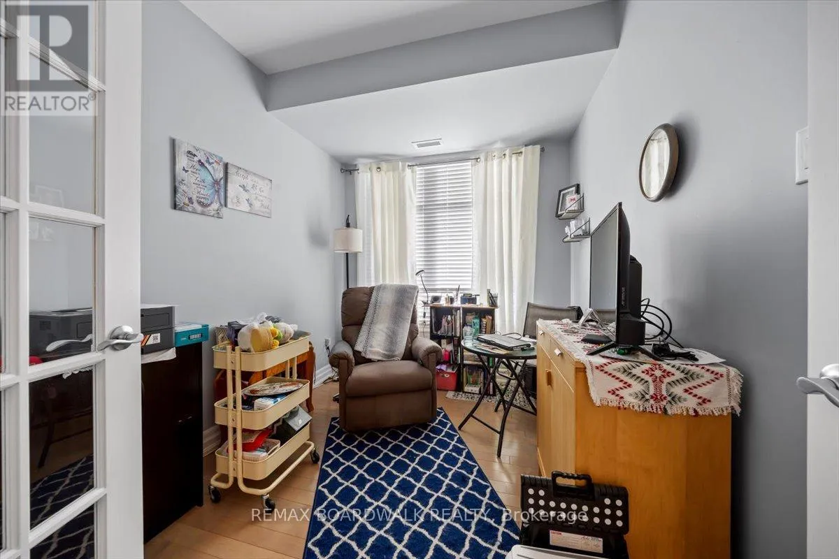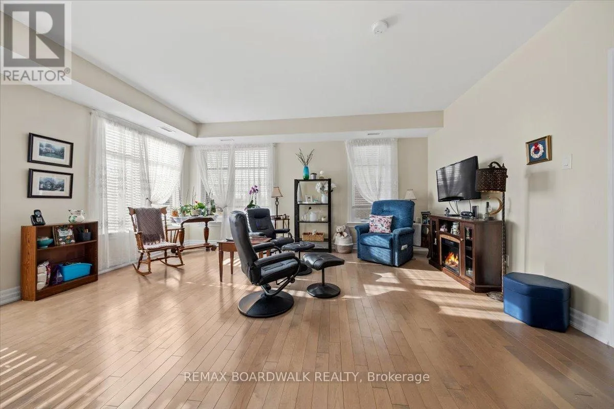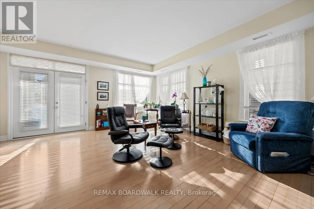 Cross Streets: Bobolink Ridge & Robert Grant Avenue. ** Directions: Fernbank to Robert Grant Avenue, Bobolink Ridge to Janka Private. Experience effortless living in this beautifully maintained 2-bedroom + den Rosewood Condo Flat by EQ Homes, ideally located in the heart of Stittsville. With over 1,300 sq. ft. of single-level living, this bright home features an open-concept layout with abundant natural light and direct access to a private terrace. Quality finishes include maple hardwood flooring, quartz countertops, upgraded cabinetry, smooth ceilings, and a sleek glass en-suite shower. The kitchen offers an island, pantry storage, and stainless steel appliances. The primary bedroom includes a walk-in closet and ensuite, while the second bedroom is conveniently located near a full bathroom. The den is perfect for a home office or extra living space. Additional features include in-unit laundry, central air conditioning, underground parking, and a storage locker. Located in a quiet, well-managed building with ample visitor parking, this home offers a low-maintenance living without compromise. A true standout you won't want to miss! (id:27476)