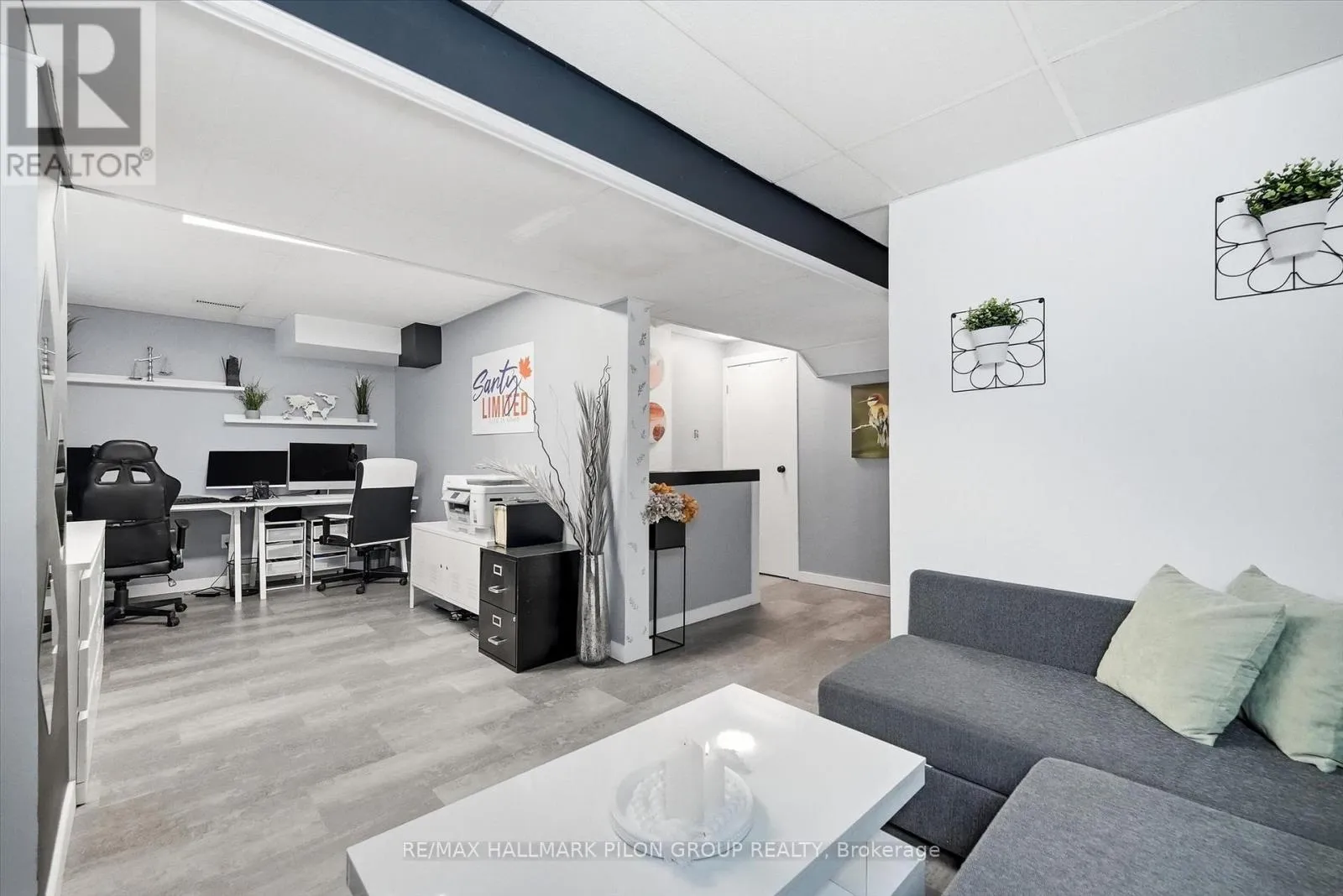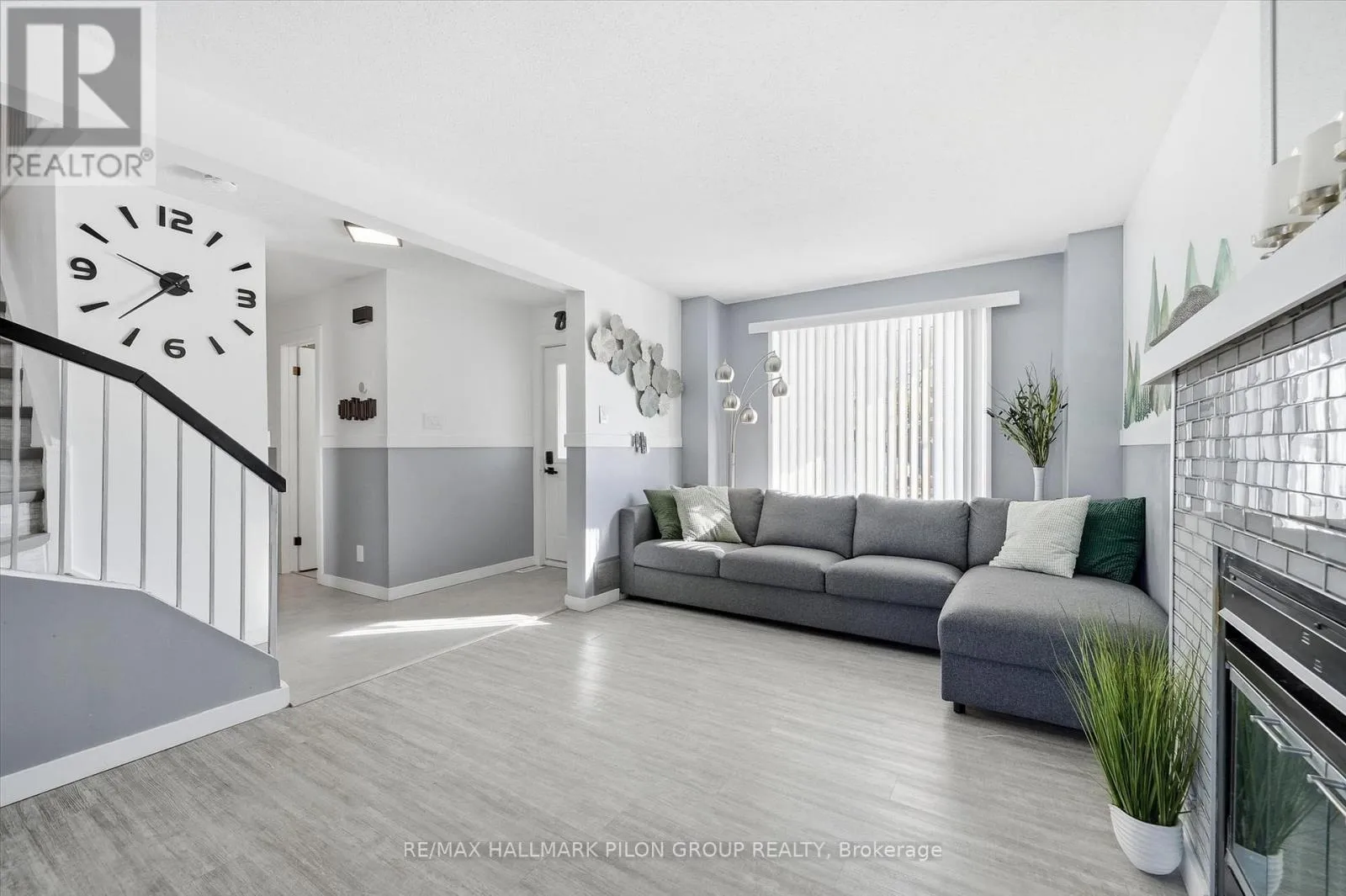 Cross Streets: Prestone / Tompkins. ** Directions: HWY 174 exit south on 10th Line, right on Tompkins, Left on Prestone. Welcome to 1456 Prestone - a beautifully refreshed 3-bedroom, 2-bath home located in a well-established neighbourhood surrounded by mature trees and close to expansive parks and green space. Recently painted throughout and completely carpet-free, this home feels clean, modern, and truly move-in ready.The main level features a bright, stylish galley kitchen with a sleek contemporary finish, generous lower cabinetry, and thoughtful storage and organization features throughout. Brand-new stainless steel appliances complete the space, including a fridge with a convenient built-in water feature. The kitchen flows seamlessly into a warm and inviting living/dining area highlighted by a cozy fireplace - perfect for everyday comfort or entertaining. A convenient powder room completes the main floor. Upstairs, the large primary bedroom offers plenty of closet space and connects directly to the updated full bathroom, with two additional well-sized bedrooms rounding out the upper level. The fully finished basement provides excellent flexibility with two separate living spaces, currently set up as a family room and home office, along with laundry and ample storage. Step outside to enjoy a fully fenced backyard that feels private from rear neighbours, featuring a two-tier deck with railings on the upper level and a garden shed for added convenience - an ideal space for relaxing or hosting outdoors. Ideally located just minutes from schools, transit, shopping, and some of the area's best green spaces, this is a home where all the work has been done and all that's left is to move in and enjoy. (id:27476)