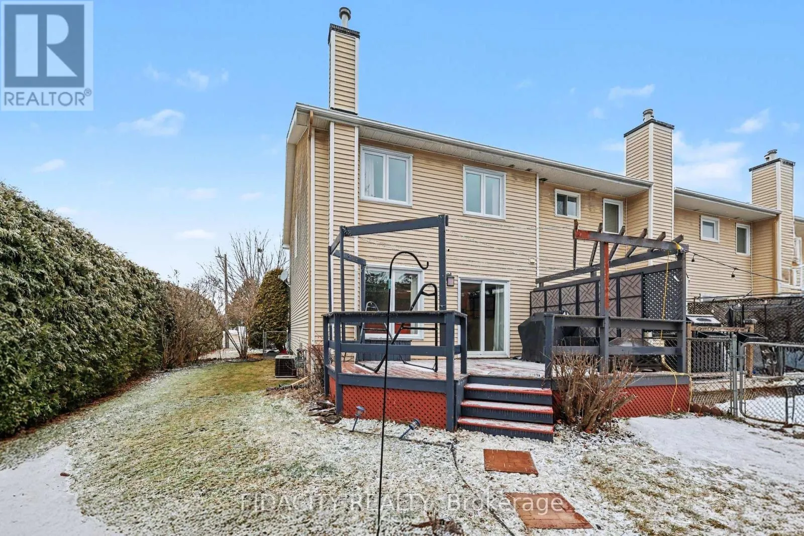 Cross Streets: Abbott St. ** Directions: West on Abbott, right on Amy St, right onto Kathleen. Beautifully updated end-unit townhome set on an oversized corner lot in the heart of Stittsville. Surrounded by mature hedges and trees with no direct rear neighbours, this property offers a level of privacy rarely found in a townhome.Step outside and you're just moments from the Trans Canada Trail, parks, schools, weekend markets, restaurants, shops, and everyday amenities.Inside, the home has been thoughtfully upgraded and filled with natural light thanks to the additional windows an end unit provides. Stunning light-toned flooring runs throughout the main level, creating a bright and modern feel. The kitchen has been beautifully updated with quartz countertops, modern finishes, and a layout that works well for both everyday living and entertaining.Upstairs features three spacious bedrooms, including a large primary suite with views of the private backyard. The primary includes a renovated ensuite and an impressive full wall of closets. The second full bathroom on this level has also been fully updated. The finished basement adds even more living space with a comfortable family room, along with laundry and plenty of storage.Out back is where this home truly stands out. The backyard is exceptionally private with beautiful gardens, decks, gazebo and mature landscaping. It's rare to find a townhome with outdoor space like this. (id:27476)