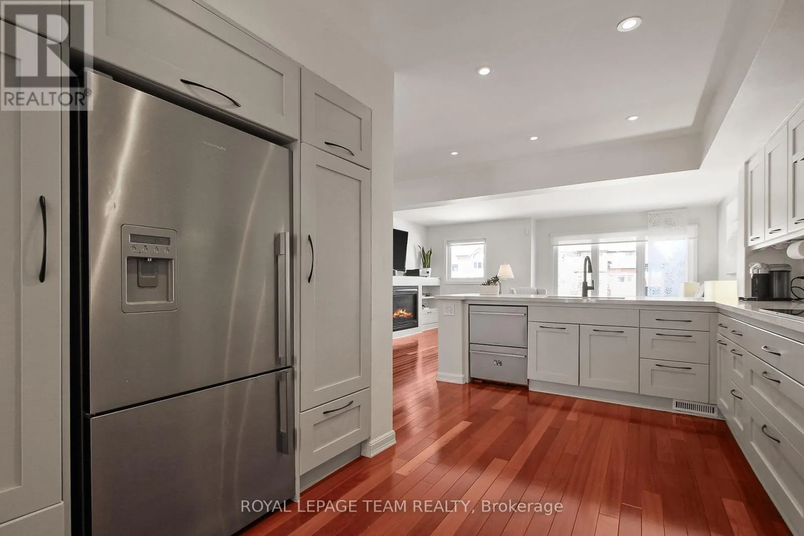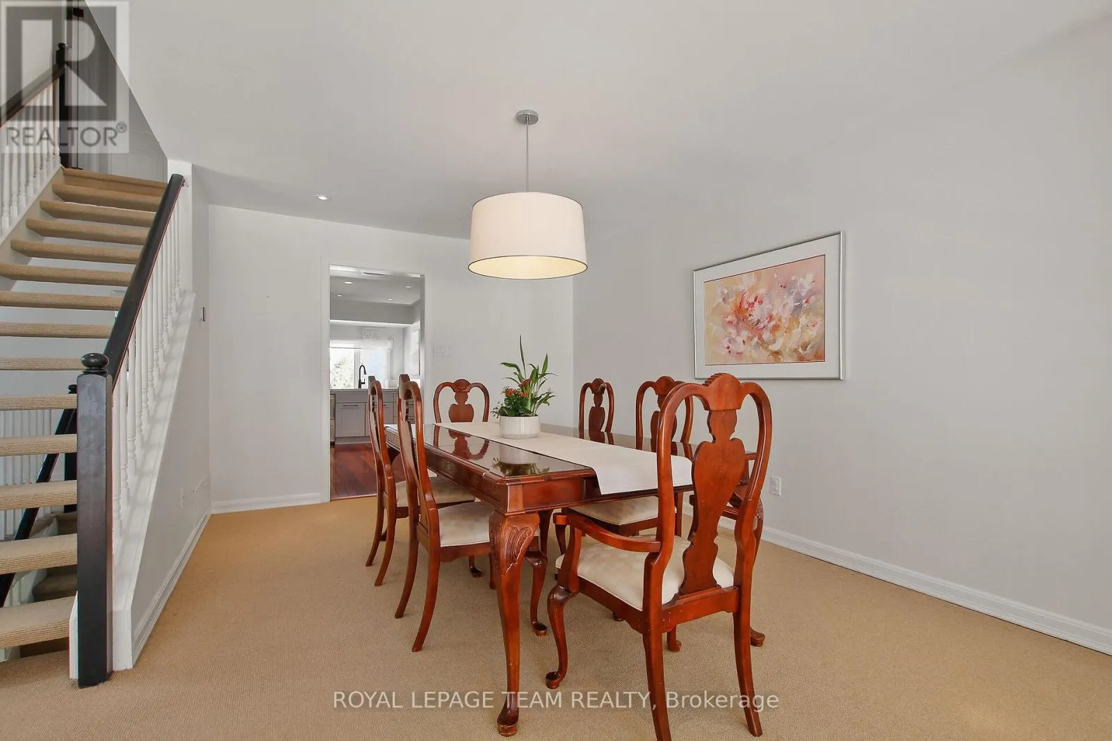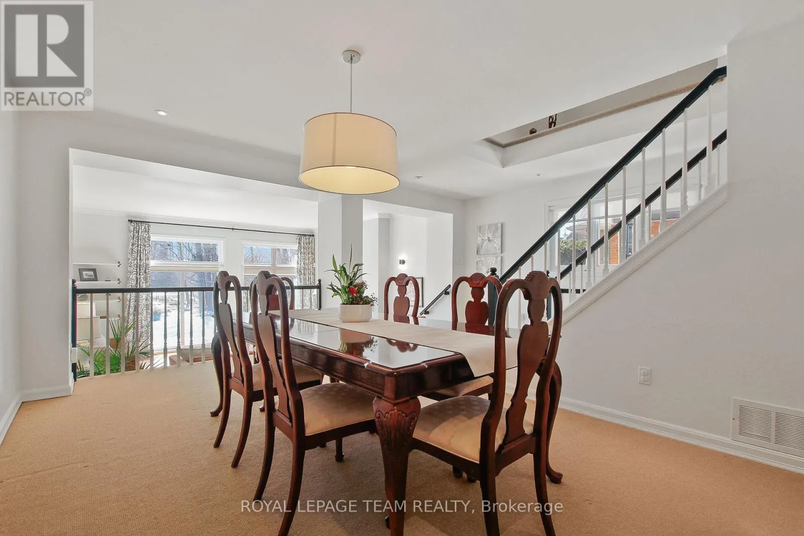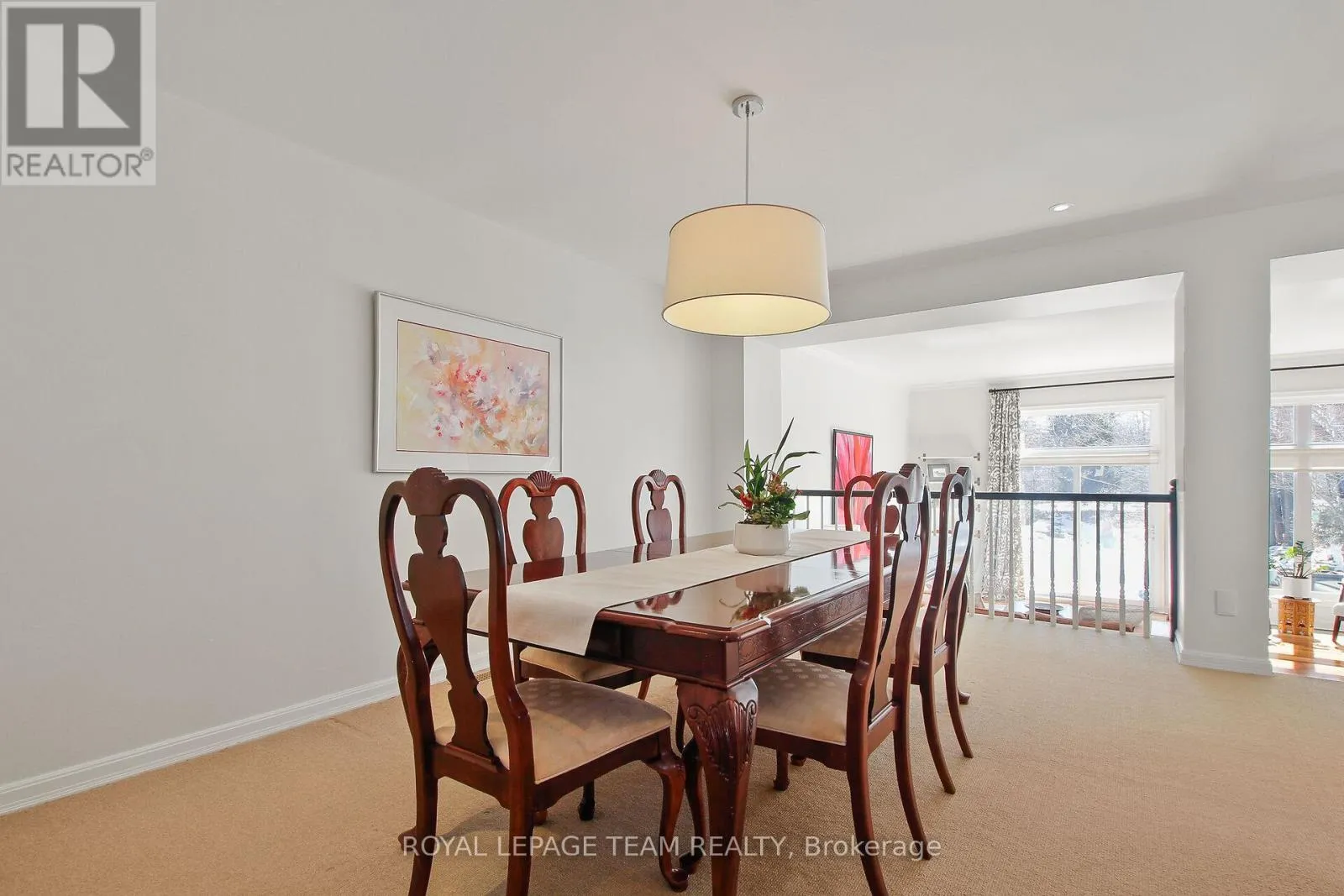 417 West to March/Eagleson Rd exit, go straight onto Campeau Drive. Turn right onto Knudson Drive. Outstanding semi-detached home in Kanata Lakes with tremendous space, unique architectural design & high quality finishes. Approx. 2,645 sq.ft above grade, with 3 bedrooms & 3 baths. Front door with inset & transom windows bring natural light into the marble tiled foyer. Expansive living room with high ceilings, Brazilian cherry flooring, gas fireplace & recessed lighting. Wonderful windows have fantastic views of the deep backyard with southern explosure, patio, beautiful perennial gardens & forest plus no rear neighbors. Dining room overlooks the living room & has an updated chandelier & recessing lighting. Gourmet Kitchen has many refaced cabinets & drawers, updated hardware, quartz counters, tile backsplash, updated sink & faucet, 2 wall ovens & updated stovetop. Cozy eating area is great for light meals. Brazilian cherry flooring runs throughout the kitchen & adjoining family room. Gas fireplace, built in shelving & tall windows are attractive. Powder room with pedestal sink & updated mirror is off the main hall. Staircase leads you to the 2nd level hall that has skylight for natural light. Primary bedroom has tall ceilings, room for a king size bed & dressers. 2 double windows with shutters provide pretty views of the backyard. A large walk-in closet & spa-like ensuite bath are wonderful features. Ensuite bath has tile flooring, vanity with sink & mirror, free standing tub, double glass shower & modern wall tile & moulding. 2 more good-sized bedrooms each have overhead lights, double closets & big windows. Main bath was fully renovated & has a tub/shower combined with tile surround, quartz counter on the vanity & an updated mirror & light fixture. Handy laundry room & linen closet are close by. Lower level has room for an office space along with a double closet & entry to the double car garage. There is also a separate room that could be finished as a rec room. Parks, top schools, shops, are all close by & easy access to 417. 24 hours irrevocable on offers. (id:27476)