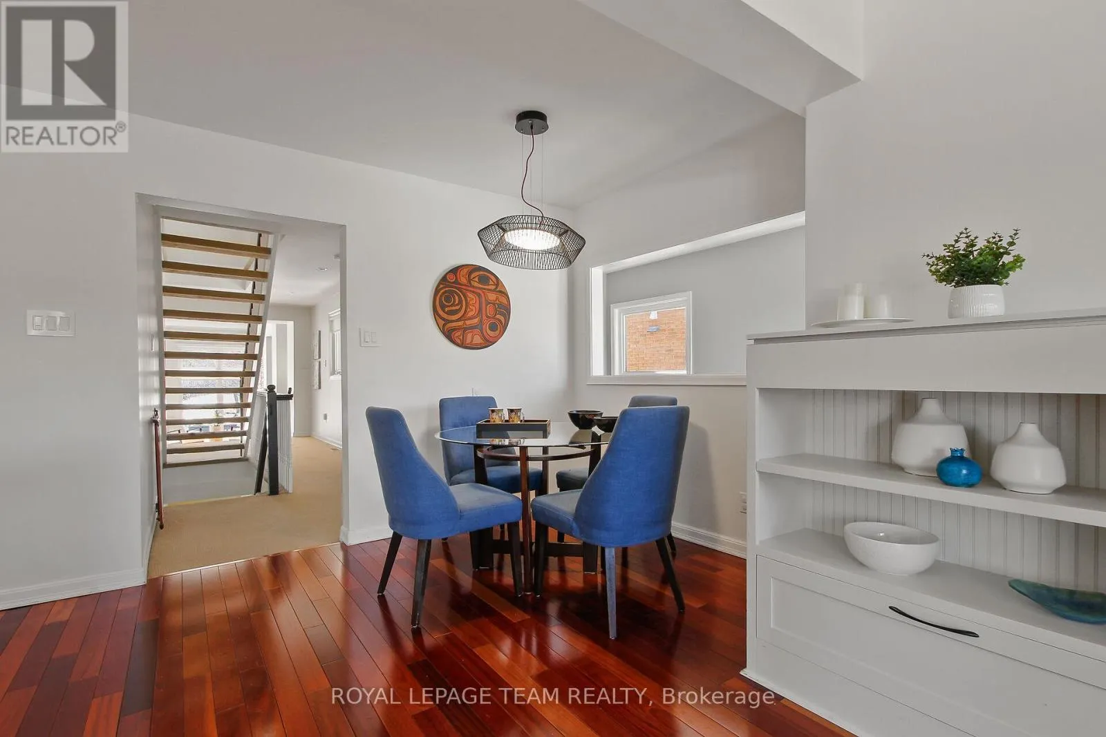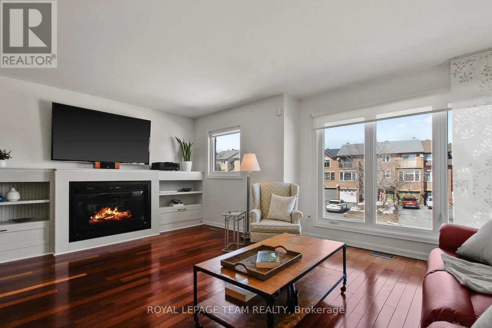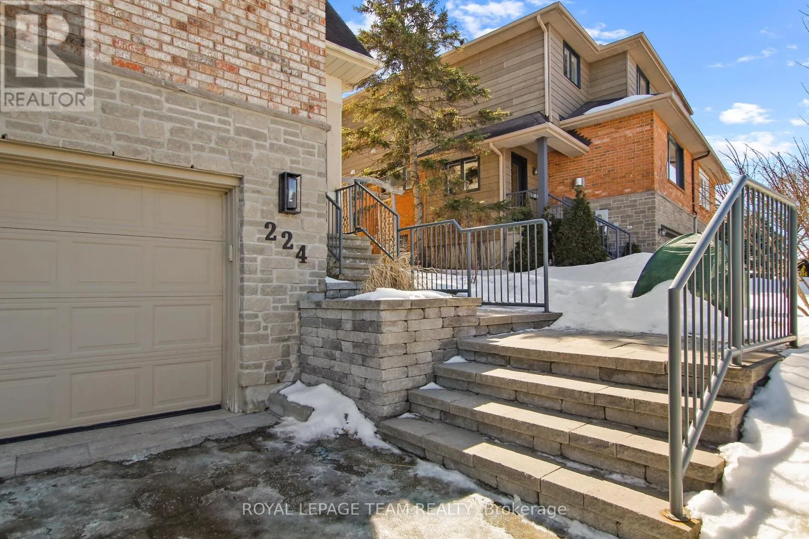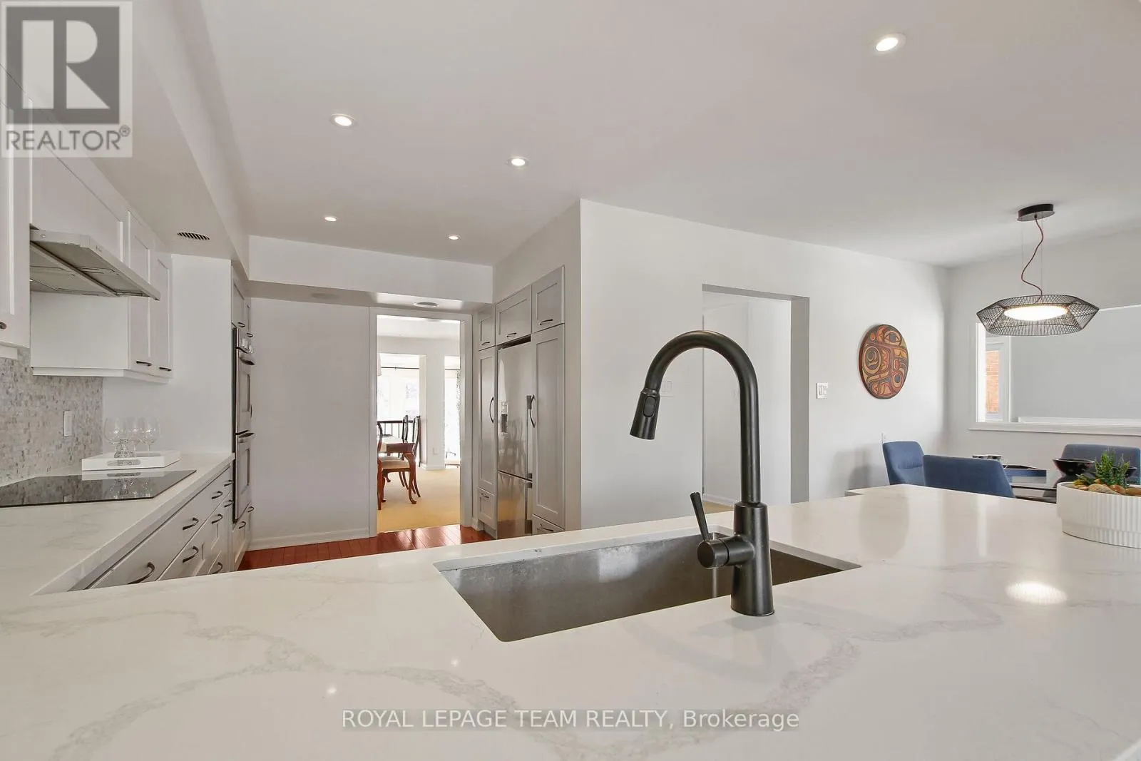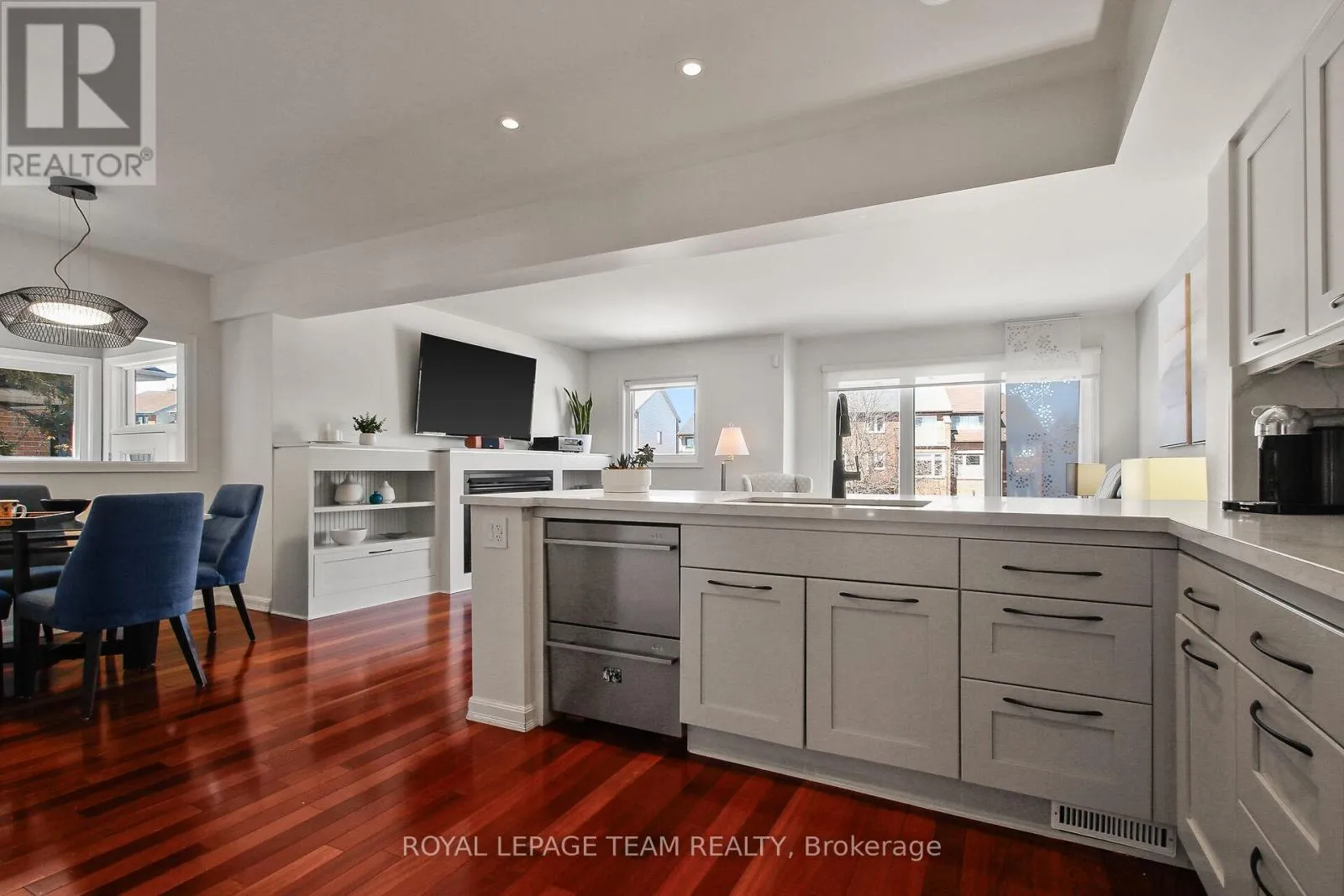 417 West to March/Eagleson Rd exit, go straight onto Campeau Drive. Turn right onto Knudson Drive. Outstanding semi-detached home in Kanata Lakes with tremendous space, unique architectural design & high quality finishes. Approx. 2,645 sq.ft above grade, with 3 bedrooms & 3 baths. Front door with inset & transom windows bring natural light into the marble tiled foyer. Expansive living room with high ceilings, Brazilian cherry flooring, gas fireplace & recessed lighting. Wonderful windows have fantastic views of the deep backyard with southern explosure, patio, beautiful perennial gardens & forest plus no rear neighbors. Dining room overlooks the living room & has an updated chandelier & recessing lighting. Gourmet Kitchen has many refaced cabinets & drawers, updated hardware, quartz counters, tile backsplash, updated sink & faucet, 2 wall ovens & updated stovetop. Cozy eating area is great for light meals. Brazilian cherry flooring runs throughout the kitchen & adjoining family room. Gas fireplace, built in shelving & tall windows are attractive. Powder room with pedestal sink & updated mirror is off the main hall. Staircase leads you to the 2nd level hall that has skylight for natural light. Primary bedroom has tall ceilings, room for a king size bed & dressers. 2 double windows with shutters provide pretty views of the backyard. A large walk-in closet & spa-like ensuite bath are wonderful features. Ensuite bath has tile flooring, vanity with sink & mirror, free standing tub, double glass shower & modern wall tile & moulding. 2 more good-sized bedrooms each have overhead lights, double closets & big windows. Main bath was fully renovated & has a tub/shower combined with tile surround, quartz counter on the vanity & an updated mirror & light fixture. Handy laundry room & linen closet are close by. Lower level has room for an office space along with a double closet & entry to the double car garage. There is also a separate room that could be finished as a rec room. Parks, top schools, shops, are all close by & easy access to 417. 24 hours irrevocable on offers. (id:27476)