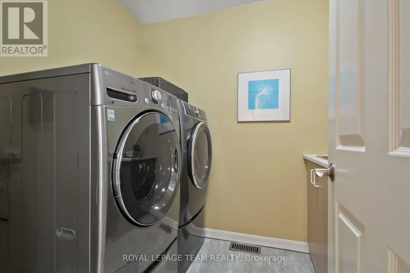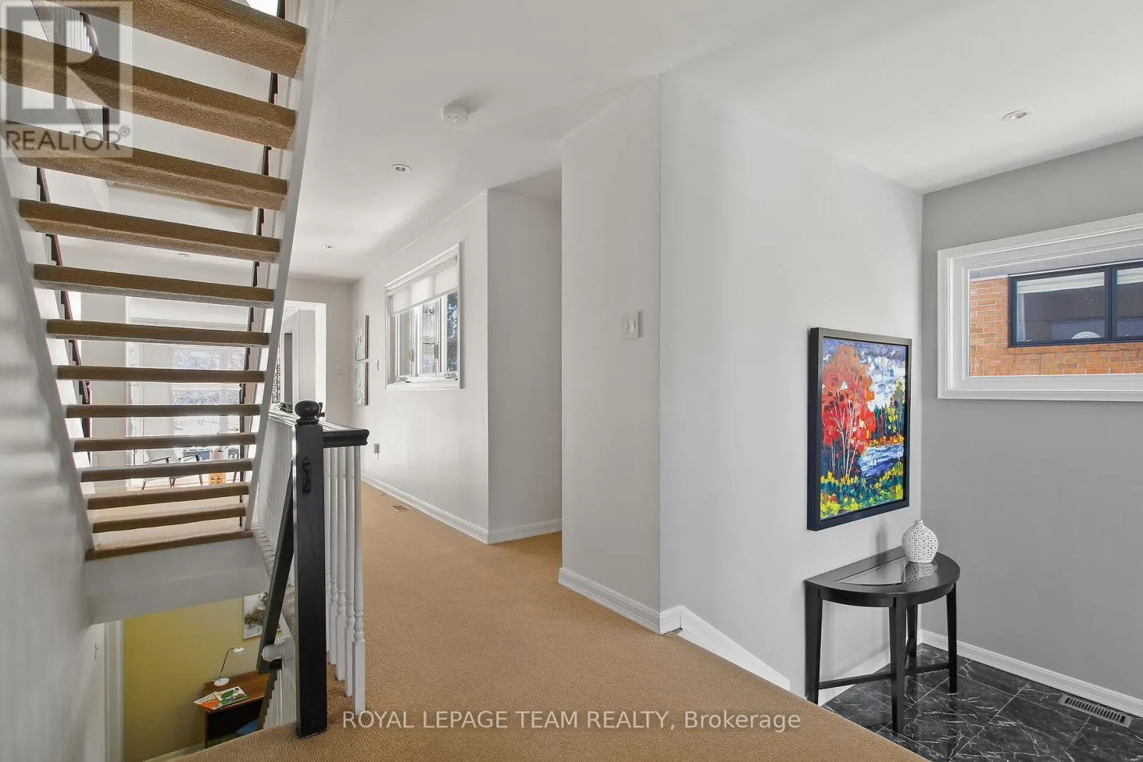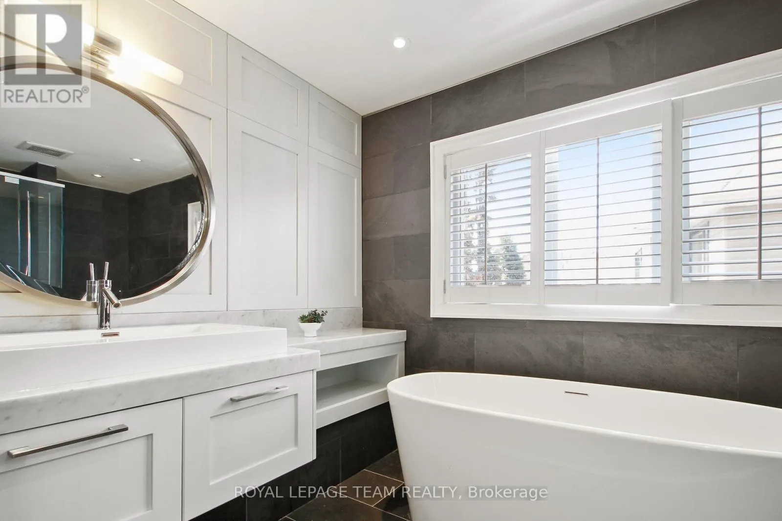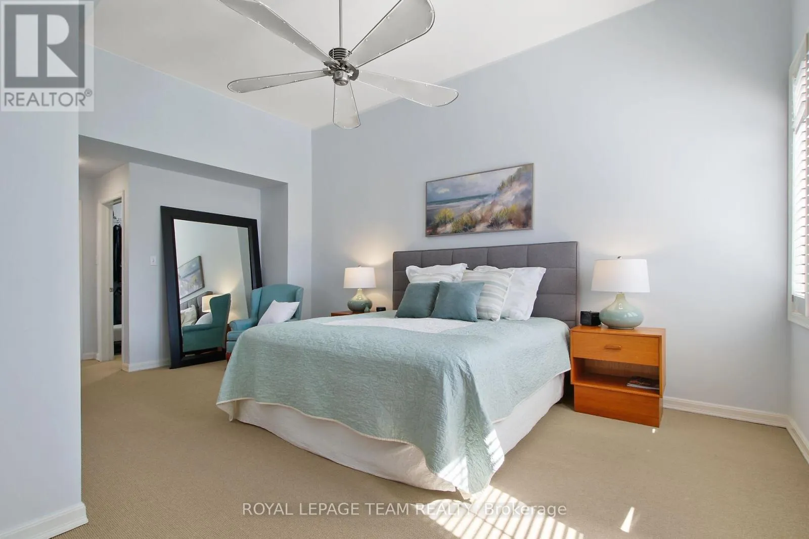 417 West to March/Eagleson Rd exit, go straight onto Campeau Drive. Turn right onto Knudson Drive. Outstanding semi-detached home in Kanata Lakes with tremendous space, unique architectural design & high quality finishes. Approx. 2,645 sq.ft above grade, with 3 bedrooms & 3 baths. Front door with inset & transom windows bring natural light into the marble tiled foyer. Expansive living room with high ceilings, Brazilian cherry flooring, gas fireplace & recessed lighting. Wonderful windows have fantastic views of the deep backyard with southern explosure, patio, beautiful perennial gardens & forest plus no rear neighbors. Dining room overlooks the living room & has an updated chandelier & recessing lighting. Gourmet Kitchen has many refaced cabinets & drawers, updated hardware, quartz counters, tile backsplash, updated sink & faucet, 2 wall ovens & updated stovetop. Cozy eating area is great for light meals. Brazilian cherry flooring runs throughout the kitchen & adjoining family room. Gas fireplace, built in shelving & tall windows are attractive. Powder room with pedestal sink & updated mirror is off the main hall. Staircase leads you to the 2nd level hall that has skylight for natural light. Primary bedroom has tall ceilings, room for a king size bed & dressers. 2 double windows with shutters provide pretty views of the backyard. A large walk-in closet & spa-like ensuite bath are wonderful features. Ensuite bath has tile flooring, vanity with sink & mirror, free standing tub, double glass shower & modern wall tile & moulding. 2 more good-sized bedrooms each have overhead lights, double closets & big windows. Main bath was fully renovated & has a tub/shower combined with tile surround, quartz counter on the vanity & an updated mirror & light fixture. Handy laundry room & linen closet are close by. Lower level has room for an office space along with a double closet & entry to the double car garage. There is also a separate room that could be finished as a rec room. Parks, top schools, shops, are all close by & easy access to 417. 24 hours irrevocable on offers. (id:27476)