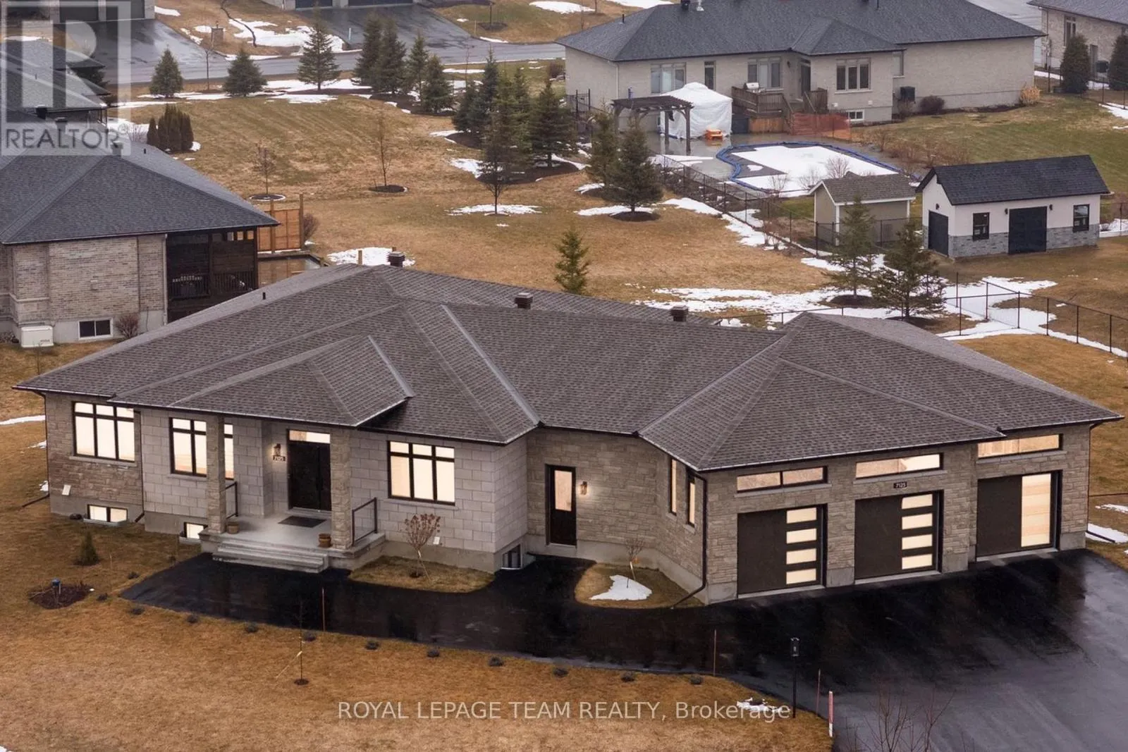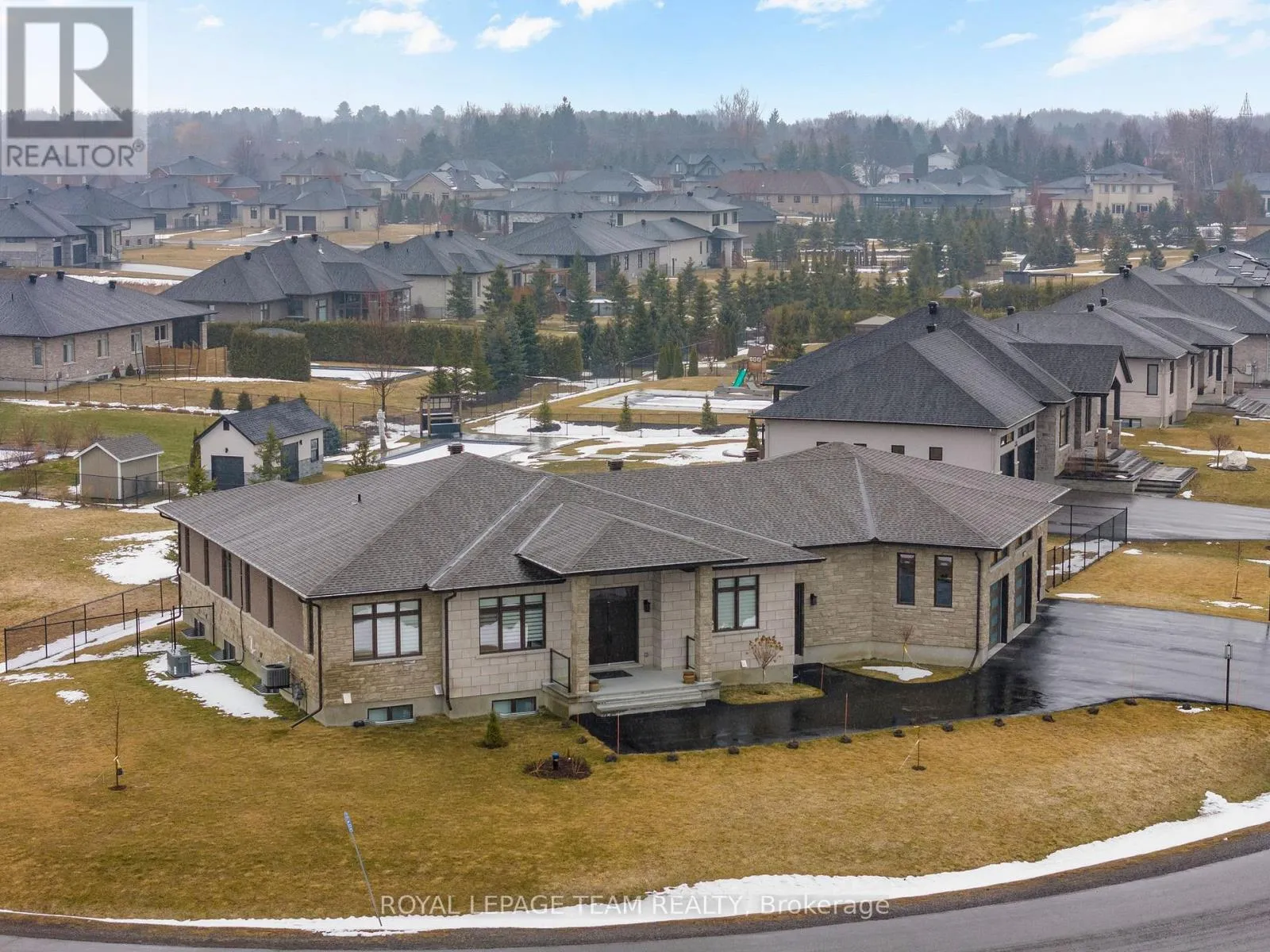 Cross Streets: Rangeland Ave / Still Meadow Way. ** Directions: Old Prescott Rd. to Carisbrooke Grove, then left on Still Meadow Way. Welcome to this stunning custom bungalow in the sought-after community of Greely, where luxury living meets modern design. Boasting one of the largest bungalow floor plans in the neighbourhood, this sprawling executive residence offers over 4,700 sq ft of living space, a true 3-car attached garage, and sits on a beautifully landscaped and fully fenced half-acre lot. From the moment you arrive, the quality and craftsmanship are undeniable. A grand foyer welcomes you with soaring 11-foot ceilings, designer light fixtures, pot lights, stylish accent walls, and oversized 8-foot interior doors throughout, flowing seamlessly into the breathtaking open-concept kitchen, living, and dining area.The designer kitchen is the centrepiece of this home and an entertainer's dream - anchored by an expansive island, quartz countertops, chic tile backsplash, top-tier stainless steel appliances, a massive walk-in pantry, and abundant cabinetry.The main level offers three generous bedrooms and two spa-inspired 5-piece bathrooms. The primary suite is a true hotel-inspired sanctuary featuring a walk-in closet with custom shelving, a luxurious ensuite with oversized soaker tub, and direct access to the covered rear patio.The fully finished lower level features two additional bedrooms, a flexible den that could serve as a 6th bedroom, a beautifully finished 5-piece bathroom, full second kitchen, dedicated laundry, and spacious rec area. With its own private entrance, this level is a turnkey solution for multi-generational living or a high-income in-law suite.The attached 3-car garage features a fourth door accessible from the backyard - ideal for recreational vehicles or a workshop. The covered rear porch overlooks a peaceful, fully fenced backyard, perfect for summer entertaining. Properties of this calibre and craftsmanship are genuinely rare. This home truly delivers on every level. (id:27476)