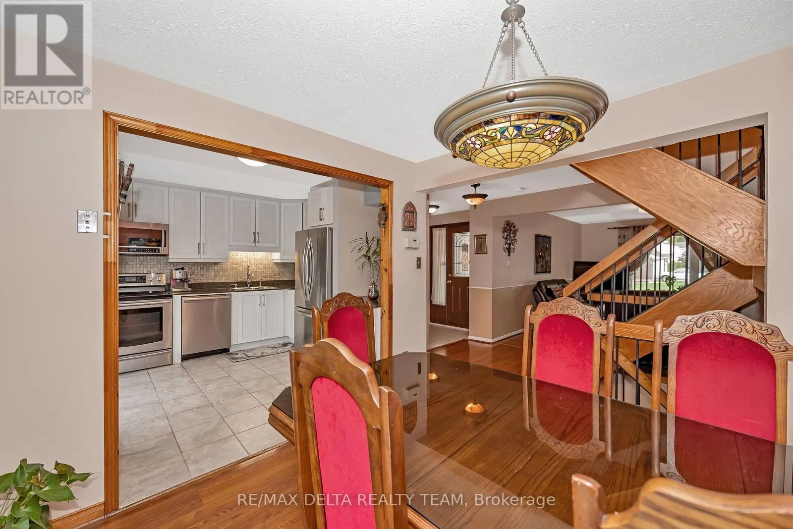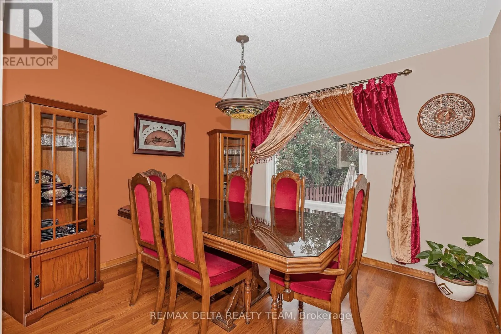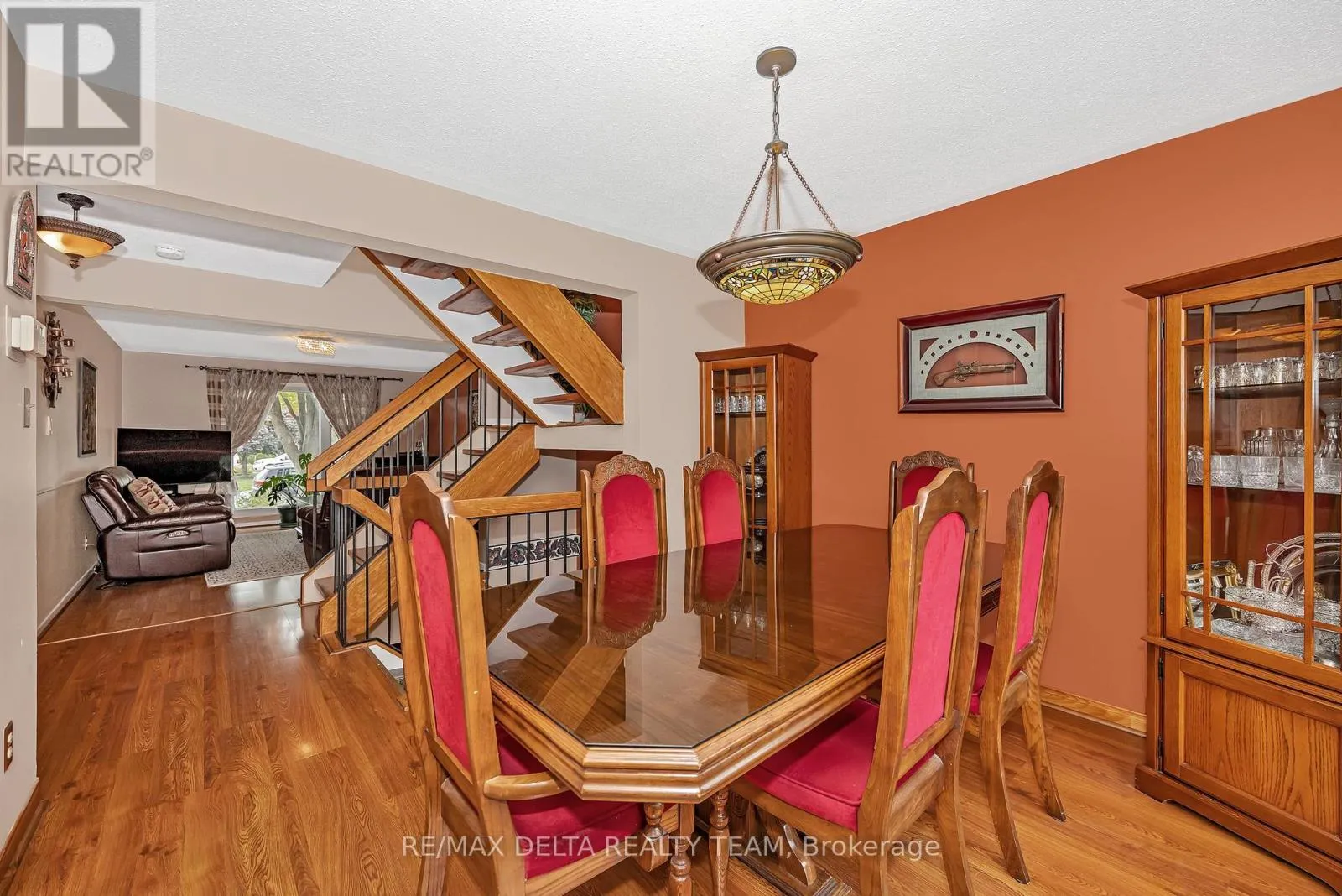 MOCKINGBIRD AND JEANNE D'ARC Welcome to 427 Mockingbird Drive in desirable Chatelaine Village. Surrounded by mature trees and offering direct access to Ottawa River forest trails, this home is perfectly located near Petrie Island beaches, schools, shopping, public transit, and provides quick access to Highway 174 and the upcoming O-Train.This move-in ready home features a private backyard, a four-car paved driveway, and a detached garage. Inside, a professionally redesigned custom kitchen offers granite countertops and stainless steel appliances, opening into comfortable living and dining spaces ideal for both everyday living and entertaining.The main level showcases 3-inch solid white oak hardwood flooring with porcelain tile accents. Upstairs, three well-sized bedrooms feature aged pecan laminate flooring, while bathrooms and the laundry area are finished with ceramic tile.The fully finished basement provides versatile additional living space for a family room, gym, office, or games area, along with ample storage and a suspended ceiling for easy access.Major updates include a high-efficiency natural gas furnace, heat pump for heating and air conditioning, and an owned hot water tank, all completed in October 2018. The roof was replaced in November 2016.Enjoy the newly built deck and private backyard retreat, complete with a stainless steel natural gas BBQ and a side yard with garden potential.A well-maintained home in a welcoming, family-friendly neighbourhood, offering the perfect balance of comfort, space, and convenience. (id:27476)