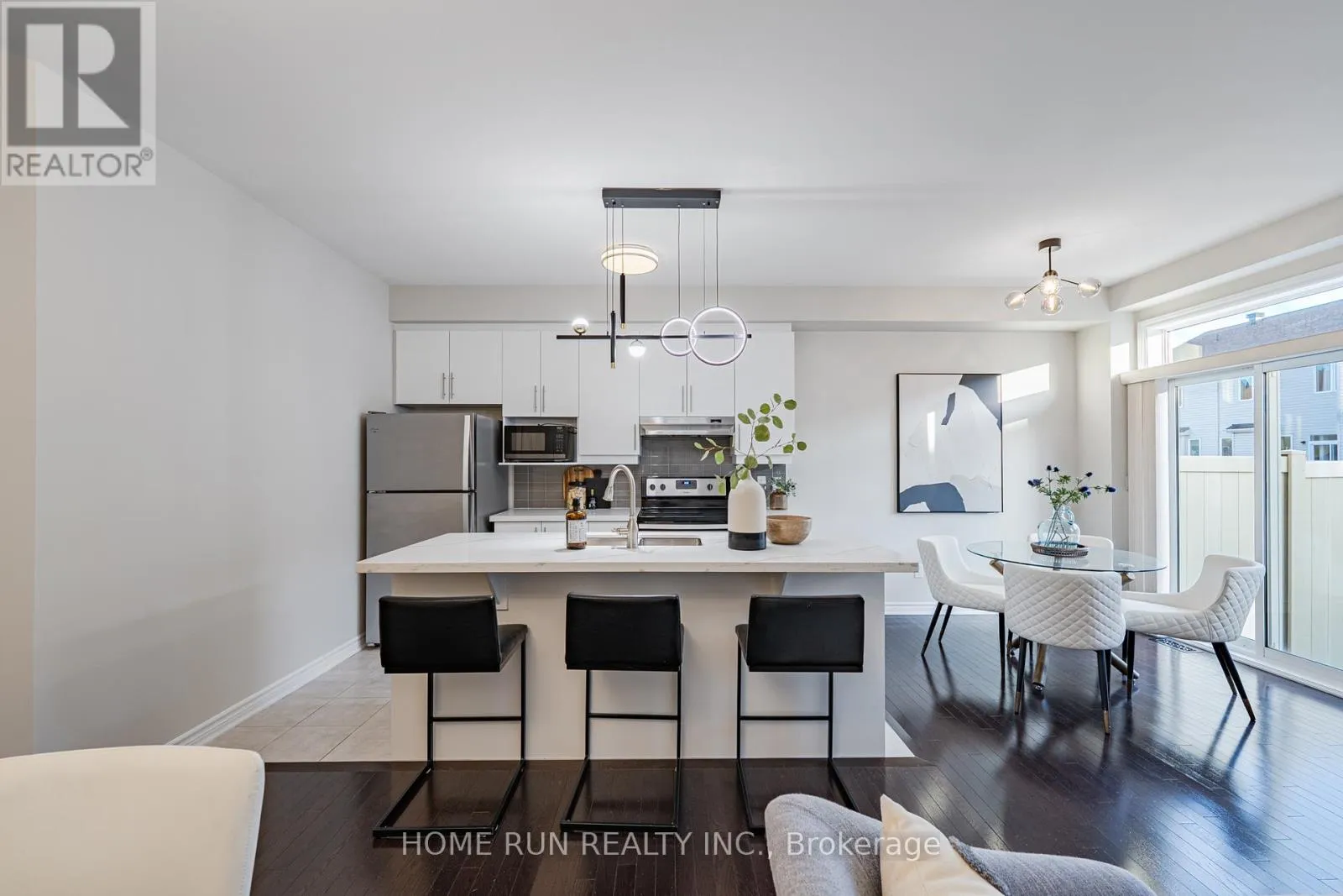 Cross Streets: Mountshannon Dr. ** Directions: Longfields to Mountshannon Dr, Left onto Via Mattino Way. Modern 2-Storey Interior Unit Townhome Facing a Park in Longfields, Barrhaven! Built in 2017 by Mattino Homes, the Aquamarine model offers 1,862 sq. ft. of living space across three floors, including a finished basement. The home has 3 bedrooms, 2.5 bathrooms, and a south-facing backyard.The main floor features 9' smooth ceilings, hardwood flooring, an open-concept living and dining area with a gas fireplace, and a kitchen with ample cabinetry and quartz counters. A dinette sits adjacent to the kitchen with access to the backyard. A powder room and single-car garage complete the main level. The second floor has three bedrooms and two full bathrooms. The south-facing primary bedroom includes a huge walk-in closet and an ensuite with a 3'*5' shower. The two secondary bedrooms are well-sized and share a full bathroom. Laundry is also located on this level.The finished basement provides a functional family room, suitable for a home office, gym, or recreation room. A rough-in for a future 3-piece bathroom is already in place. Smooth ceilings throughout 3 floors. The south-facing backyard receives sun throughout the day. The home faces a park and is within walking distance to Longfields Davidson Heights Secondary School & other catholic and public elementary and secondary schools. Barrhaven Town Centre, Costco, and public transit are just minutes away. (id:27476)