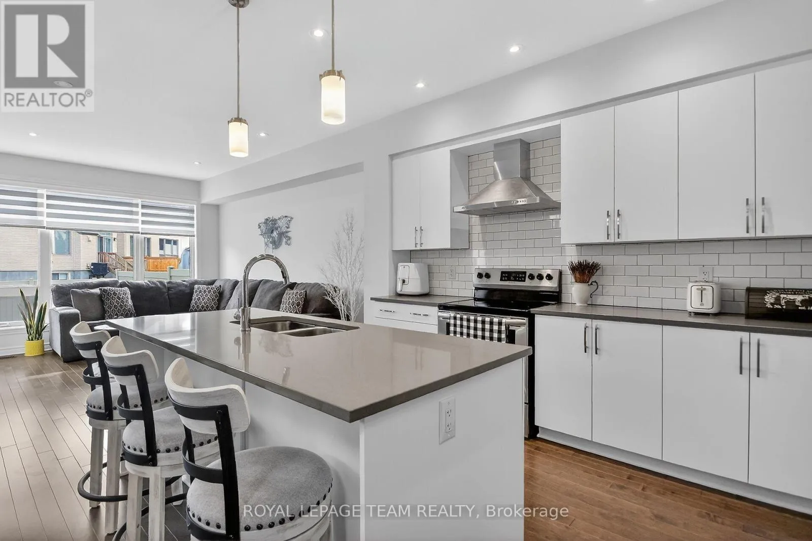 Cross Streets: River Rd and Borbride Rd. ** Directions: Heading North on River Road, turn right onto Borbridge Ave. Beautifully maintained 3-bedroom townhome in sought-after Riverside South that shows like a new home, offering over $45,000 in upgrades and a premium lot backing onto a pie-shaped yard, providing added privacy. The main floor features 9 foot ceilings, a stunning kitchen with quartz countertops, a large island, ample counter space, generous cabinetry, and a spacious pantry, flowing into a bright dining area with a door leading to the large fully fenced backyard. The inviting living room is filled with natural light from large windows, features a beautiful gas fireplace, and includes custom blinds. A welcoming foyer with professionally done wood panel accent wall and convenient powder room complete this level. Upstairs, the spacious primary bedroom is filled with natural light and features a luxurious 5-piece ensuite with double sinks, stand alone shower, and a large soaker tub, along with a sizeable walk-in closet. Two additional well-sized bedrooms, a stylish main bathroom, and a conveniently located laundry room complete the upper level. The finished basement offers additional living space, bathroom rough in along with plenty of storage. Located close to parks, schools, shopping, recreation facilities, trails, the LRT, and the scenic Rideau River, as well as the airport. 24 hours irrevocable on all offers. (id:27476)